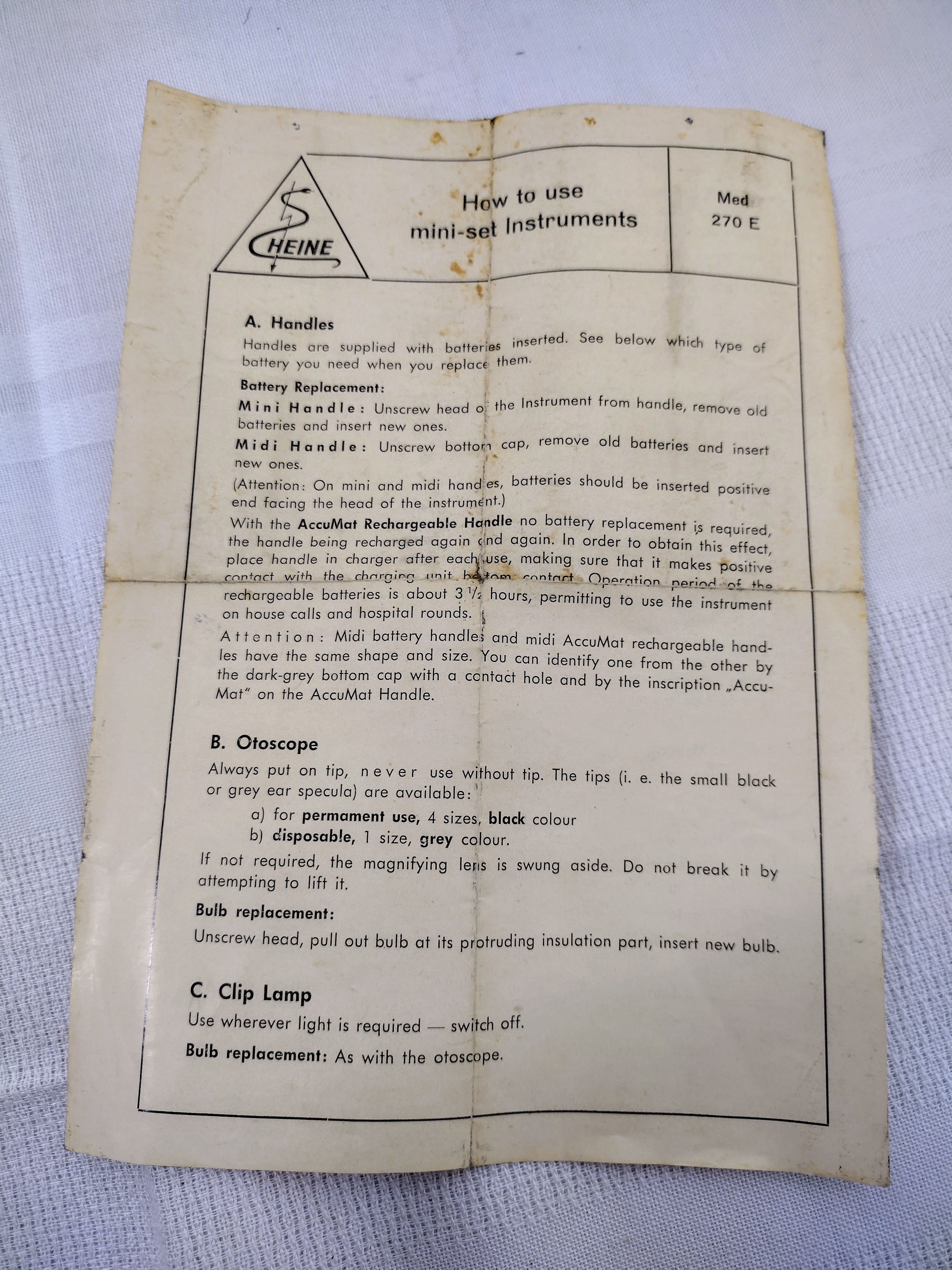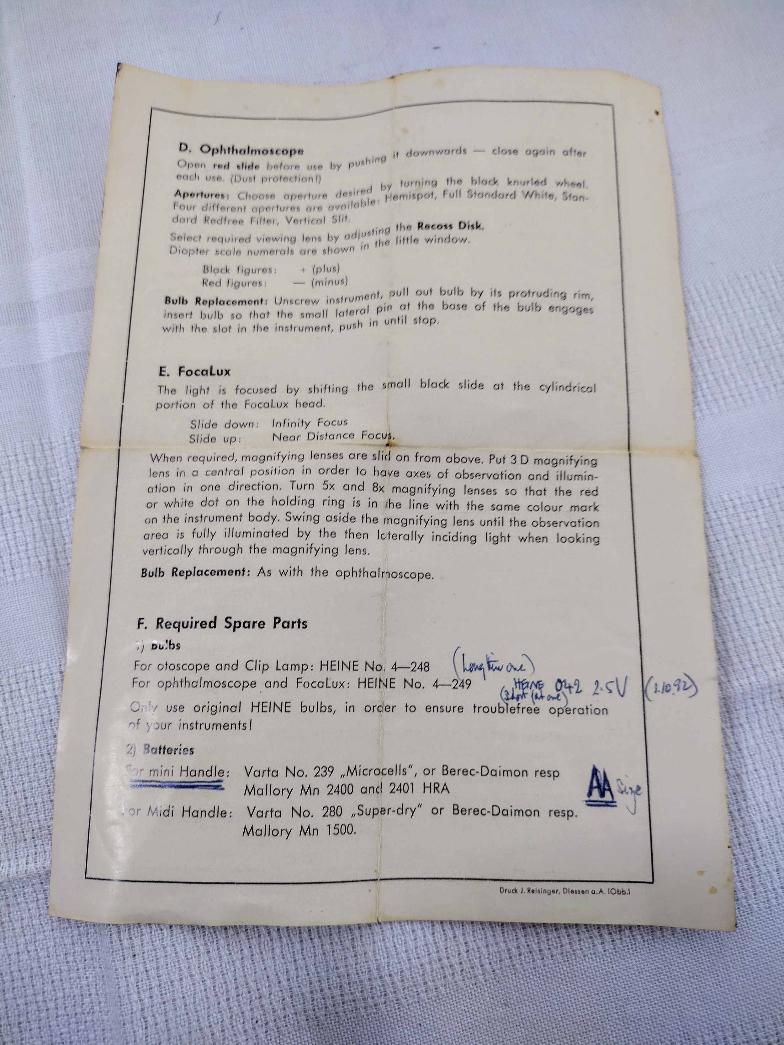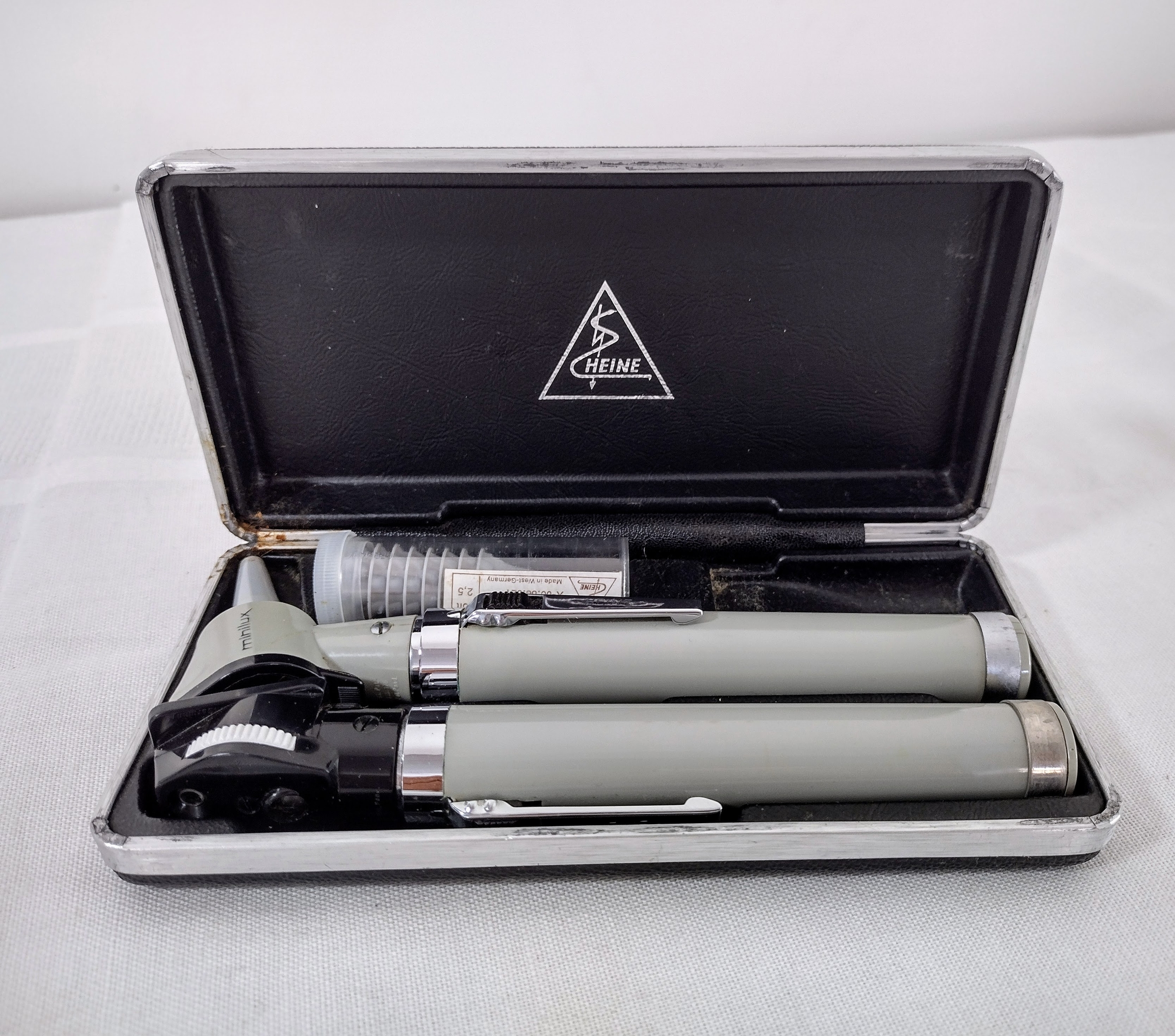 Vintage Heine Mini Set Otoscope & Opthalmoscope plus Accessories