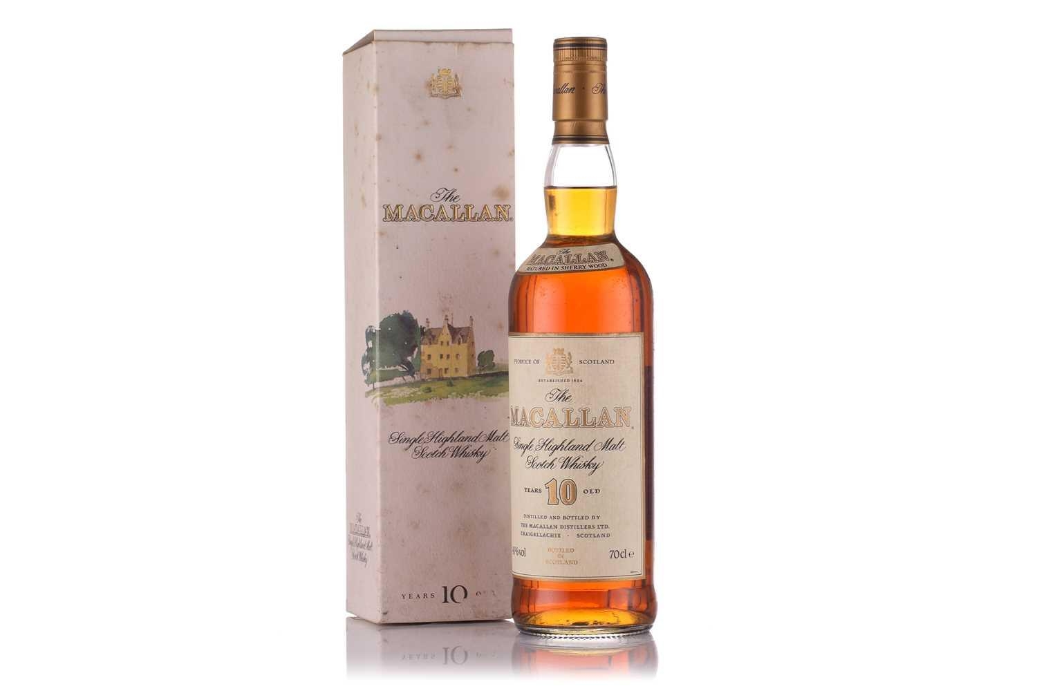 A bottle of Macallan Single Highland Malt Scotch Whisky, 10 years old, 40% Vol, 70cl, in carton.
