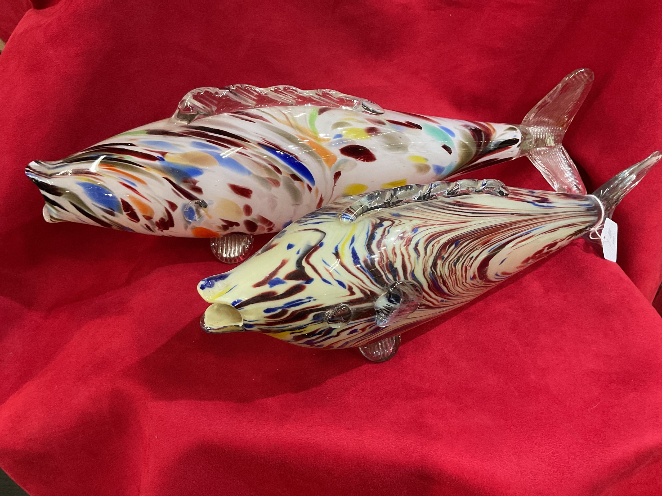 Two Murano style multi-coloured glass fish