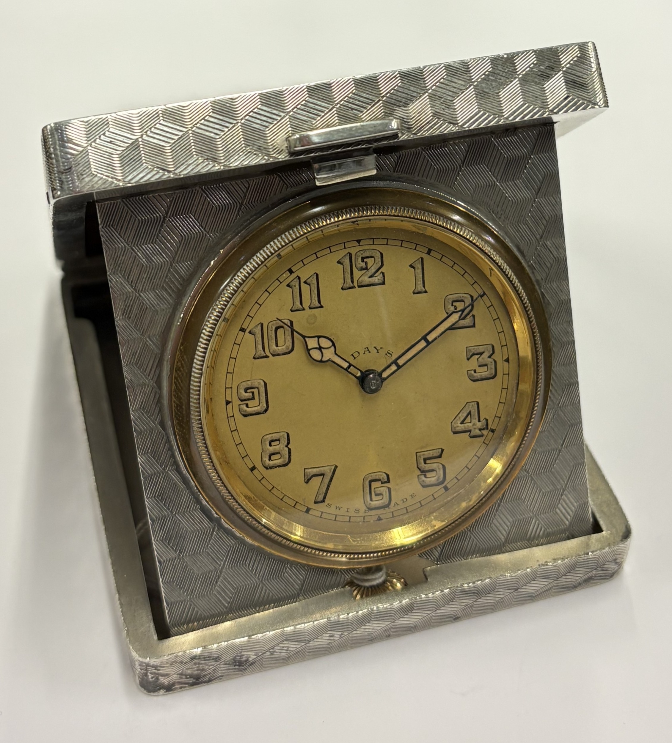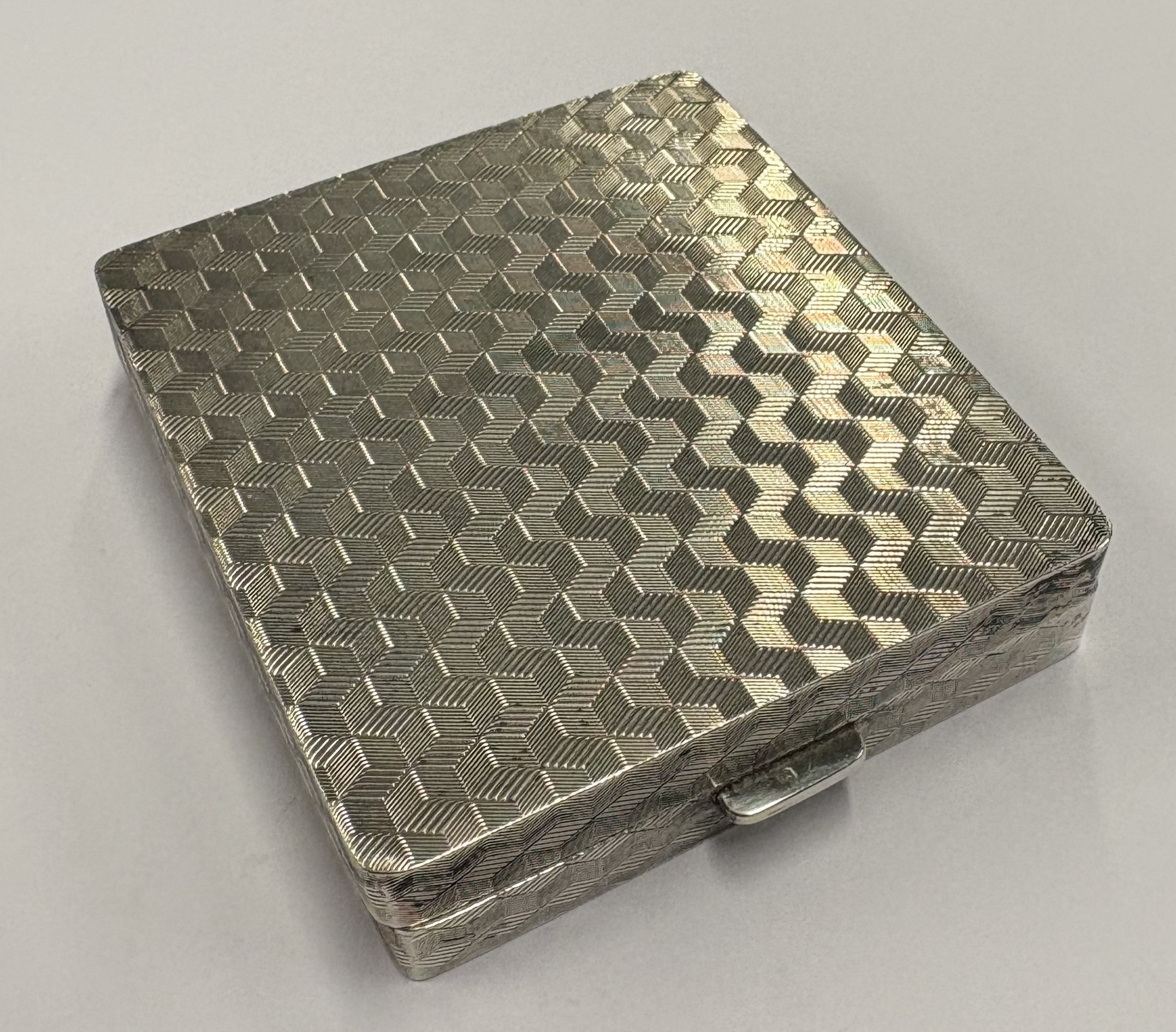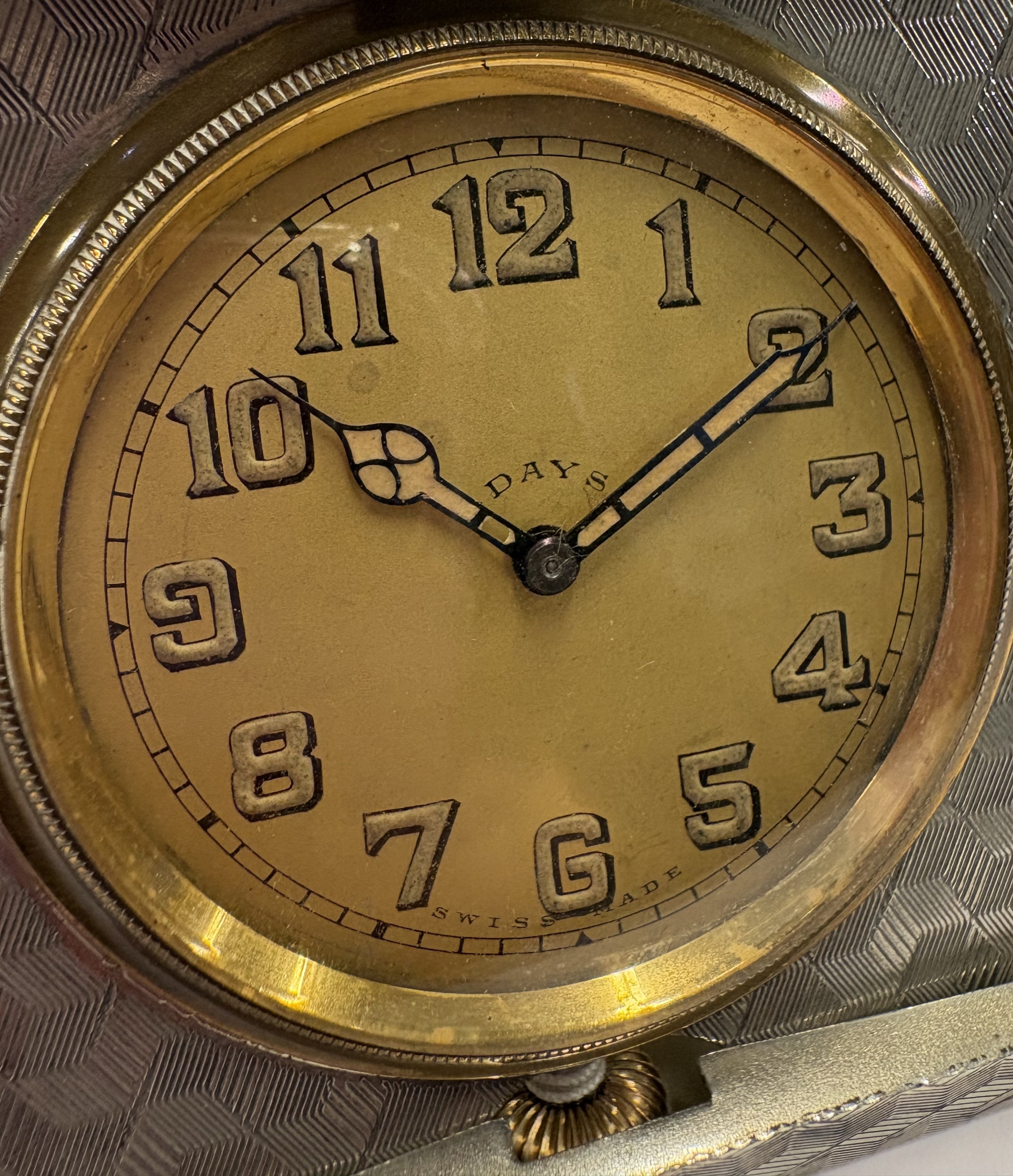 A heavy silver combination clock and cigarette case with engine-turned decoration. Birmingham 1928. Approx. 270 grams of gross weight. Est. £400 - £600.