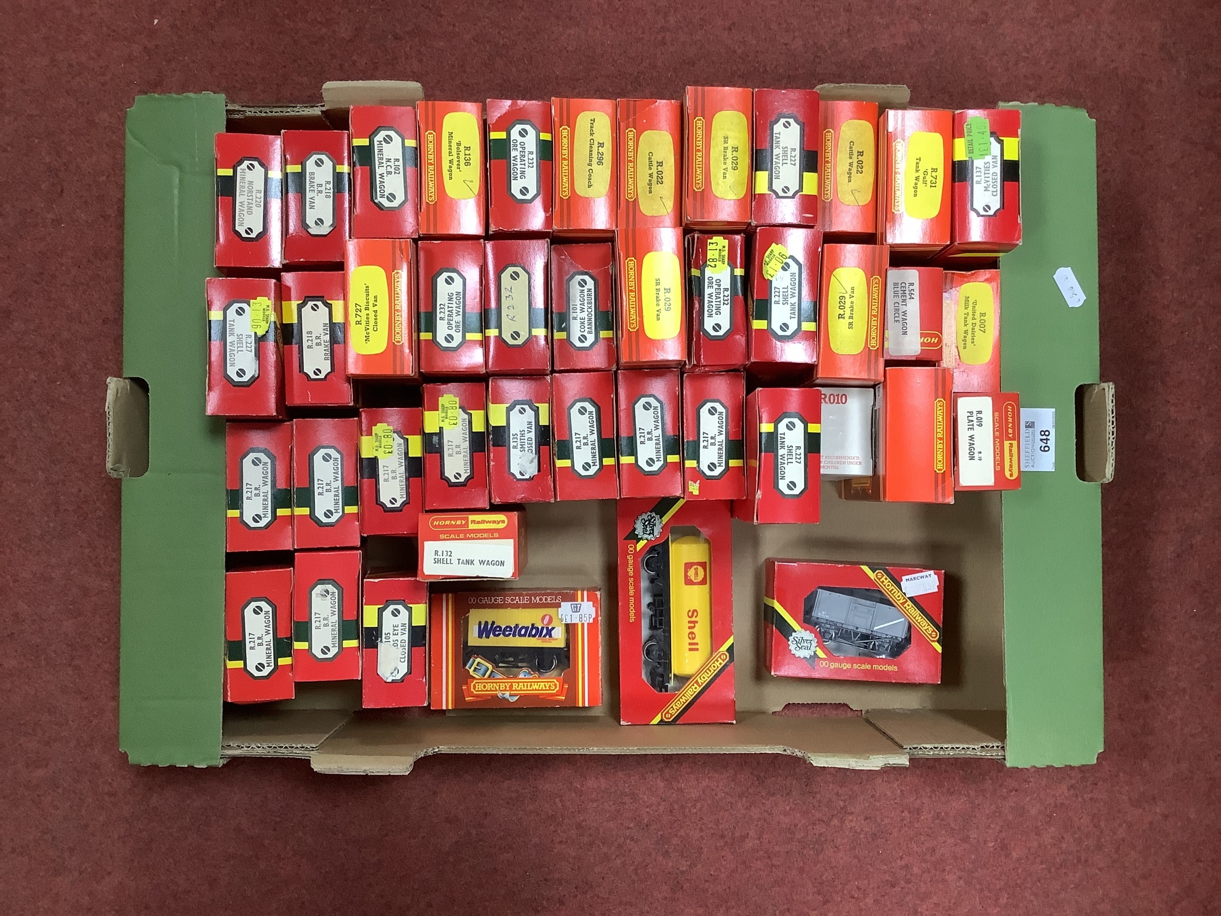 Approximately forty-three boxed Hornby 00 gauge four wheel wagons and brake vans.