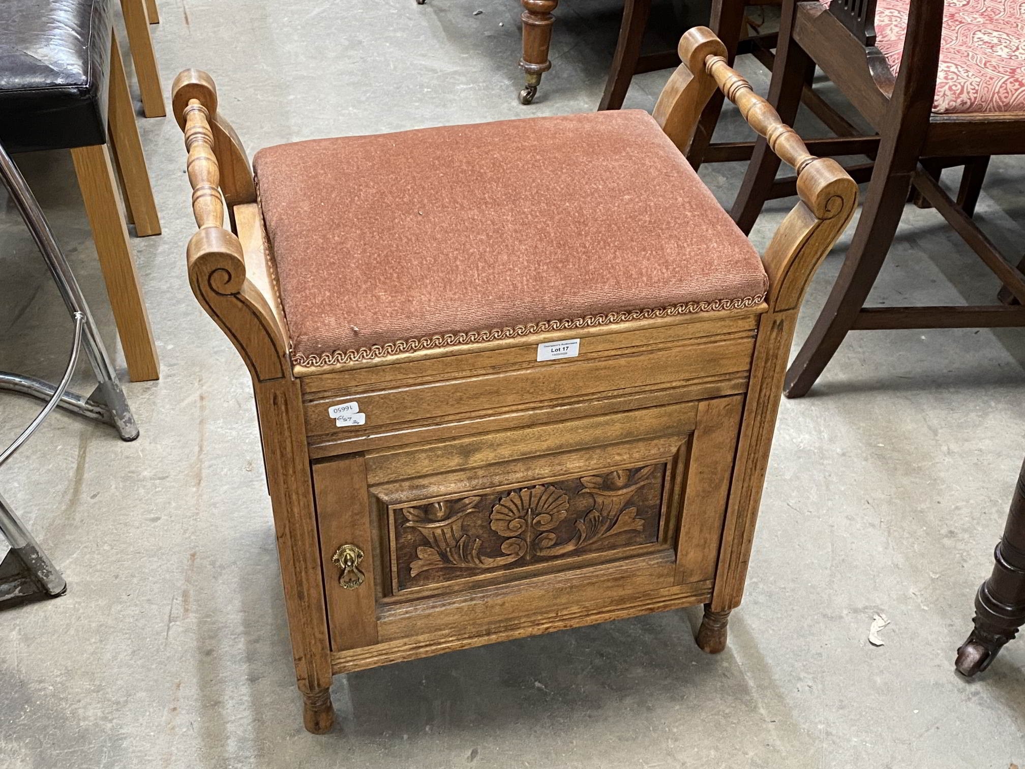 Victorian satinwood piano stool 61H 57W 34D