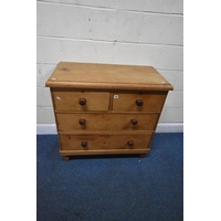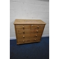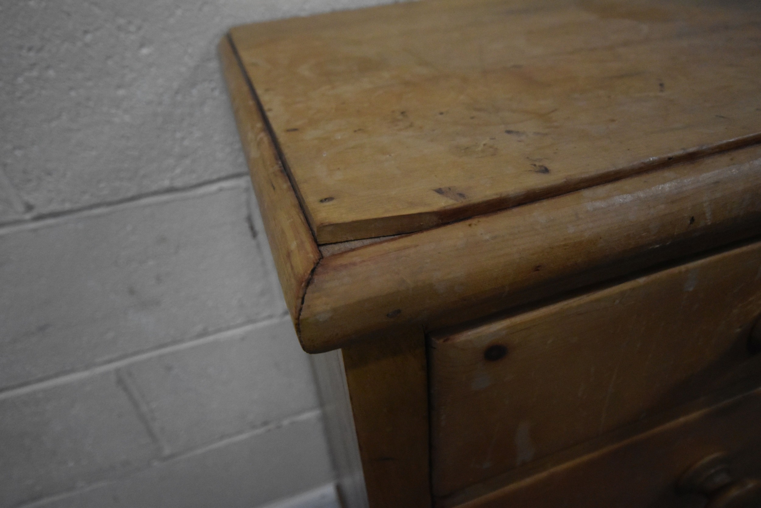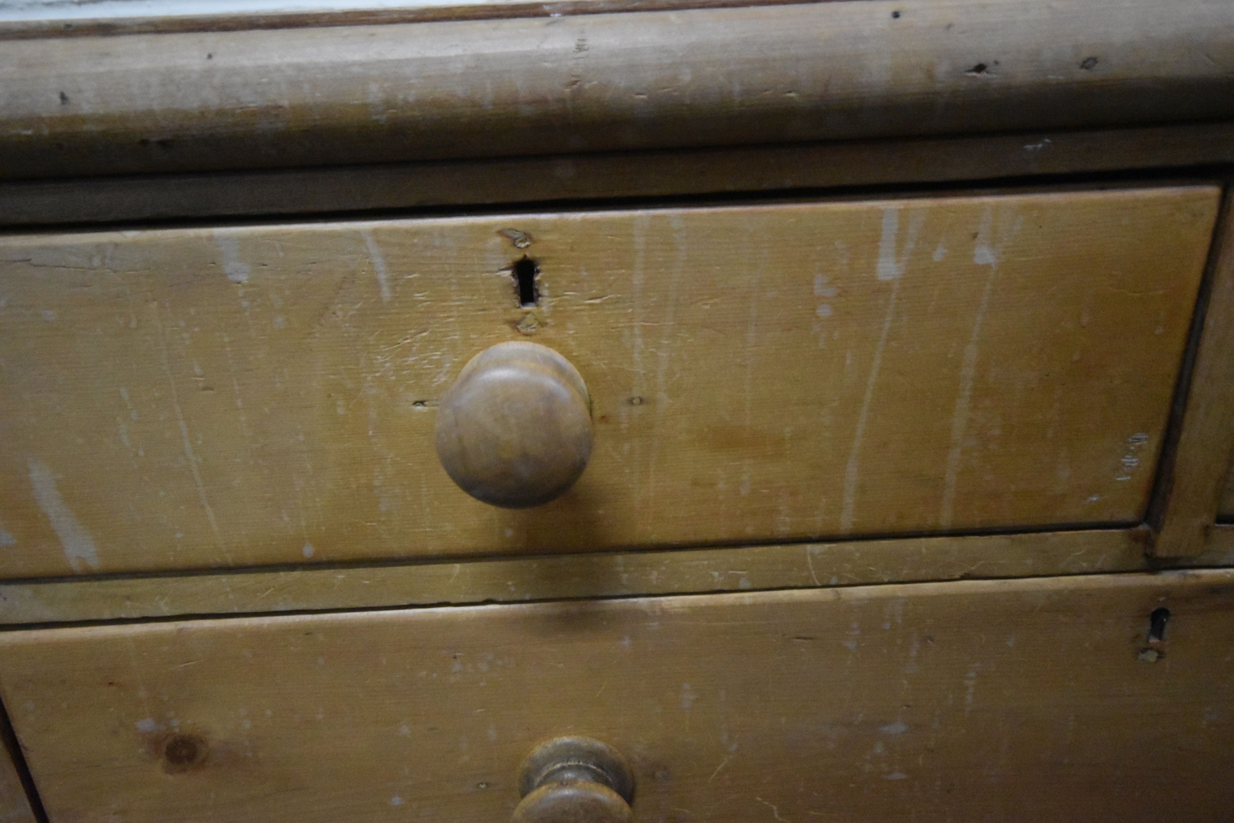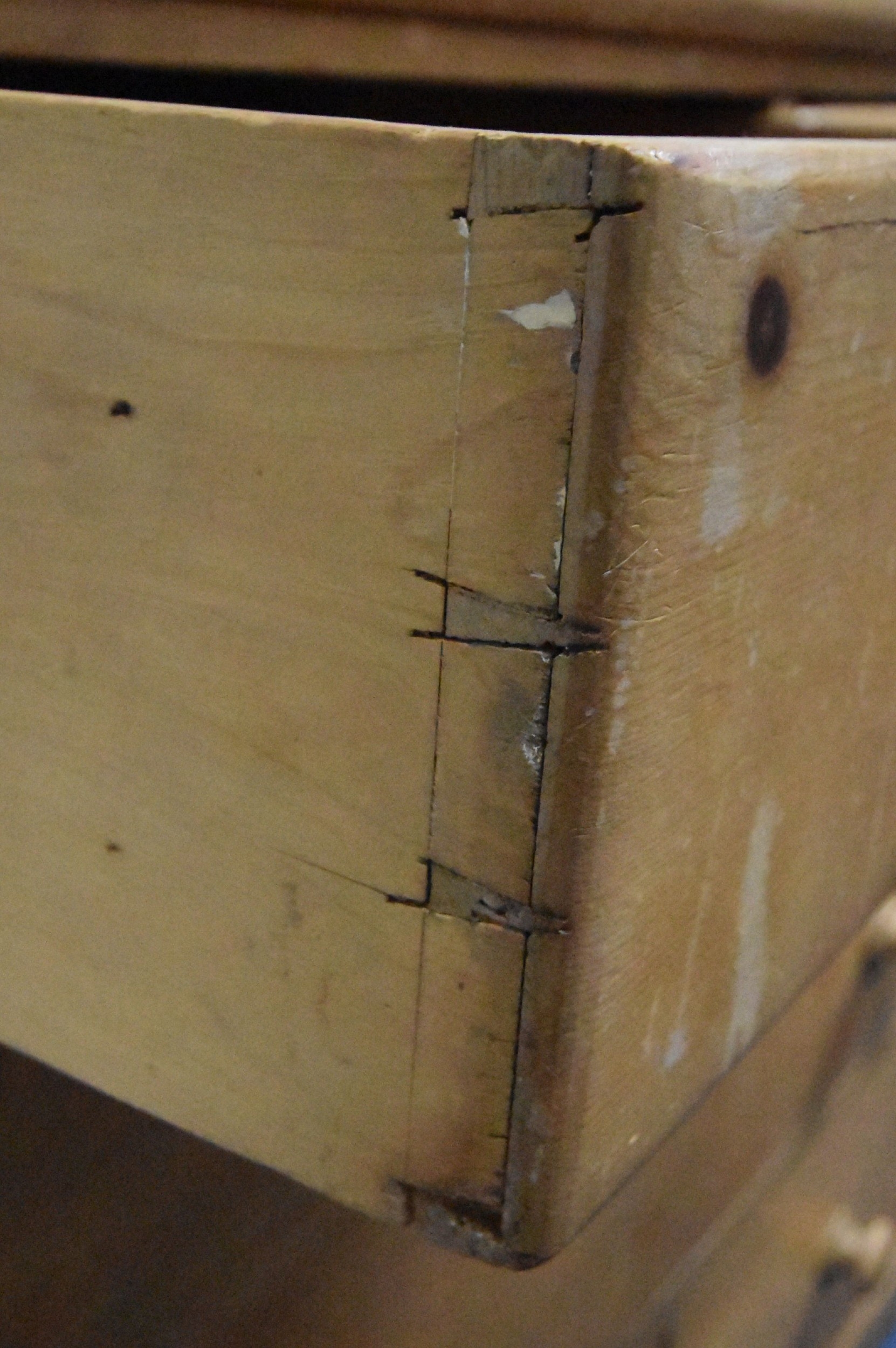 A 19TH CENTURY PINE CHEST OF TWO SHORT OVER THREE LONG DRAWERS, raised on turned feet, width 104cm x depth 47cm x height 102cm, condition report: historical marks, scuffs, stains, losses, discolouration, other wear and usage