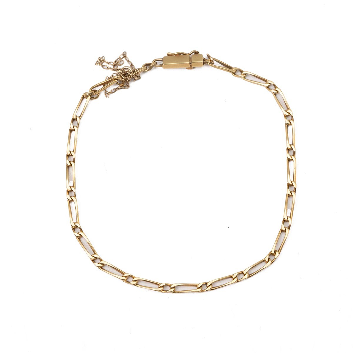18ct gold (tested) fancy link bracelet with a push-pull clasp, fold-over safety bar, and chain, weight 4.1 grams.