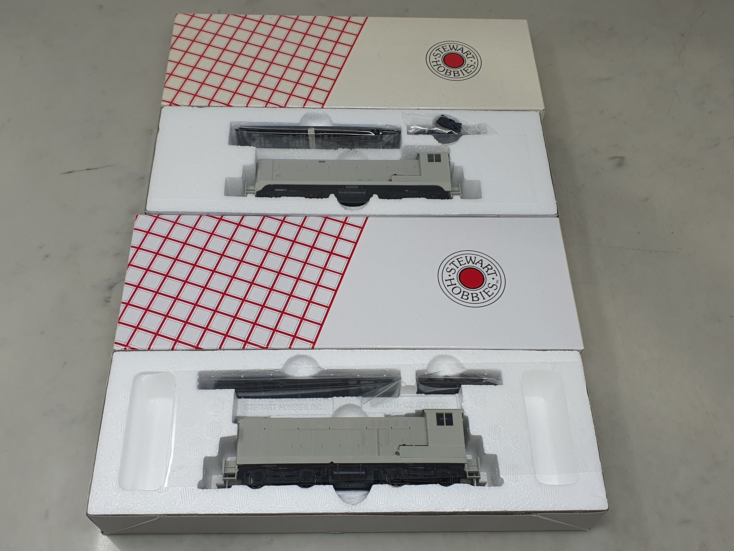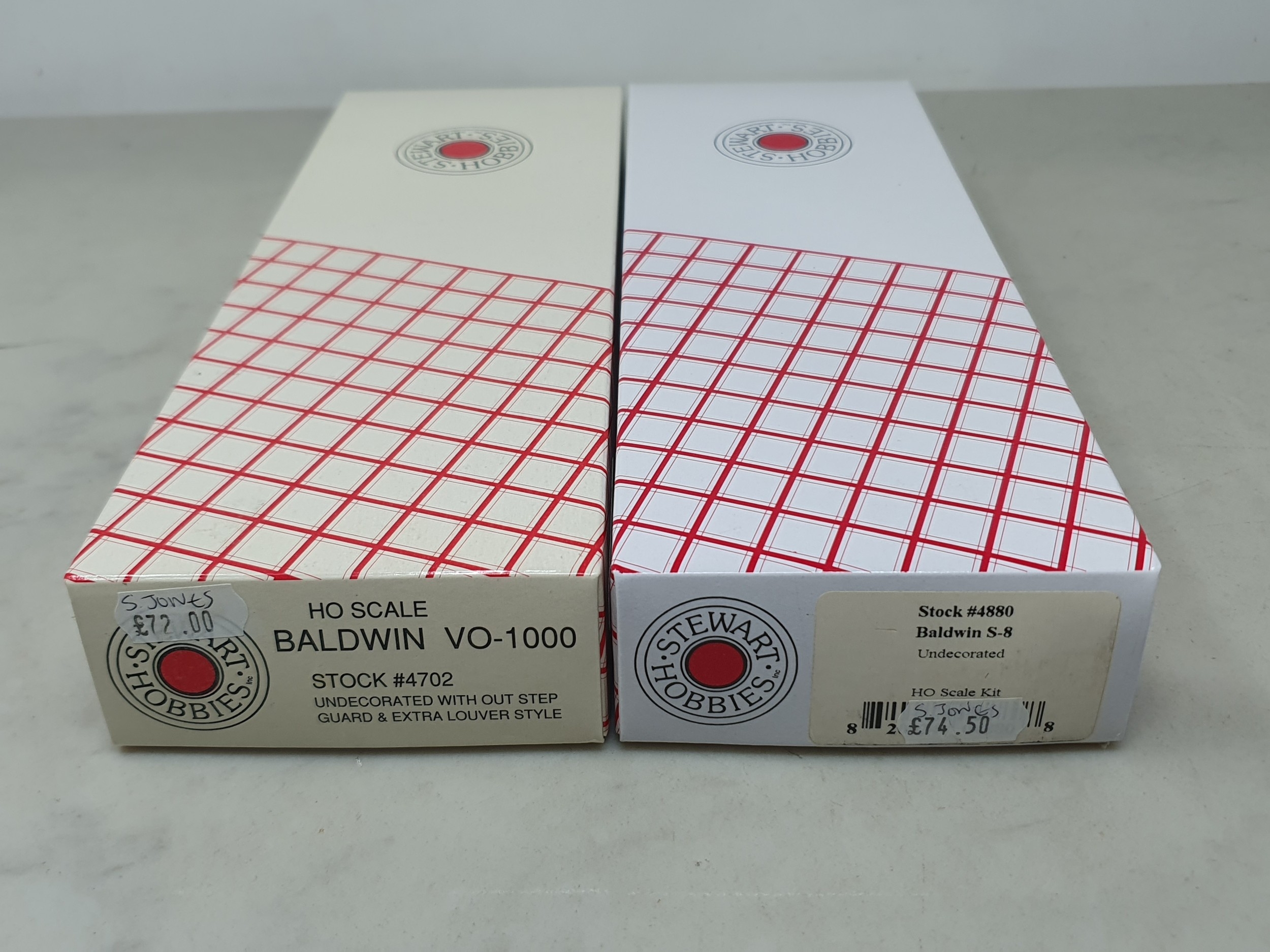 Two boxed Stewart Hobbies H0 scale American Outline undecorated Locomotives comprising 4702 Baldwin VO-1000 and 4880 Baldwin S-8, both unused from new