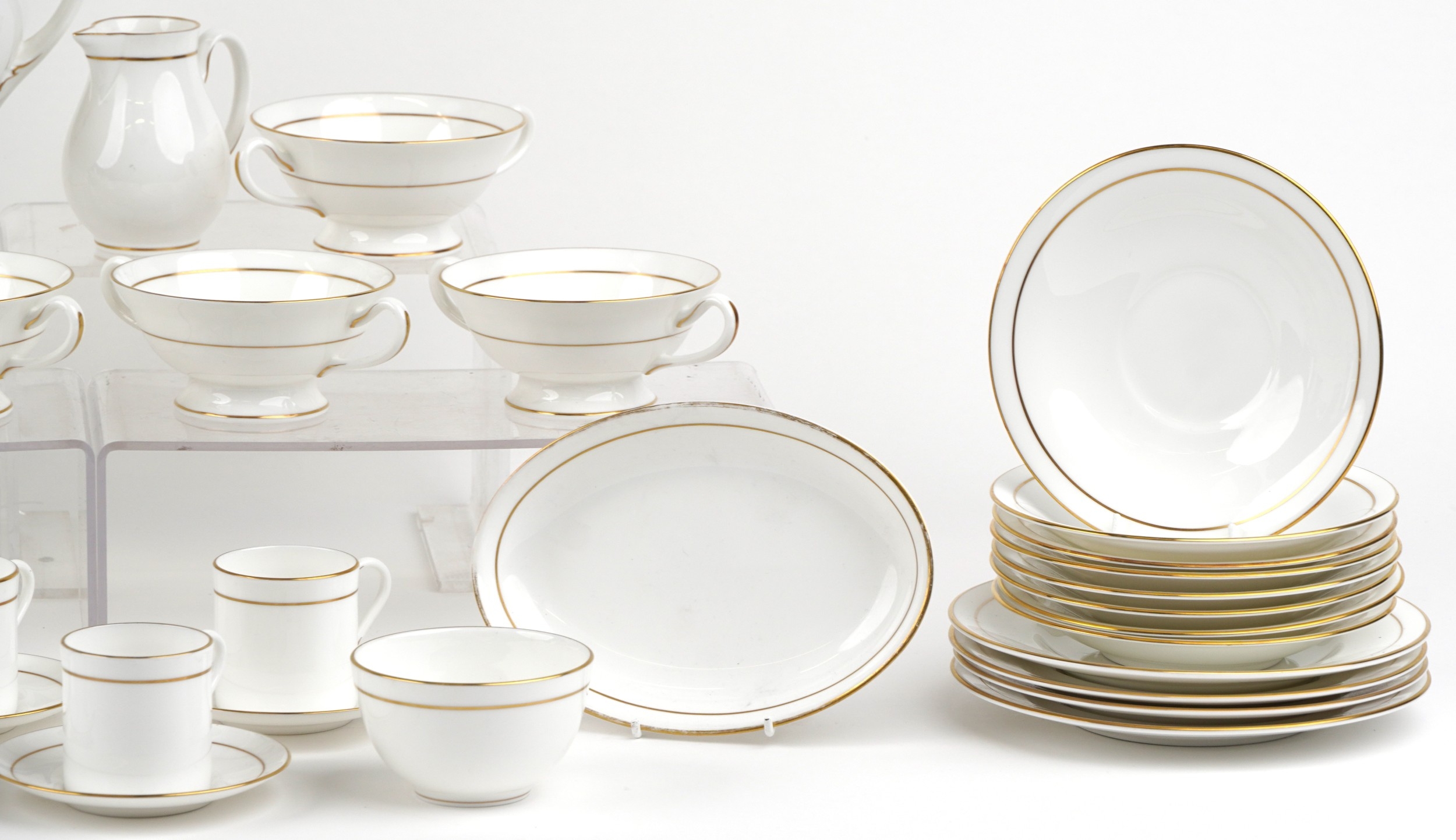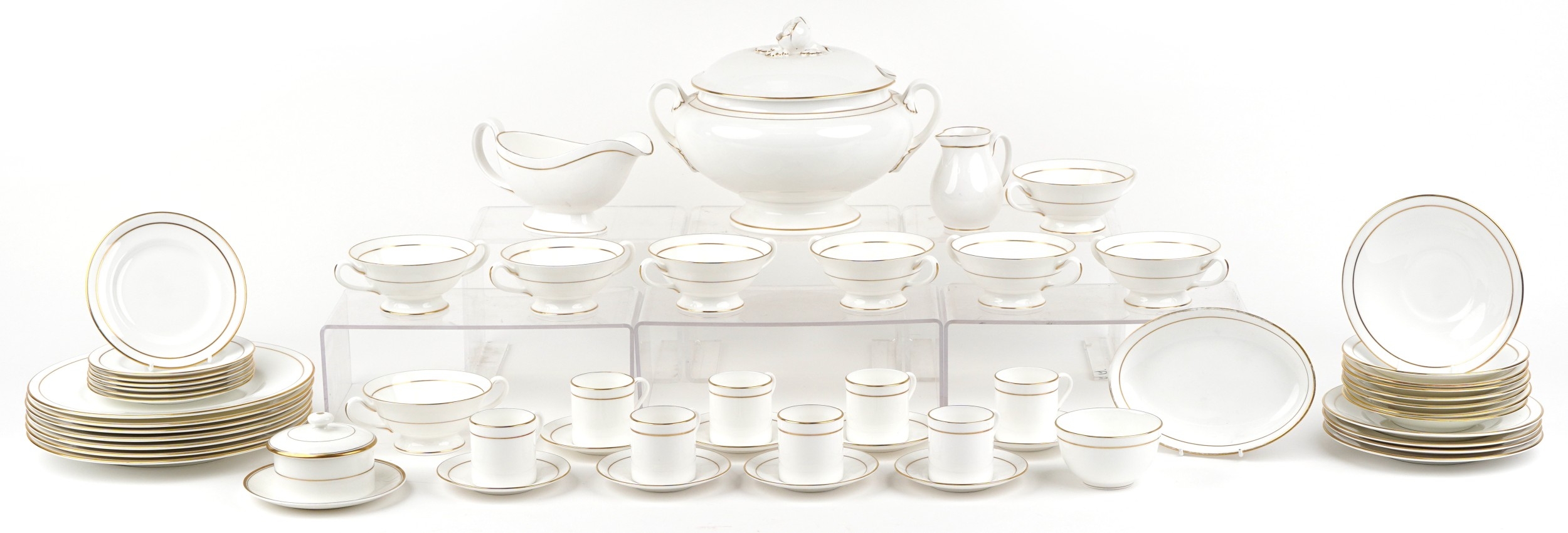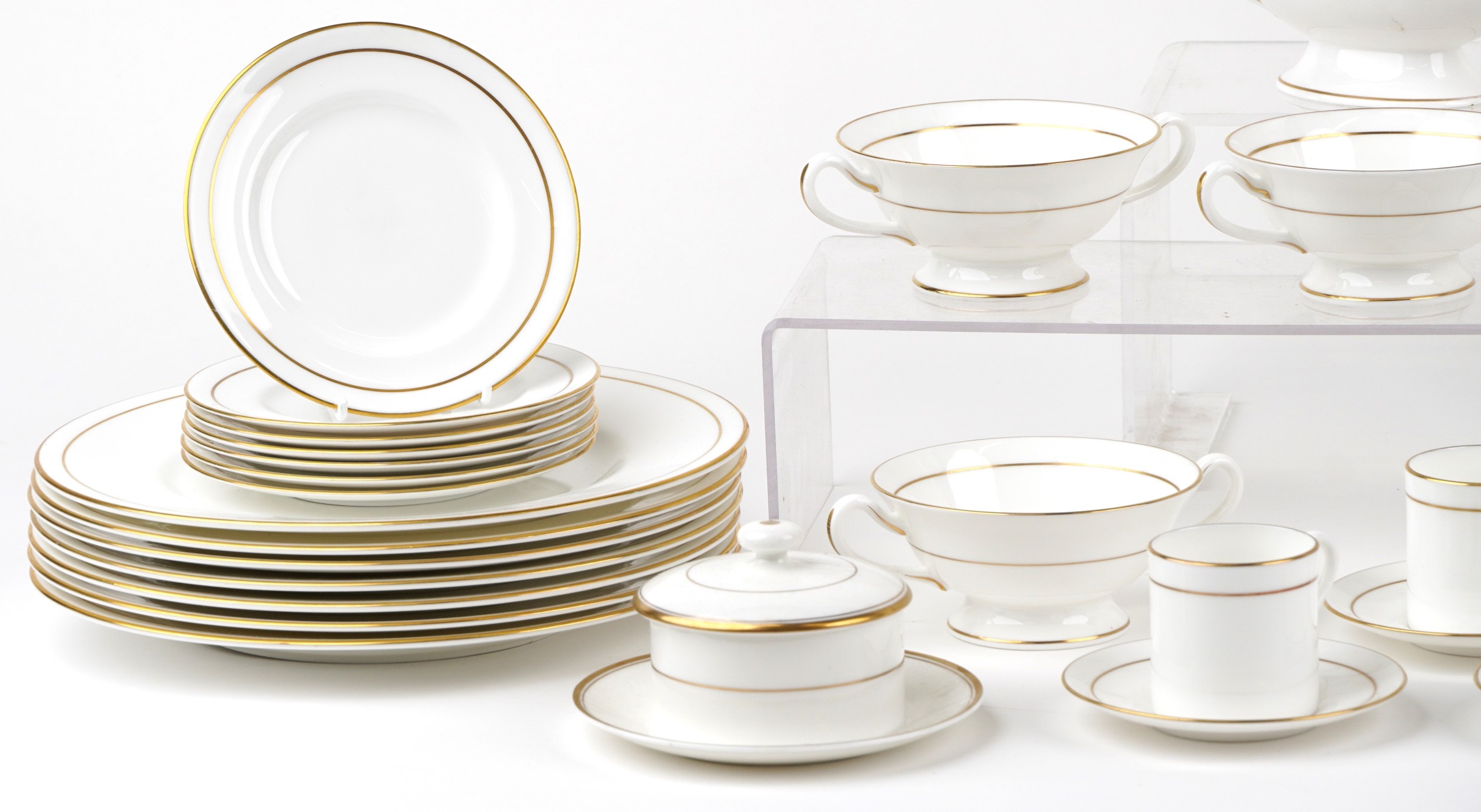 The handle on the tureen has a crack. All other pieces appear to be in good general condition. With very light signs of wear. No other visible chips or cracks.