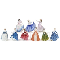 A Royal Worcester part coffee and dinner service in the Contessa pattern including eight coffee cups, dinner plates and side plates and a Royal Doulton pot and cover, the largest 20cm high.
