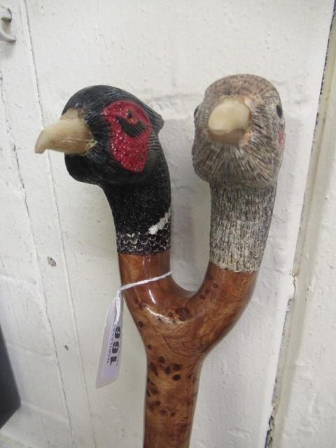 TWIN PHEASANT HEADED WALKING STICK