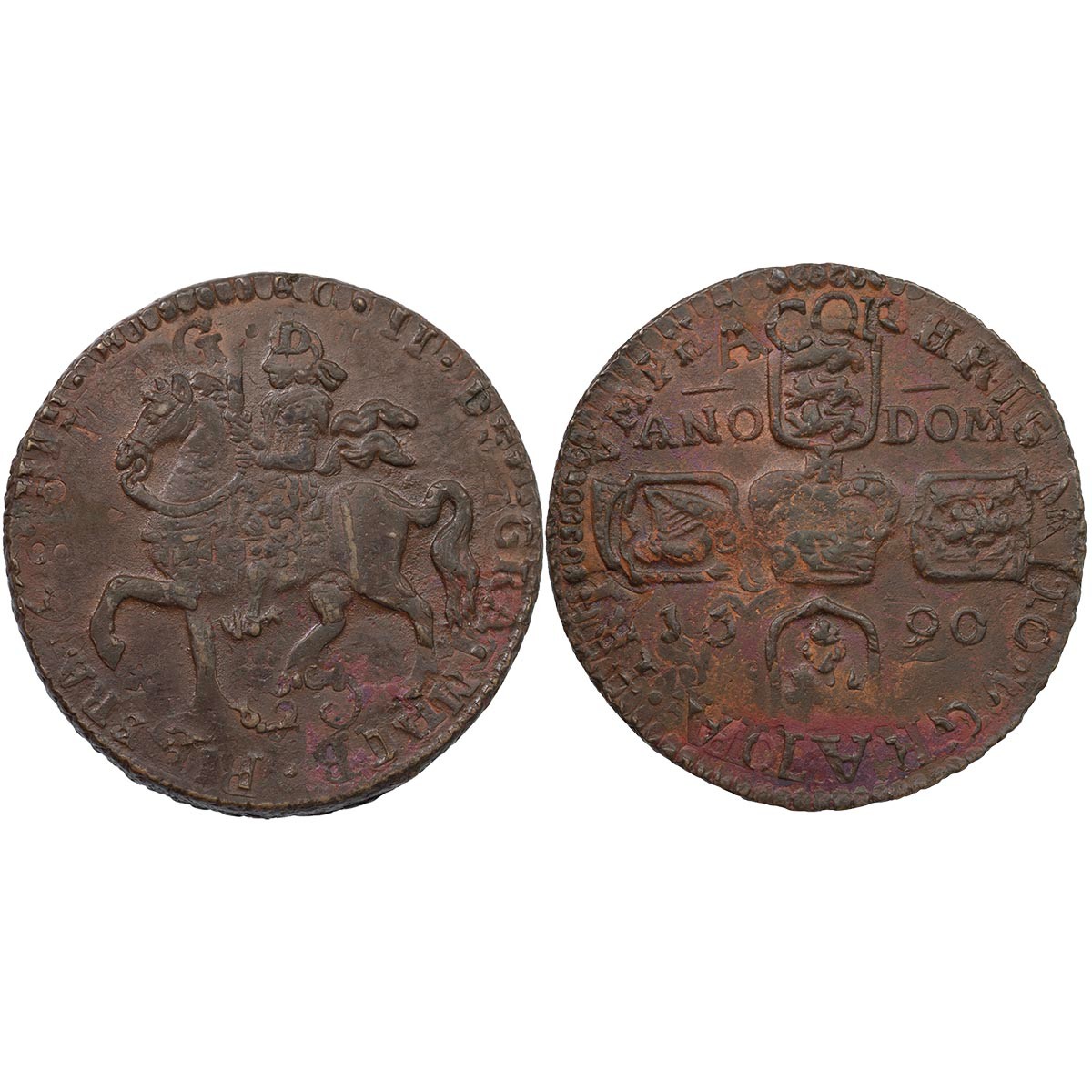 Ireland, 1690 James II Gunmoney Crown (S 6578), Very Fine with crown understrike showing through appealingly on horse.