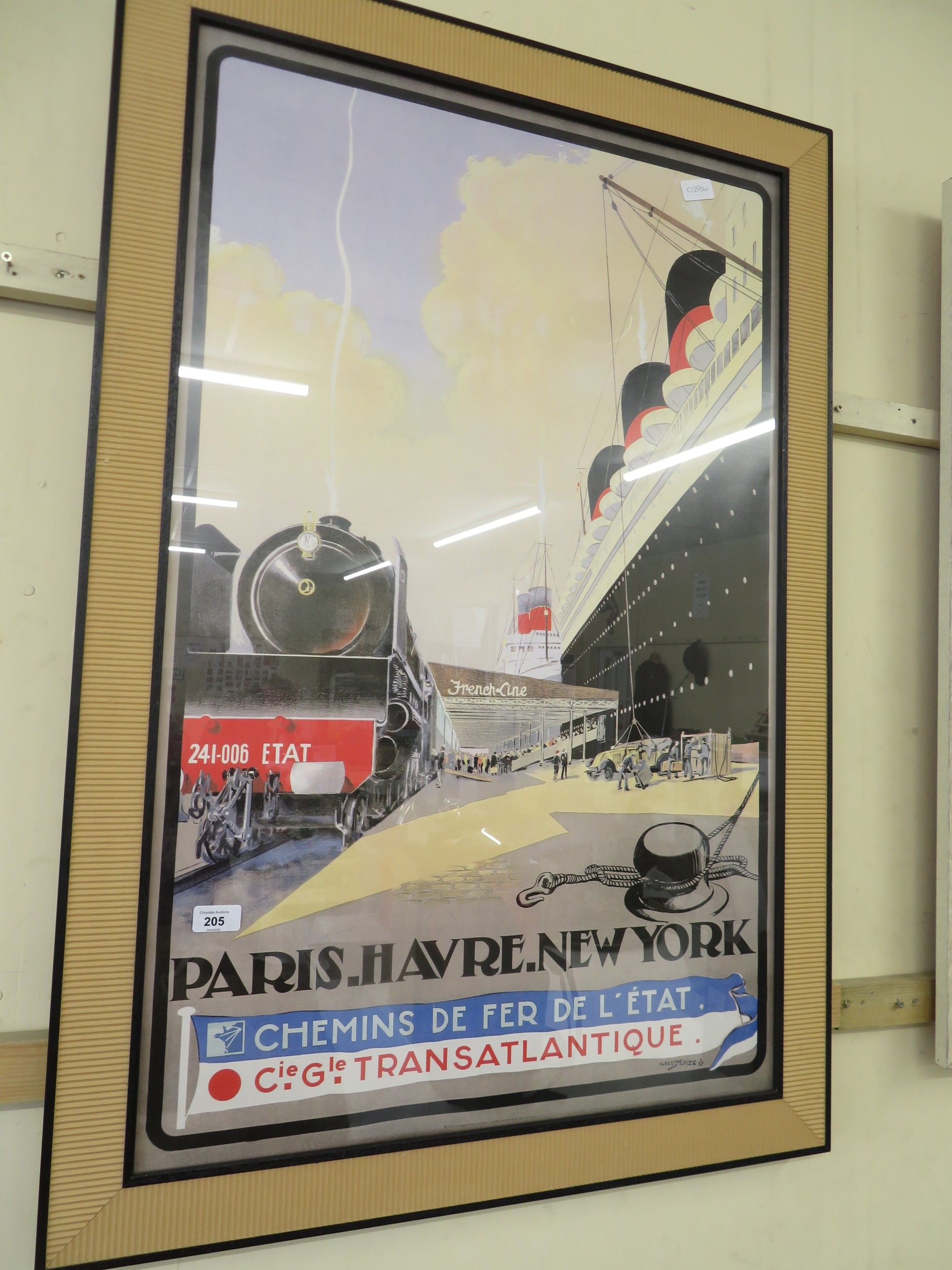 Framed poster - Paris. Havre. New York, train and ship poster, 40x30ins