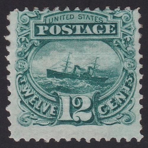 1869 1869 Banknotes 12c ship Scott 117, SG119 Mint large part OG, intense colour cat £2250.