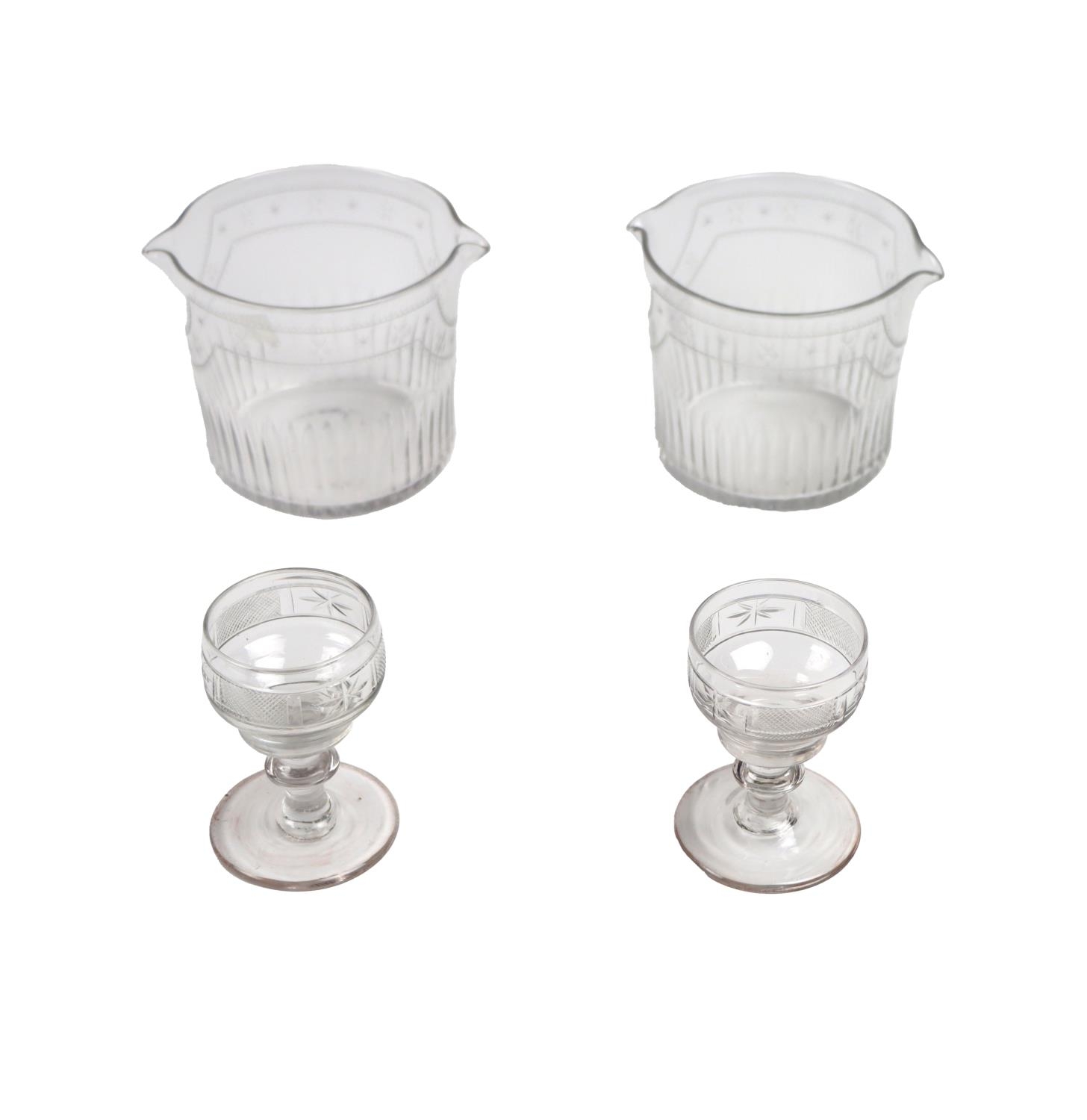 A pair of fine Irish Georgian cutglass Port Glasses, Cork, c. 1815, and a pair of similar engraved and cut Wine Glass Coolers. (4)