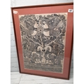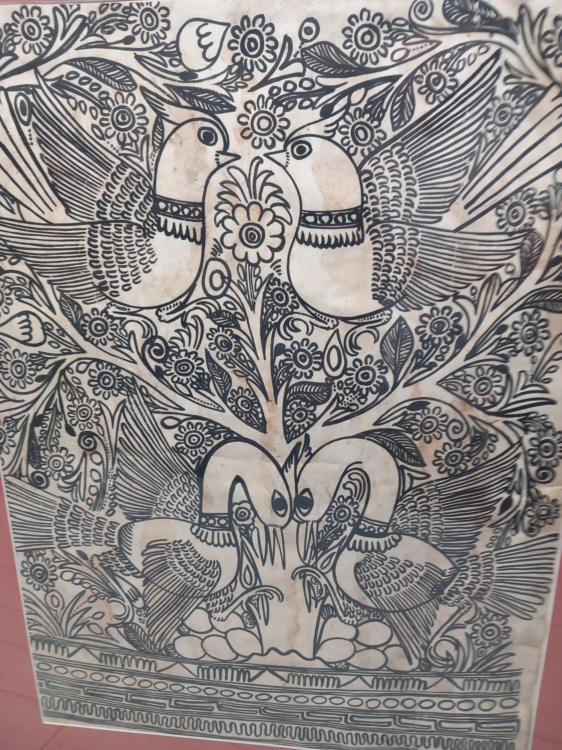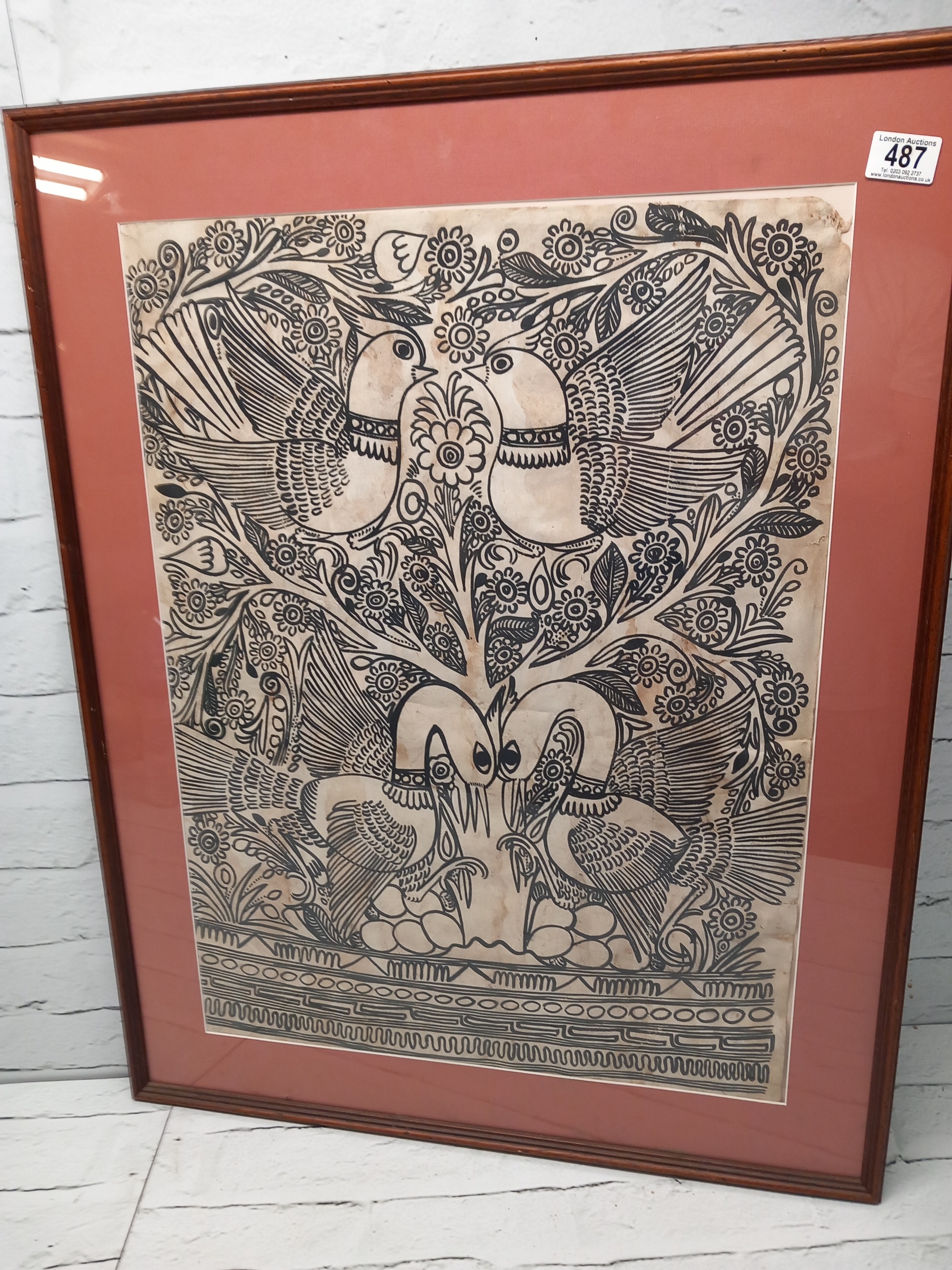 Traditional Indian Folk Art, Ink on Paper, Framed 64cm x 48cm