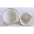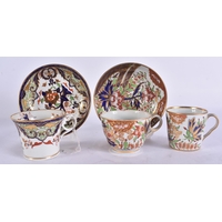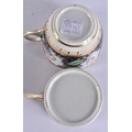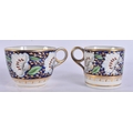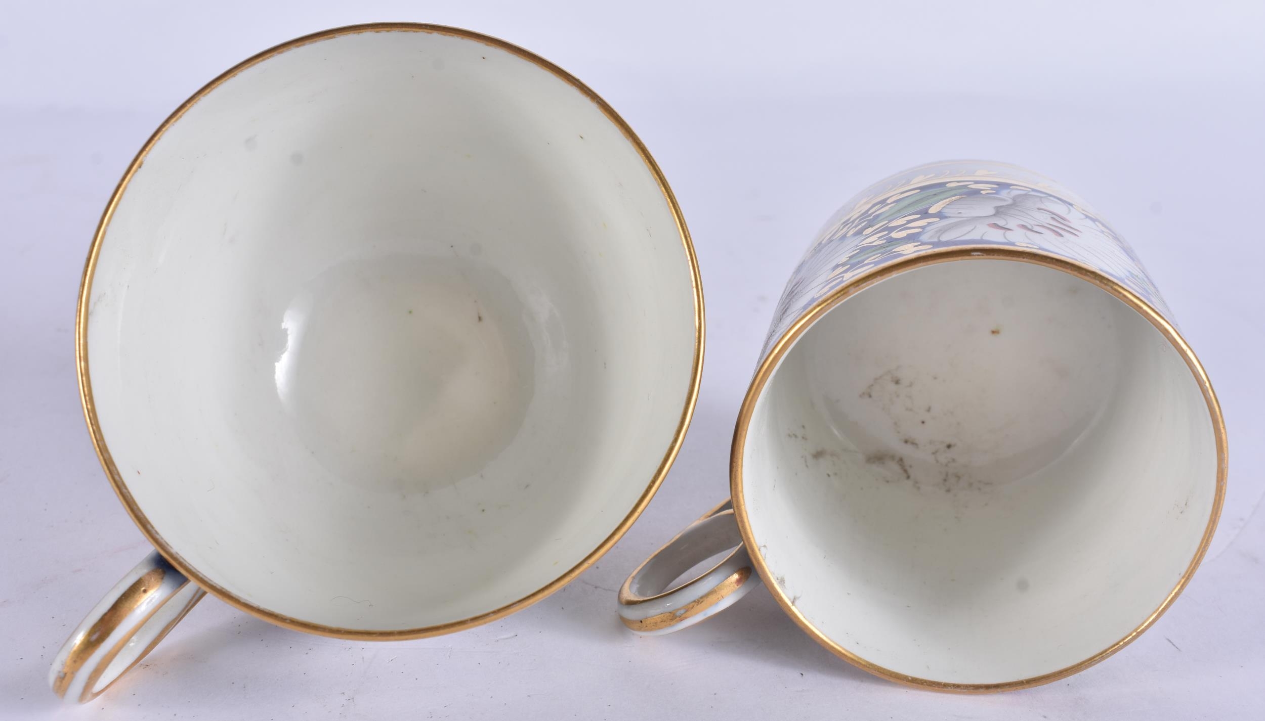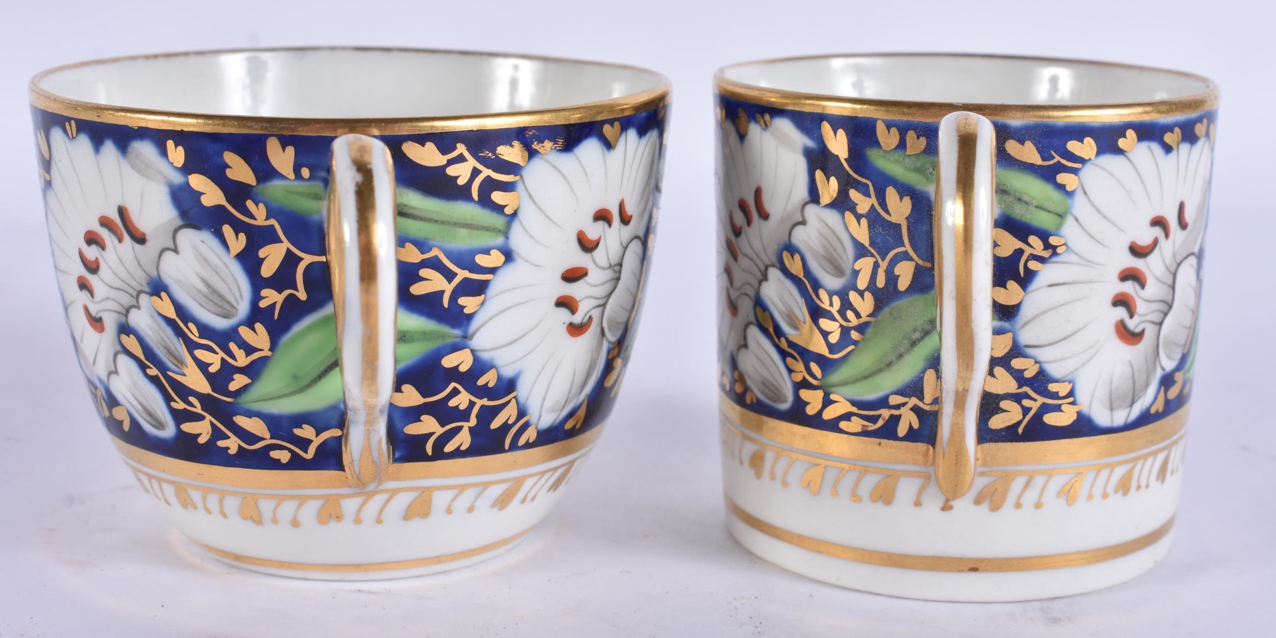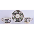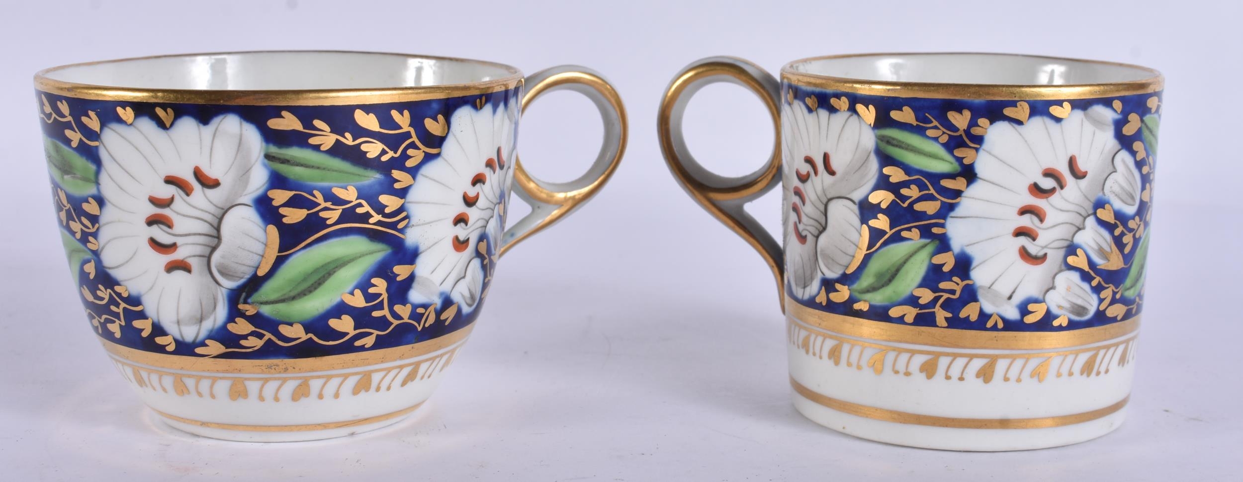 A LOVELY EARLY 19TH CENTURY ENGLISH PORCELAIN TRIO painted with flowers on a rich blue and gilt ground. 12.5 cm diameter. (3)