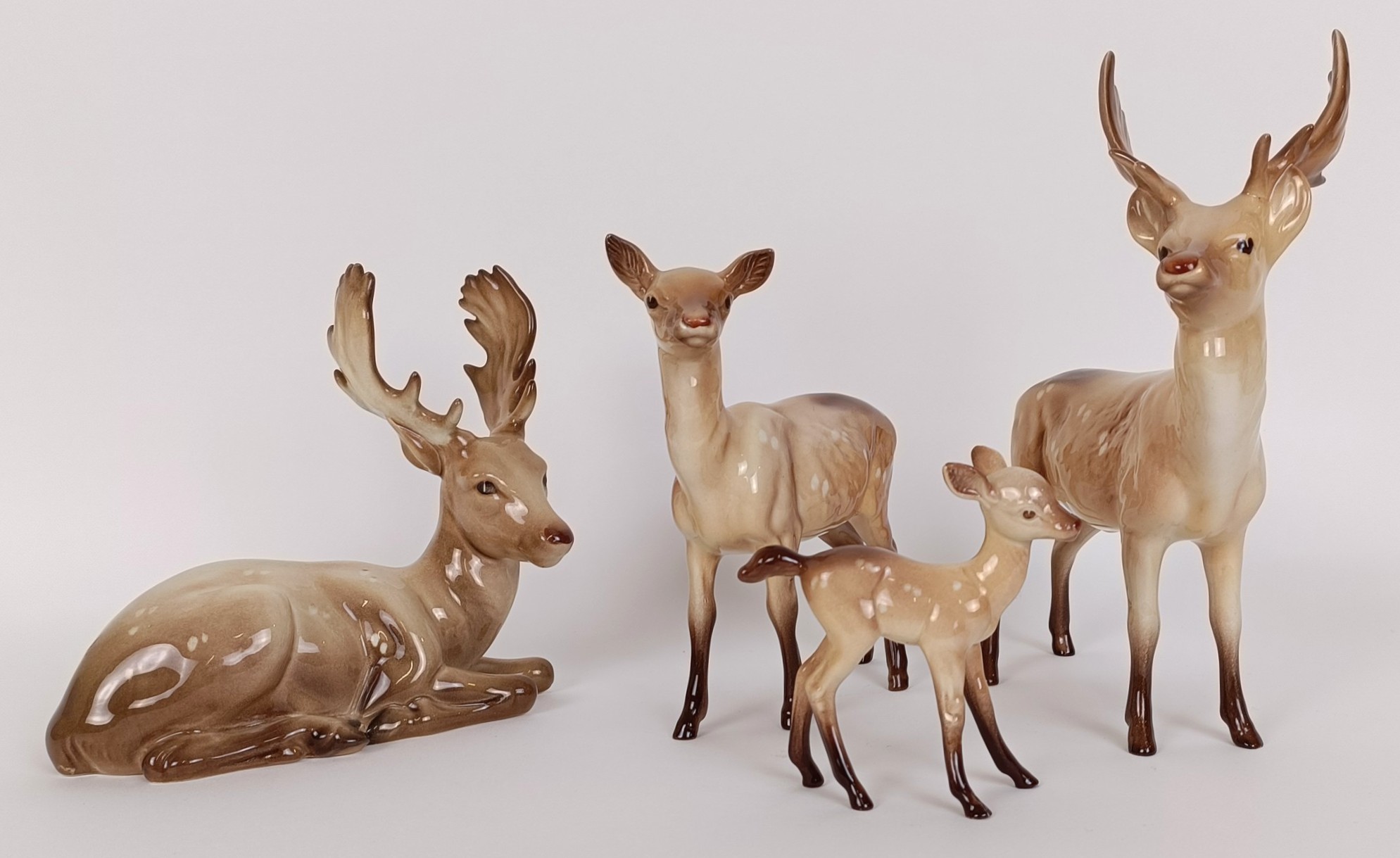 A Beswick Stag, lying, 954, another, standing, 981, a Doe, 999A, and a fawn 1000B, all gloss (4)