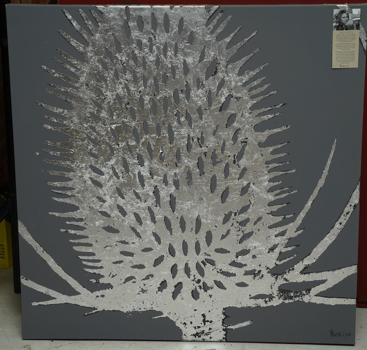 mixed media with silver foil on canvas, approx 90 x 90cm