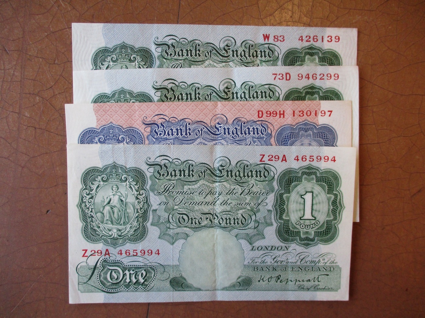 Range generally extremely fine/ nearly extremely fine with £1 Catterns W83, Peppiatt 1934 73D, 1940 D99H, 1948 threaded Z29A last series, 10/- Peppiatt 1940 E45D nearly very fine, Beale K25Z, O'Brien W28Y and Hollom S14. Qty 8 (R)