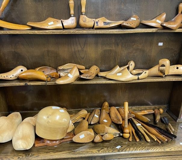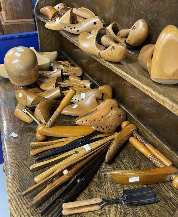 Treen: Cobblers shoe lasts, glove stretchers and a hat block. Approx. 40 items.