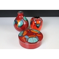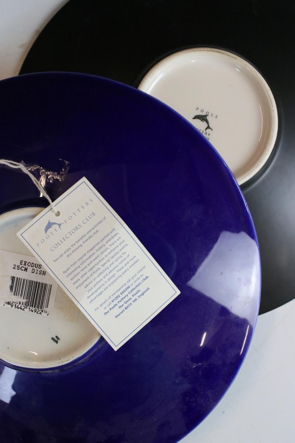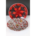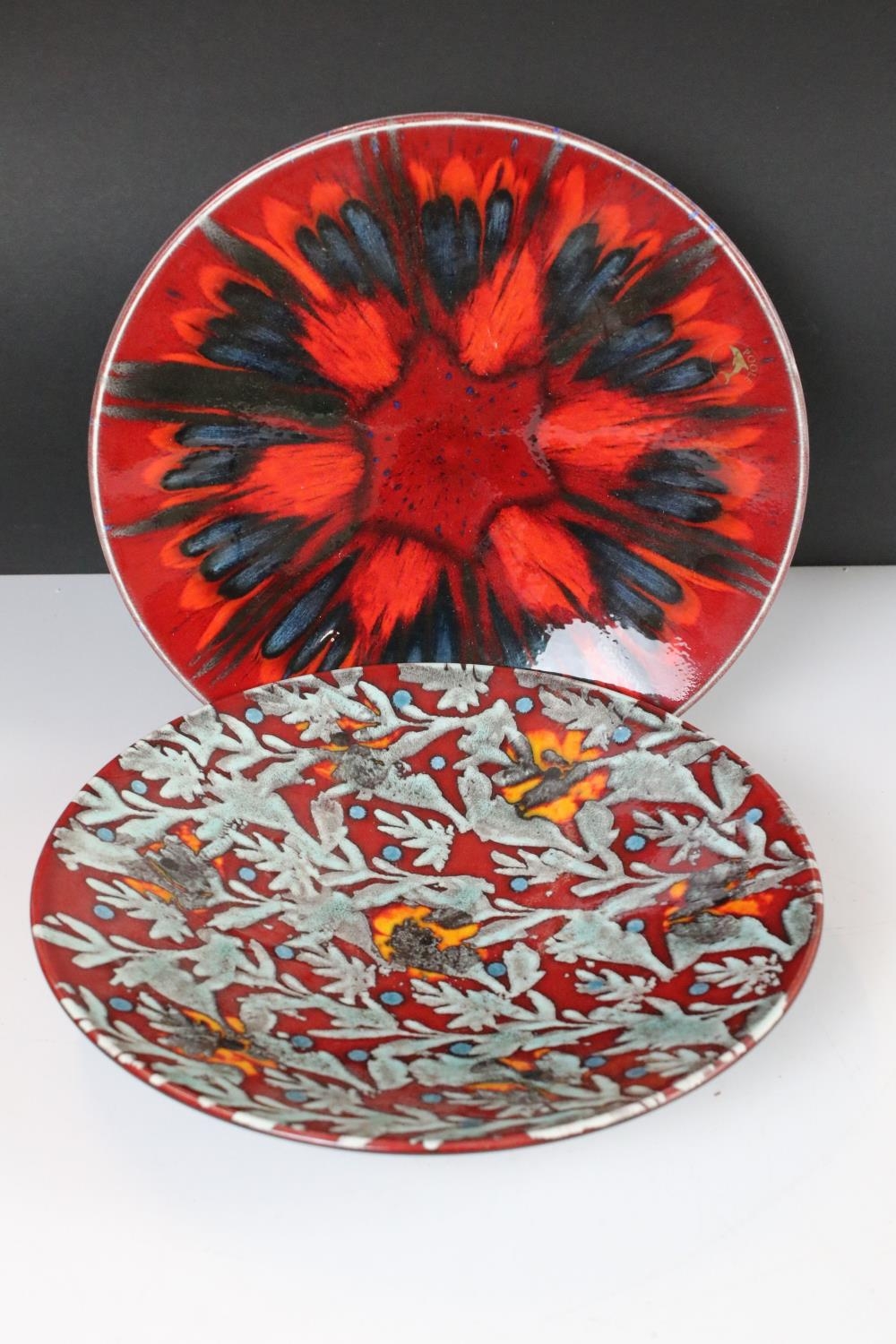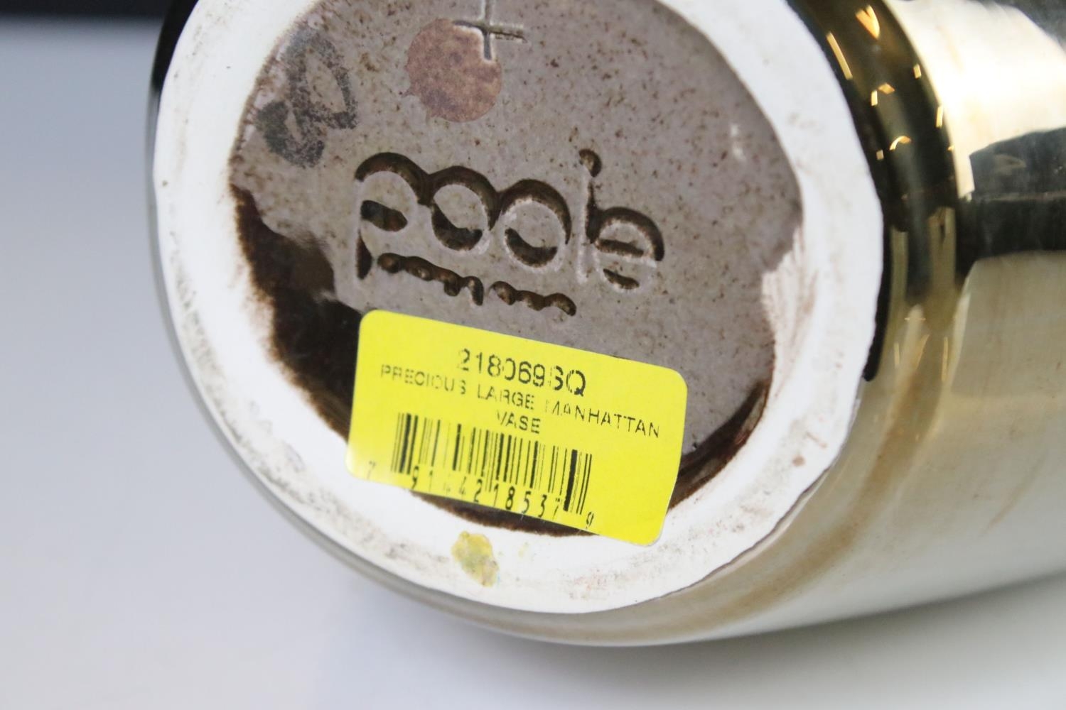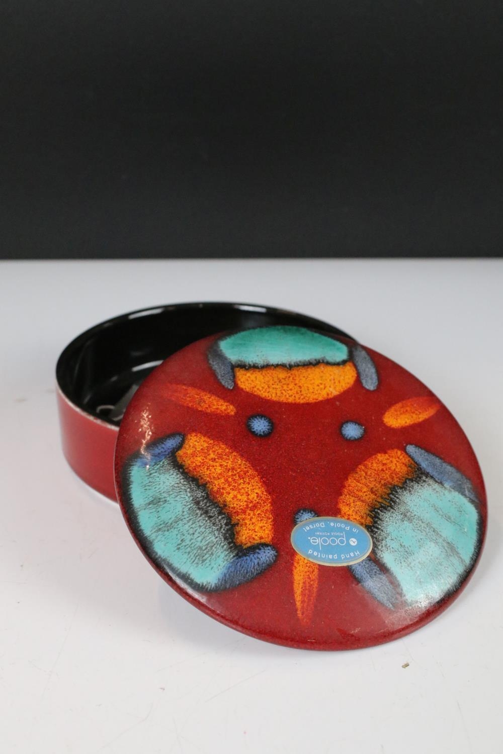 Collection of Poole Pottery including Brown Lustre Vase, 38cm high, Pastel Brush Strokes Vase, 26cm high, Exodus Plate and Red Magma Plate, 27cm diameter, Two Volcanic Vases and a Lidded Box plus a Sugar Bowl