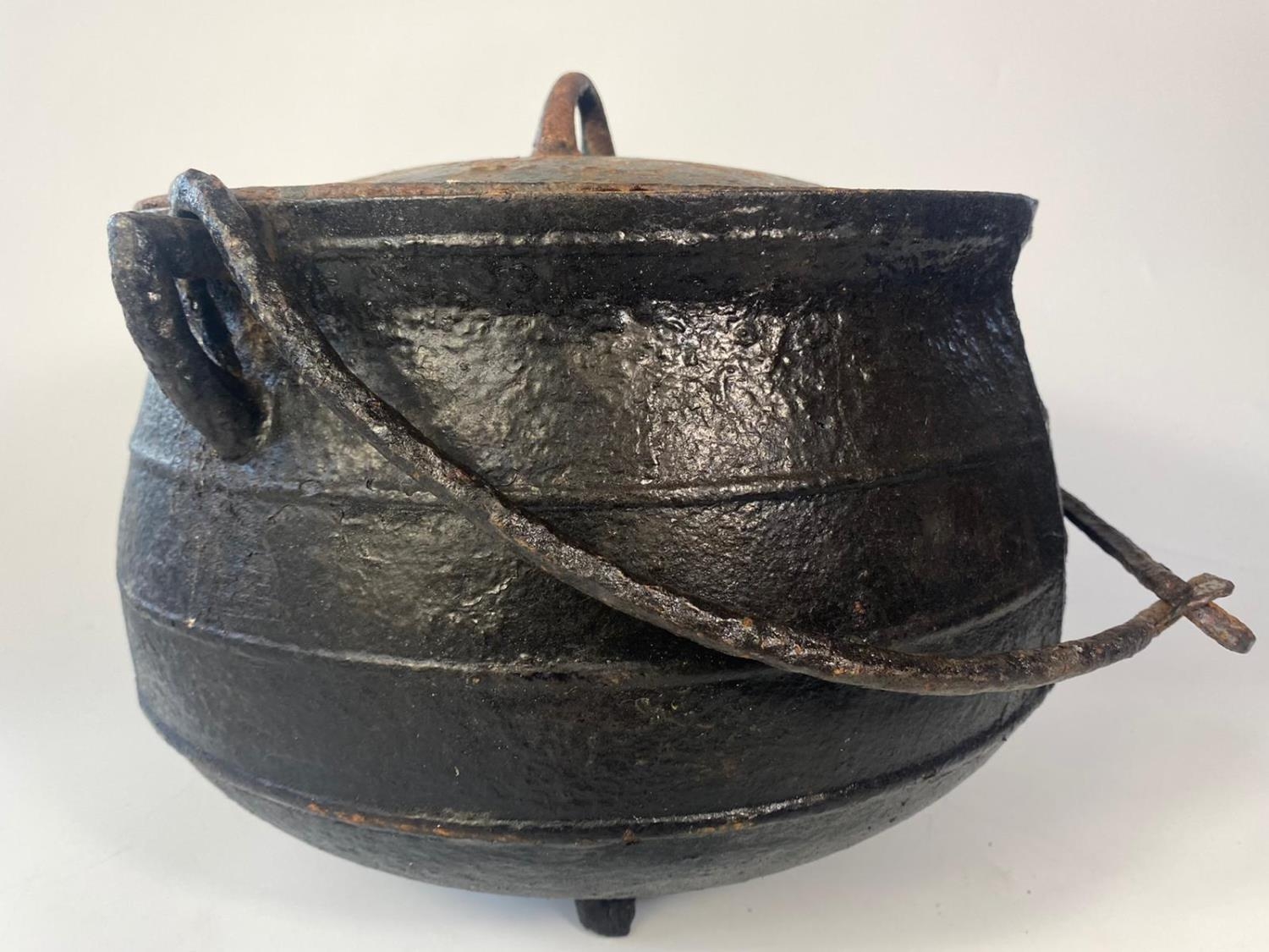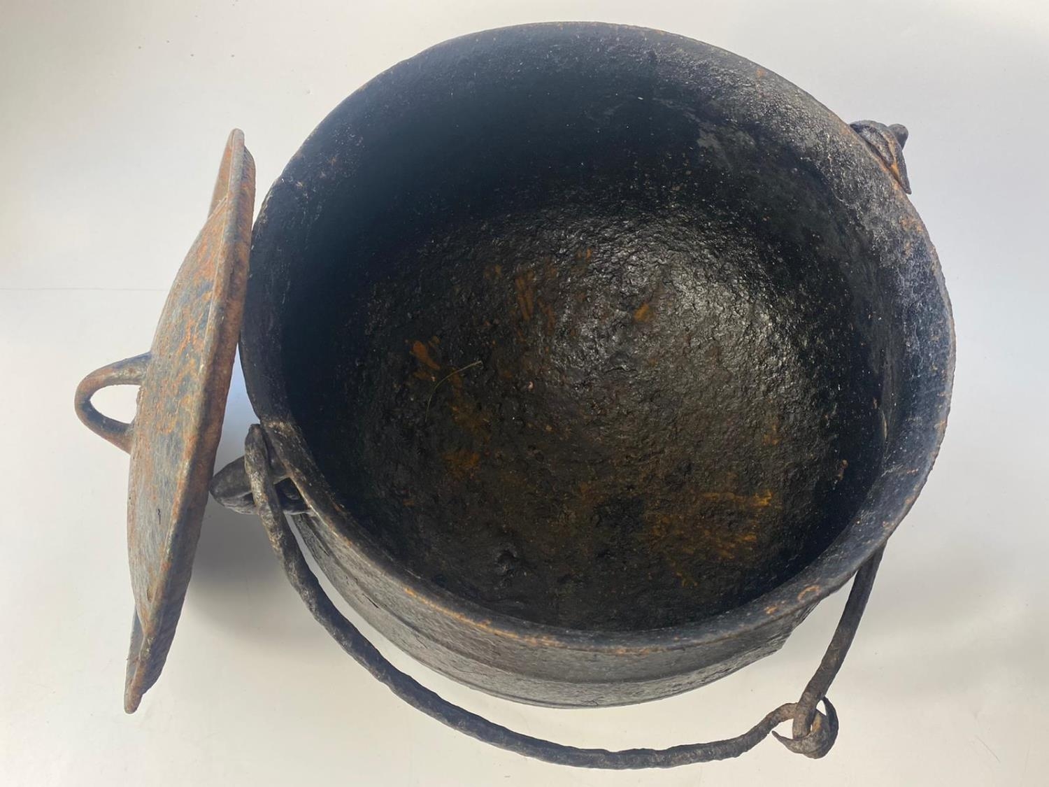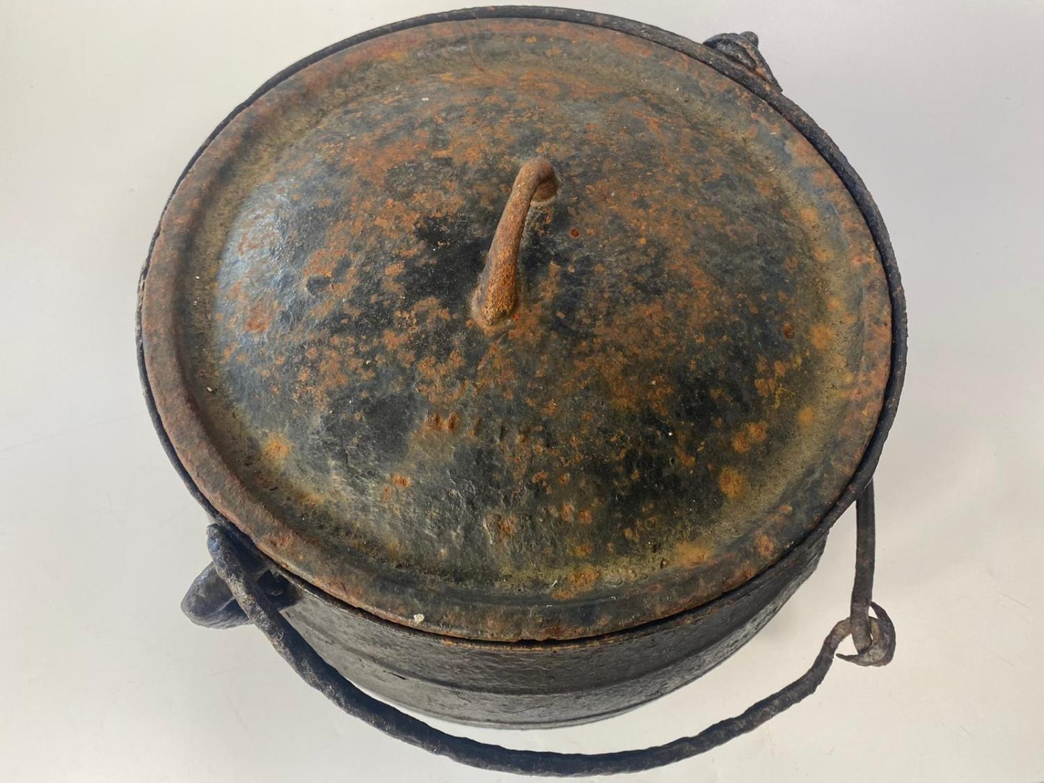 Vintage cast iron pot with handle and lid, 35cm x 25cm