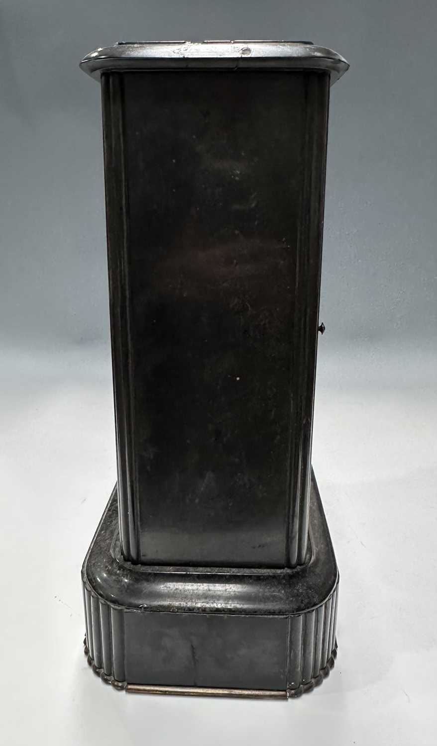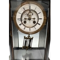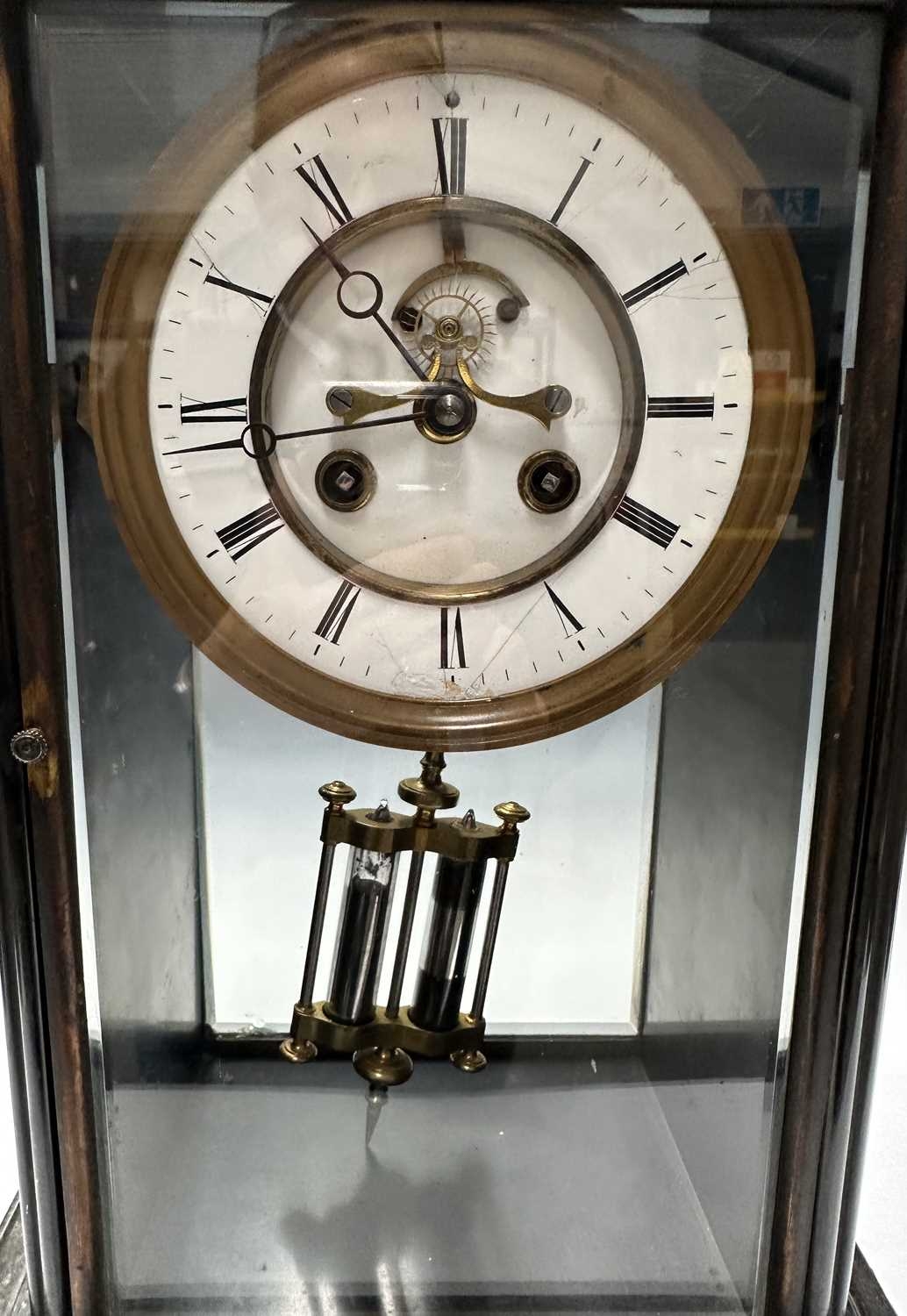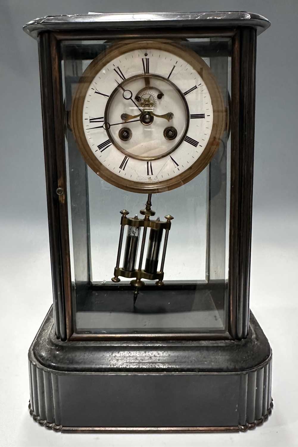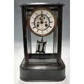 A late 19th century French bell striking mantle clock, black marble case with bevelled glass panels to the front and door to the back, brass and enamelled dial with Roman numerals, with Brocot escapement, mercury compensated pendulum, height 46cm, width 30cm, depth 22cm (1)
