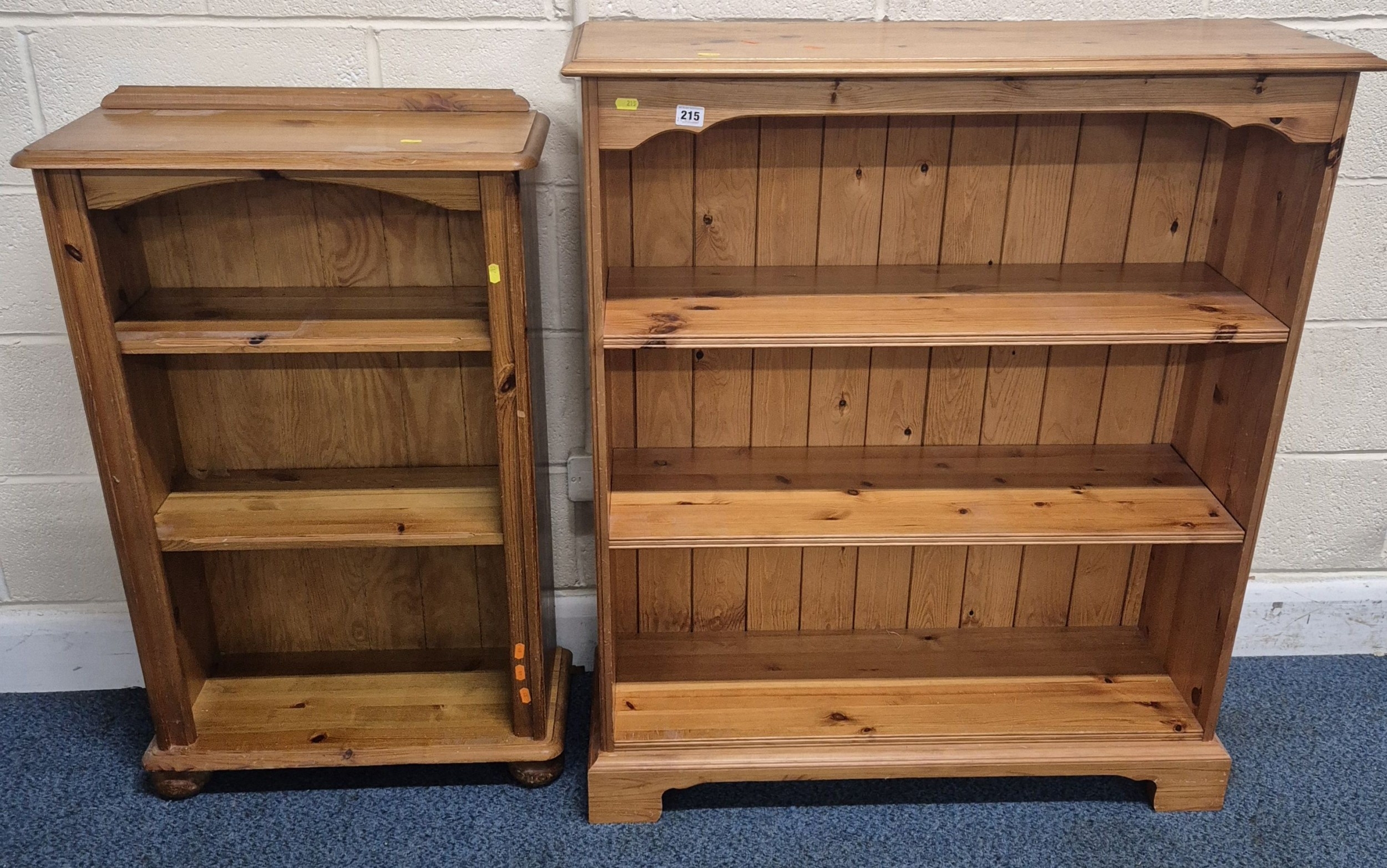 TWO MODERN PINE OPEN BOOKCASES, largest bookcase width 93cm ...