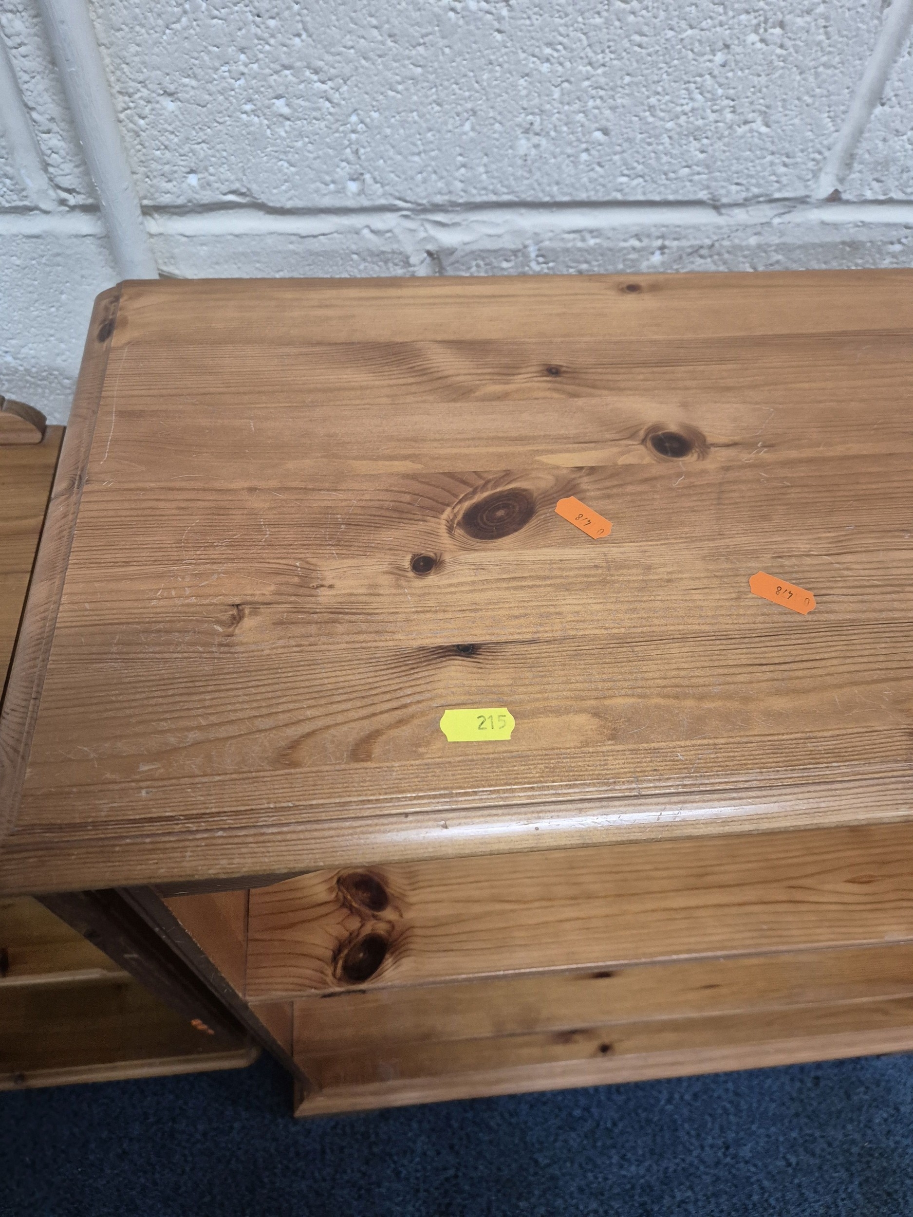 TWO MODERN PINE OPEN BOOKCASES, largest bookcase width 93cm x depth 31cm x height 109cm, condition report: both with marks, scuffs other wear and usage (2)