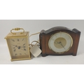 Collection of clocks to include a WATERFORD CRYSTAL clock standing 8cm high, an EDINBURGH CRYSTAL pyramid shaped clock standing at 9cm tall, a vintage SWIZA mantel clock 12 cm high, and a wooden-cased WESTCLOCK electric clock with brass inscription 'To Allan - Carluke Rovers Season 1961 - 62'