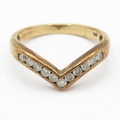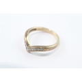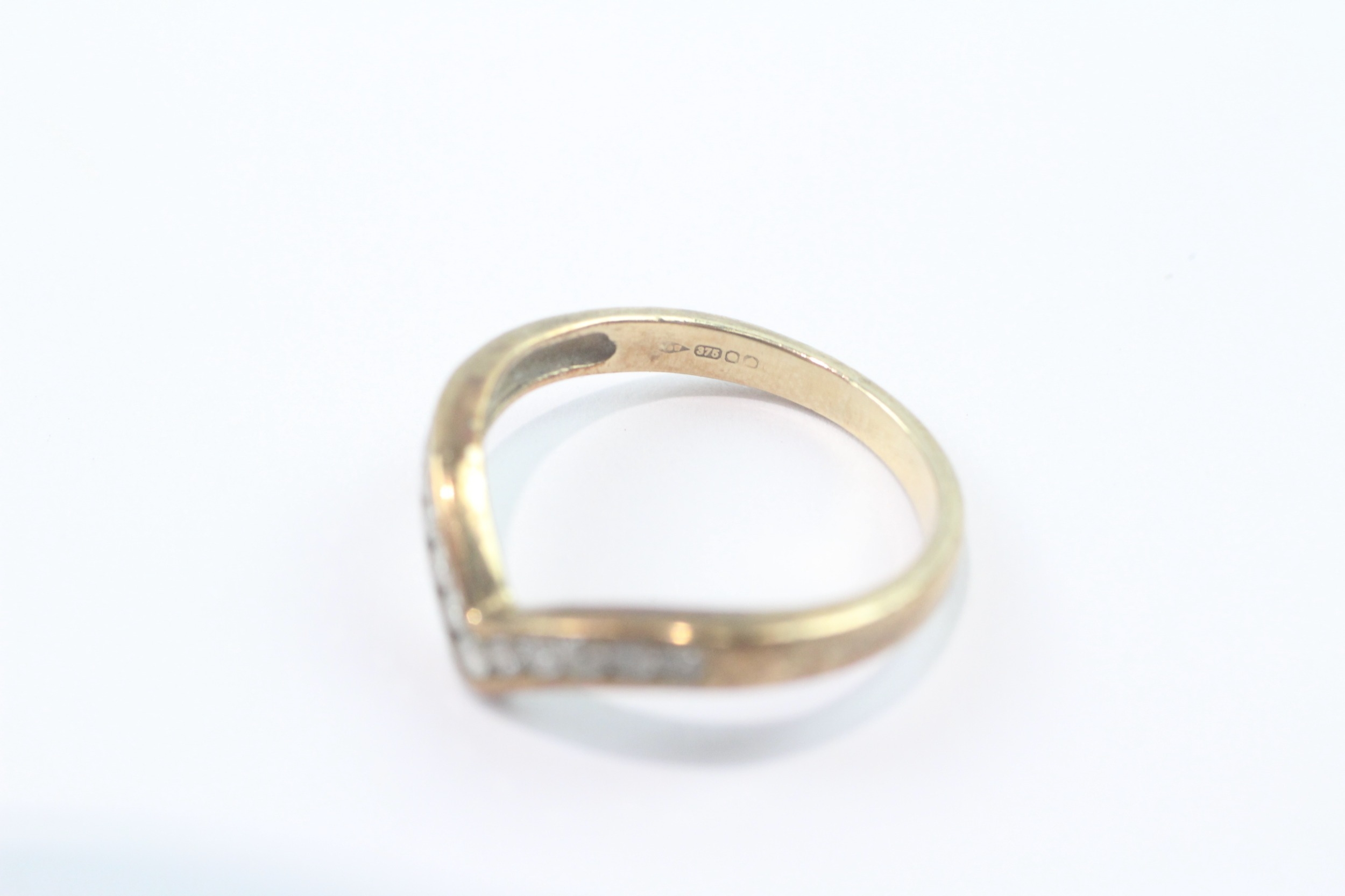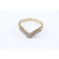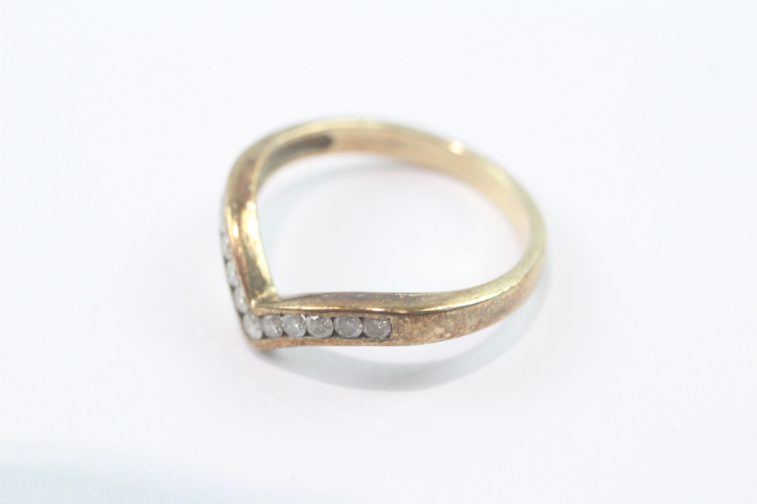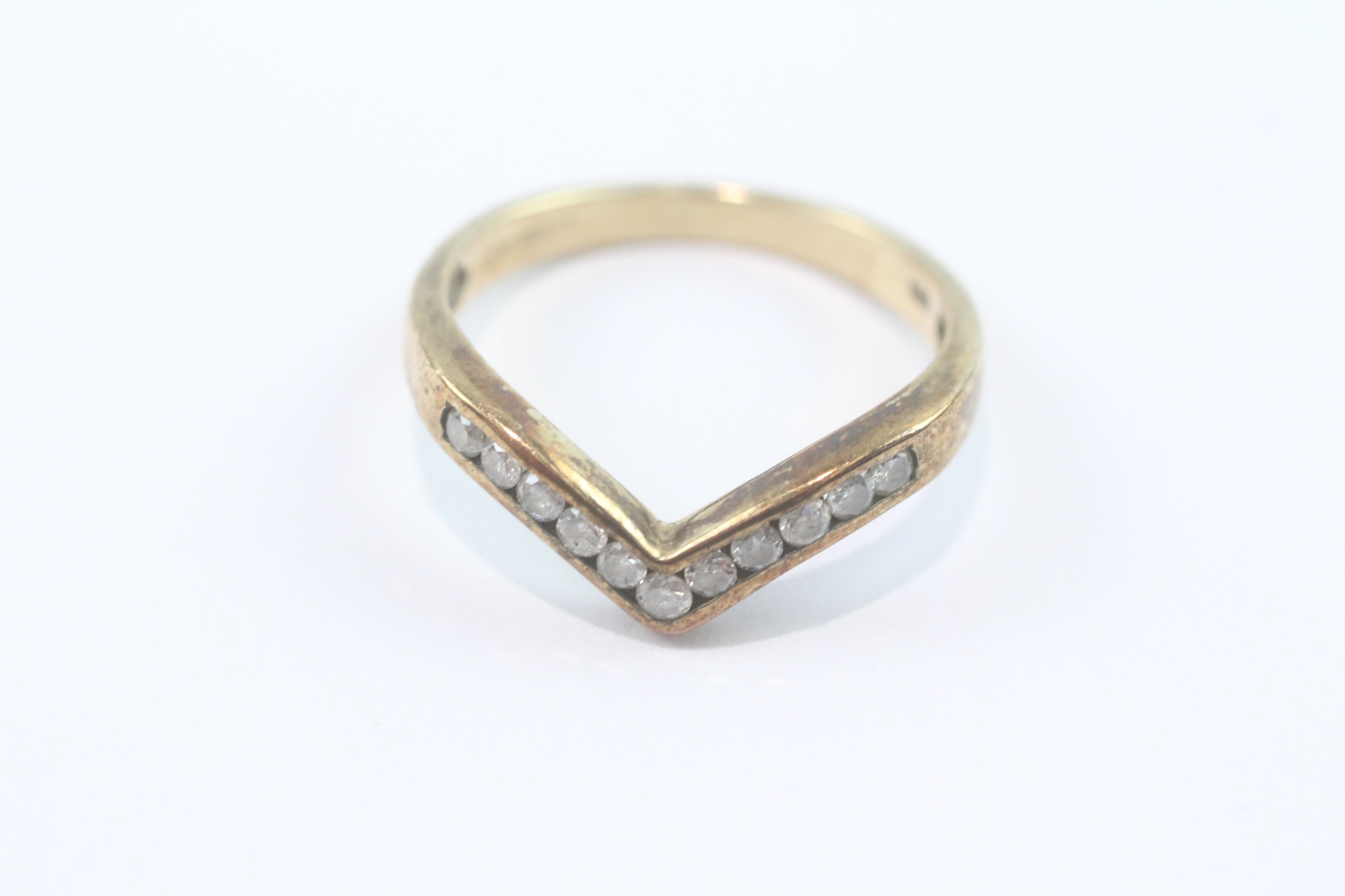 9ct gold channel set diamond wishbone ring (2.2g) Size M 1/2