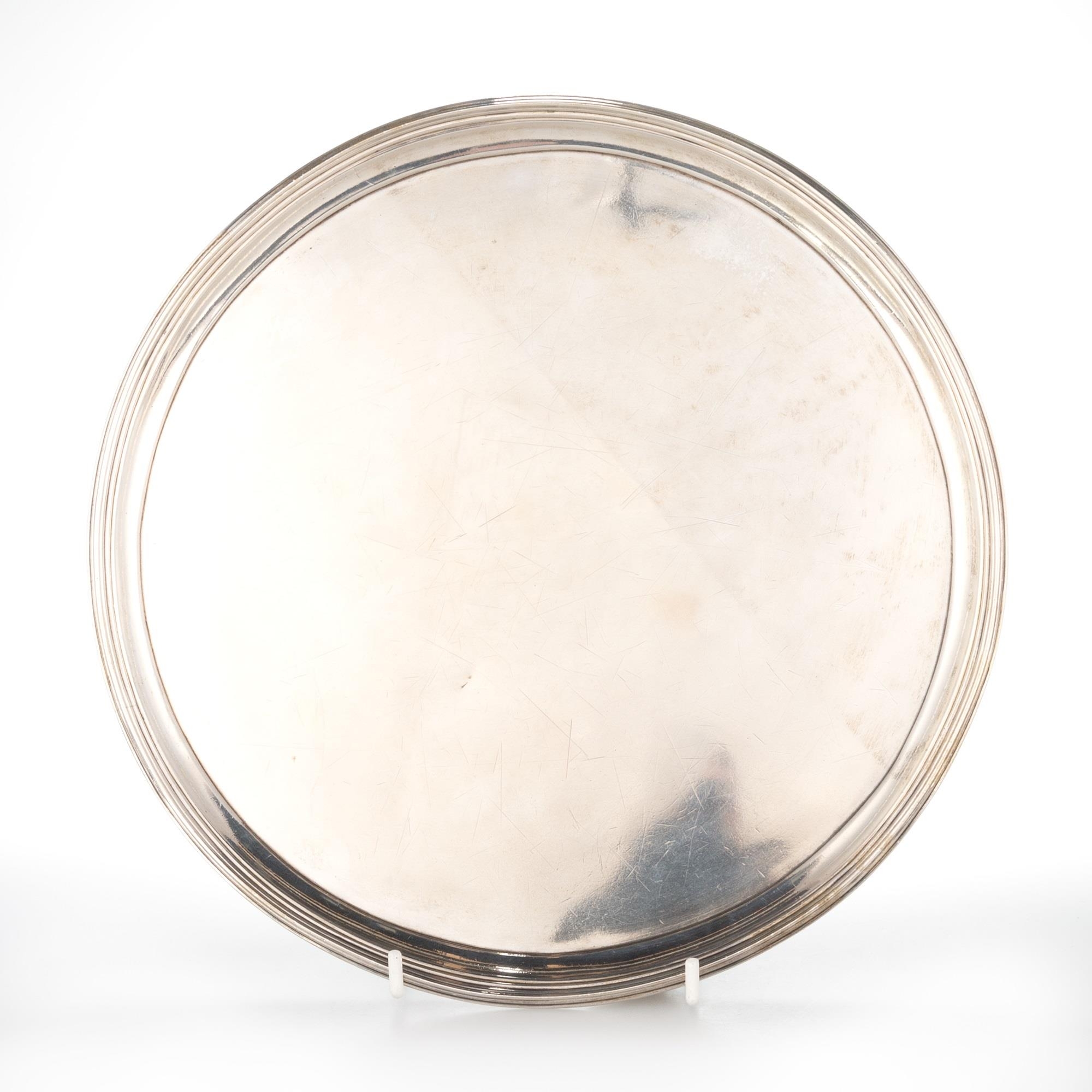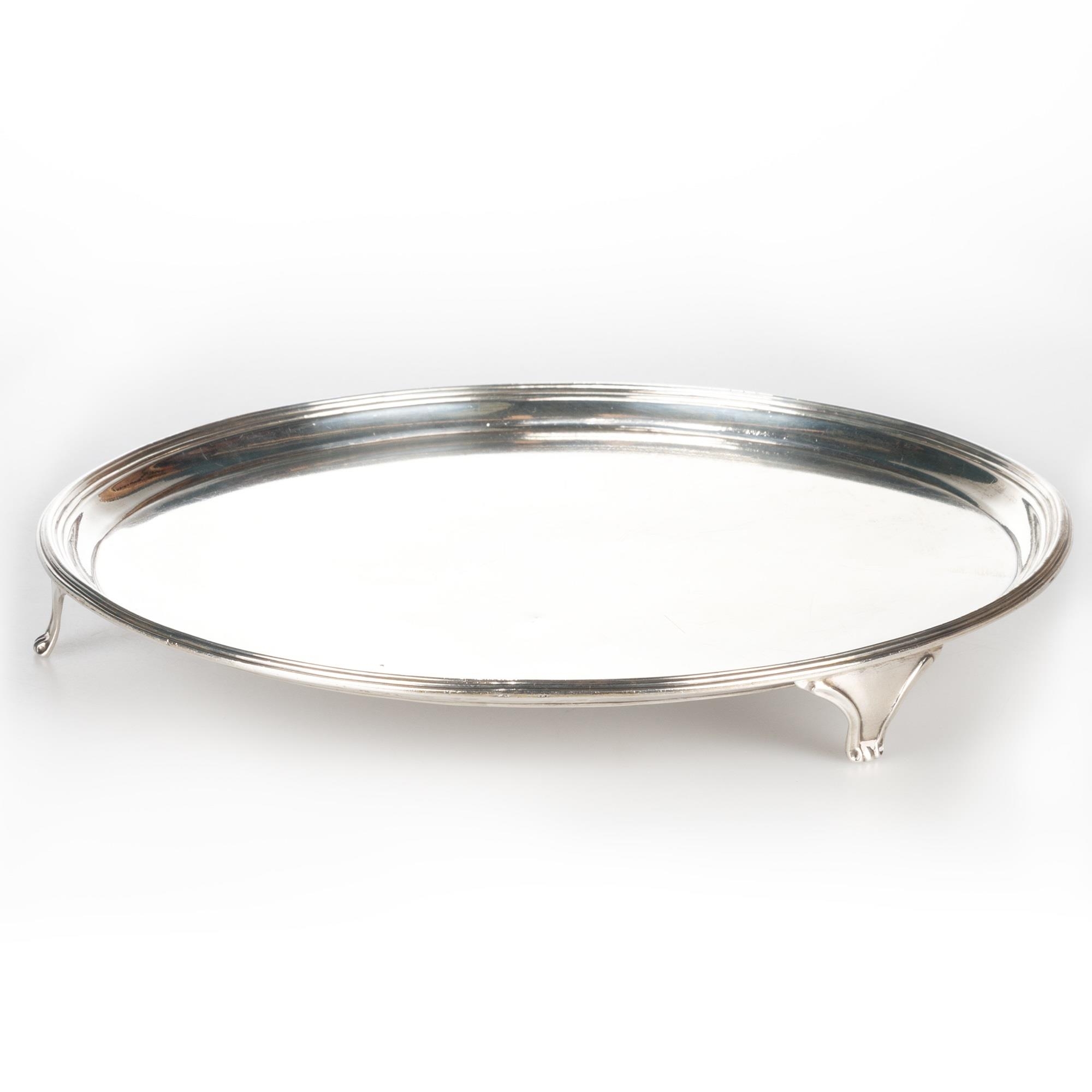 mark of Solomon Hougham overstriking, London 1794, plain circular form, with reeded edge, raised on three tapering and scroll-form feet. 26cm diameter, 19.2 troy ounces
