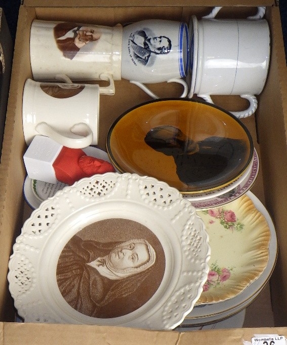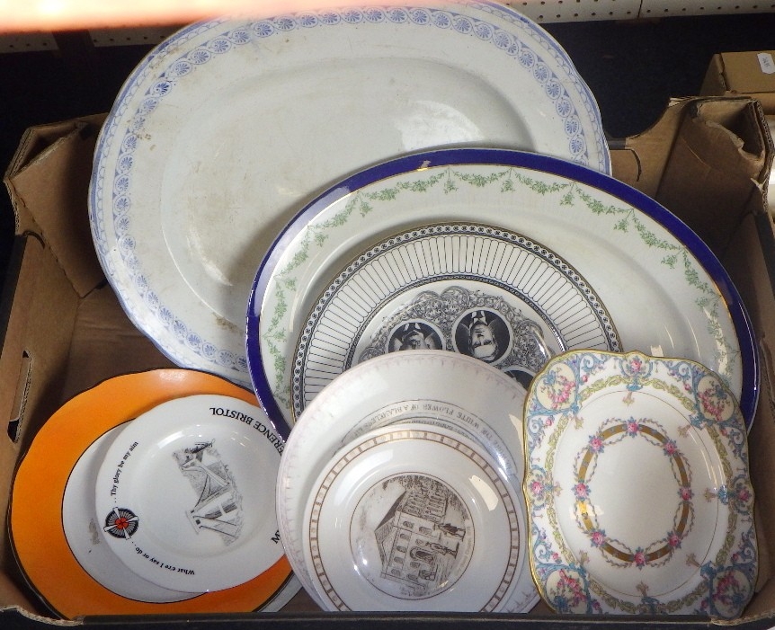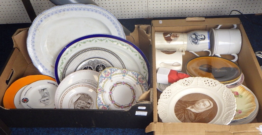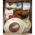 Two boxes of ceramics to inc decorative wall plates, mugs etc, af (2)