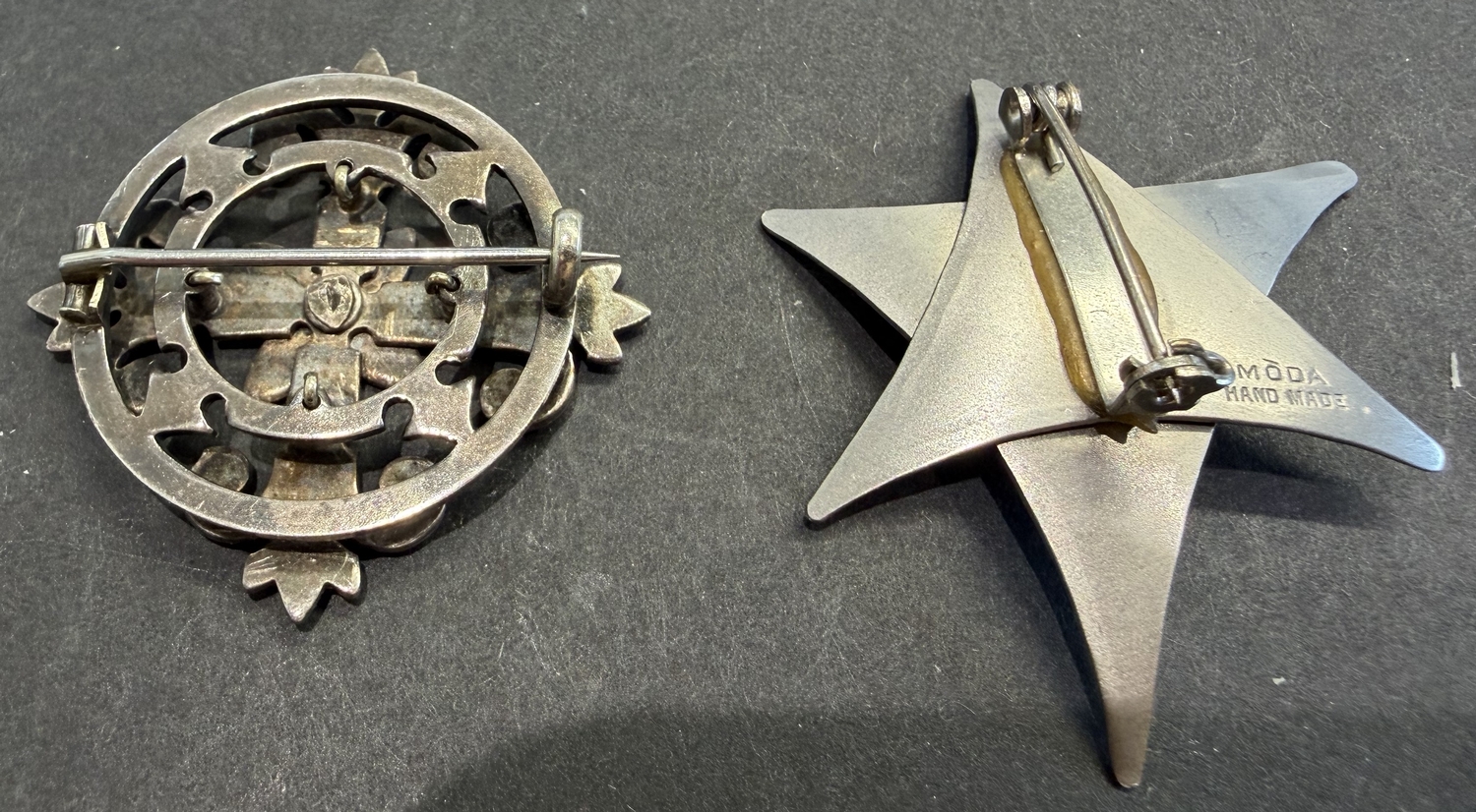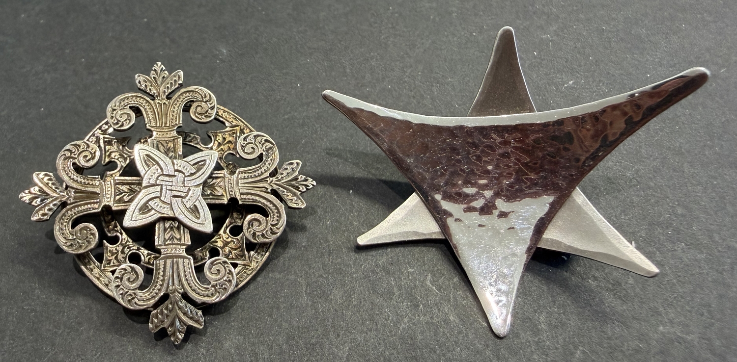 Jewellery : Pair of vintage white metal broach's possible continental design