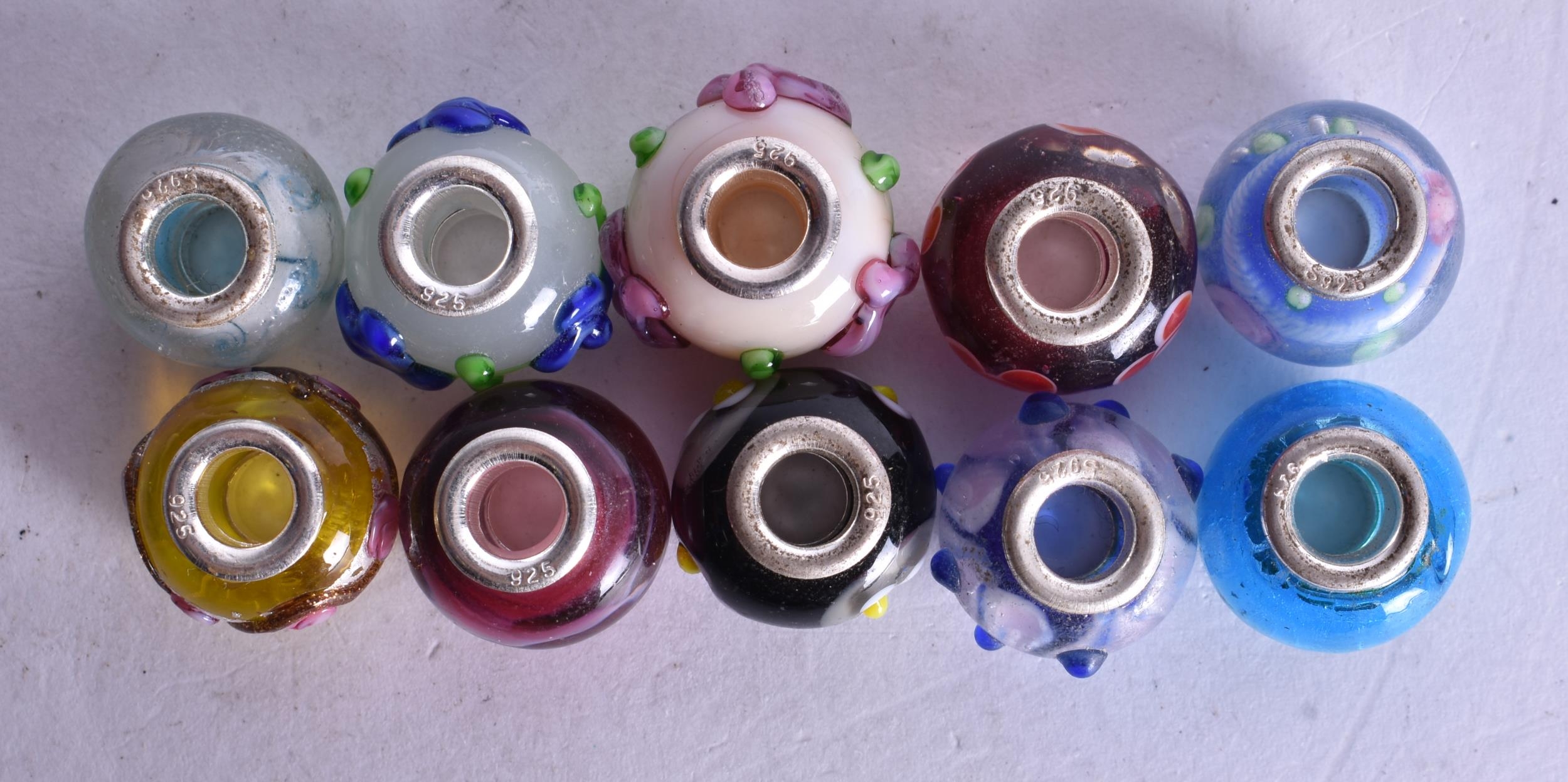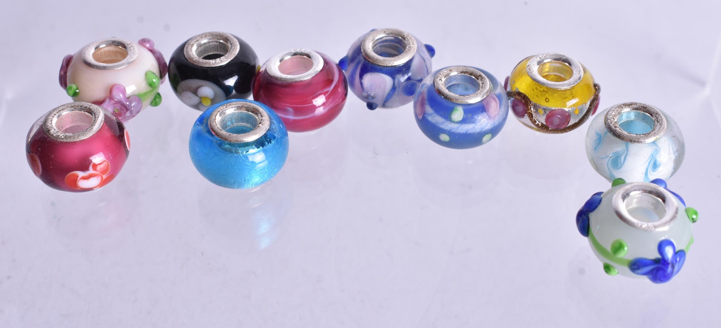 TEN SILVER MOUNTED CHARMS. 27 grams. (10)