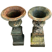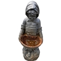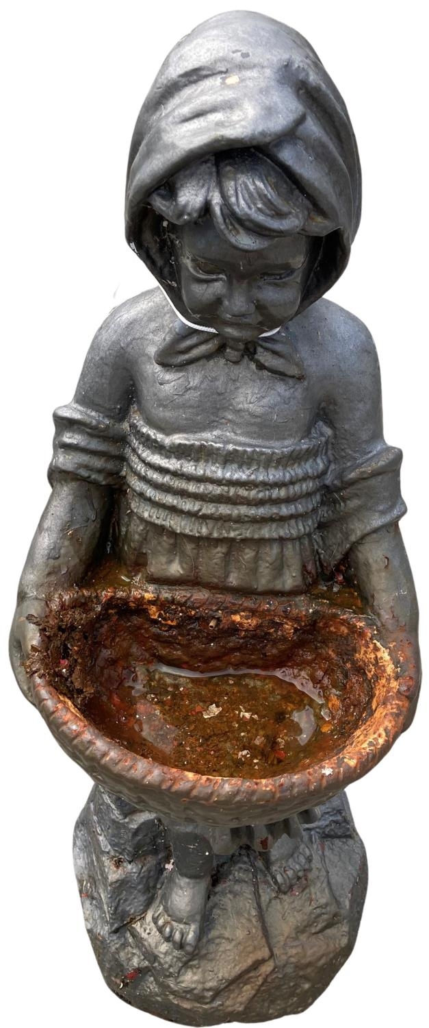 A heavy cast iron Bird Bath, in the form of a young girl holding a basket in both hands and standing on a rock, 92cms (36")h. (1)