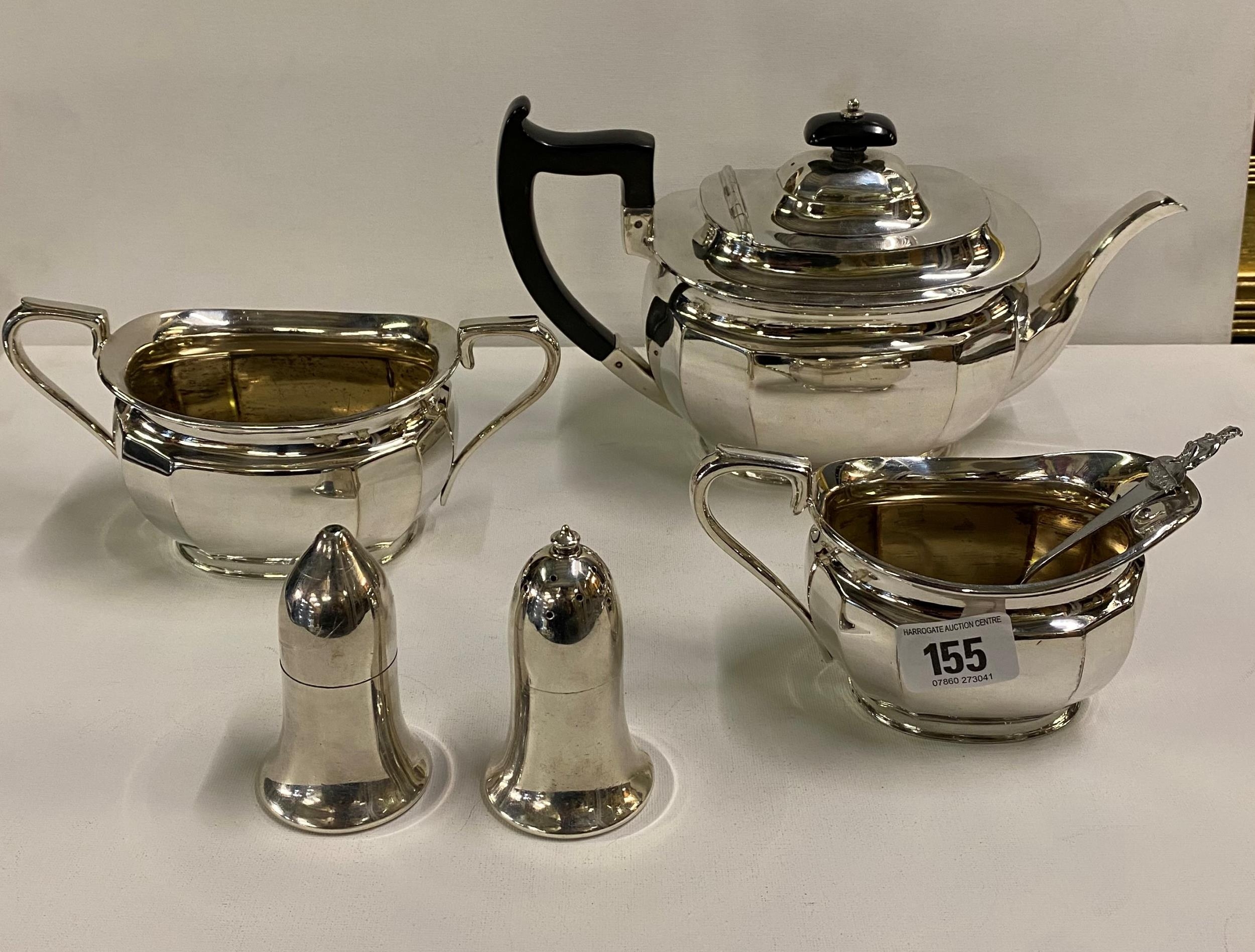 Edwardian Silver Plated tea service with cream jug sugar basin and cruet