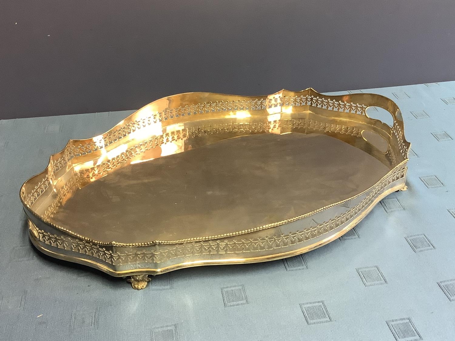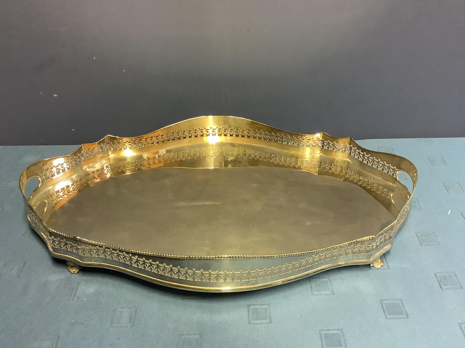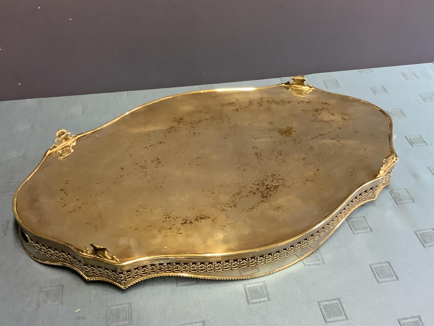 Good quality heavy EPNS oval serpentine galleried silver plated tray 62cm L