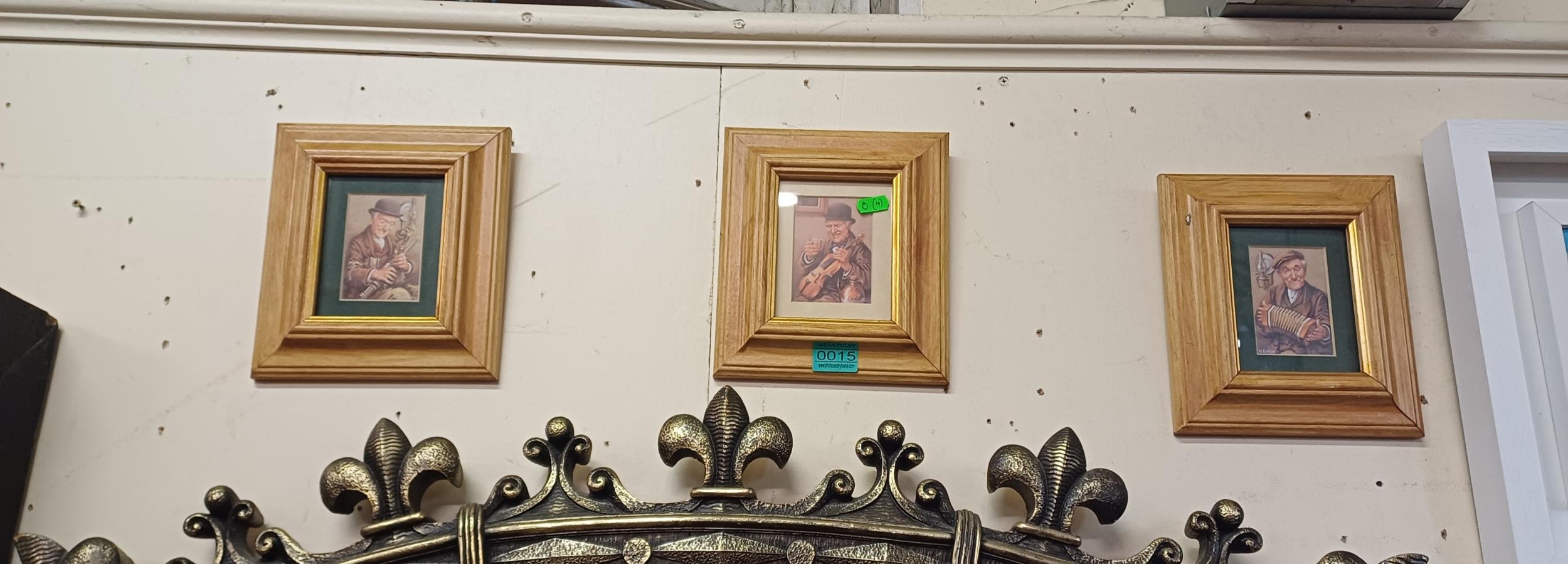 Three Roy Wallace Prints of Traditional Irish Musicians (19cm x 23cm overall)