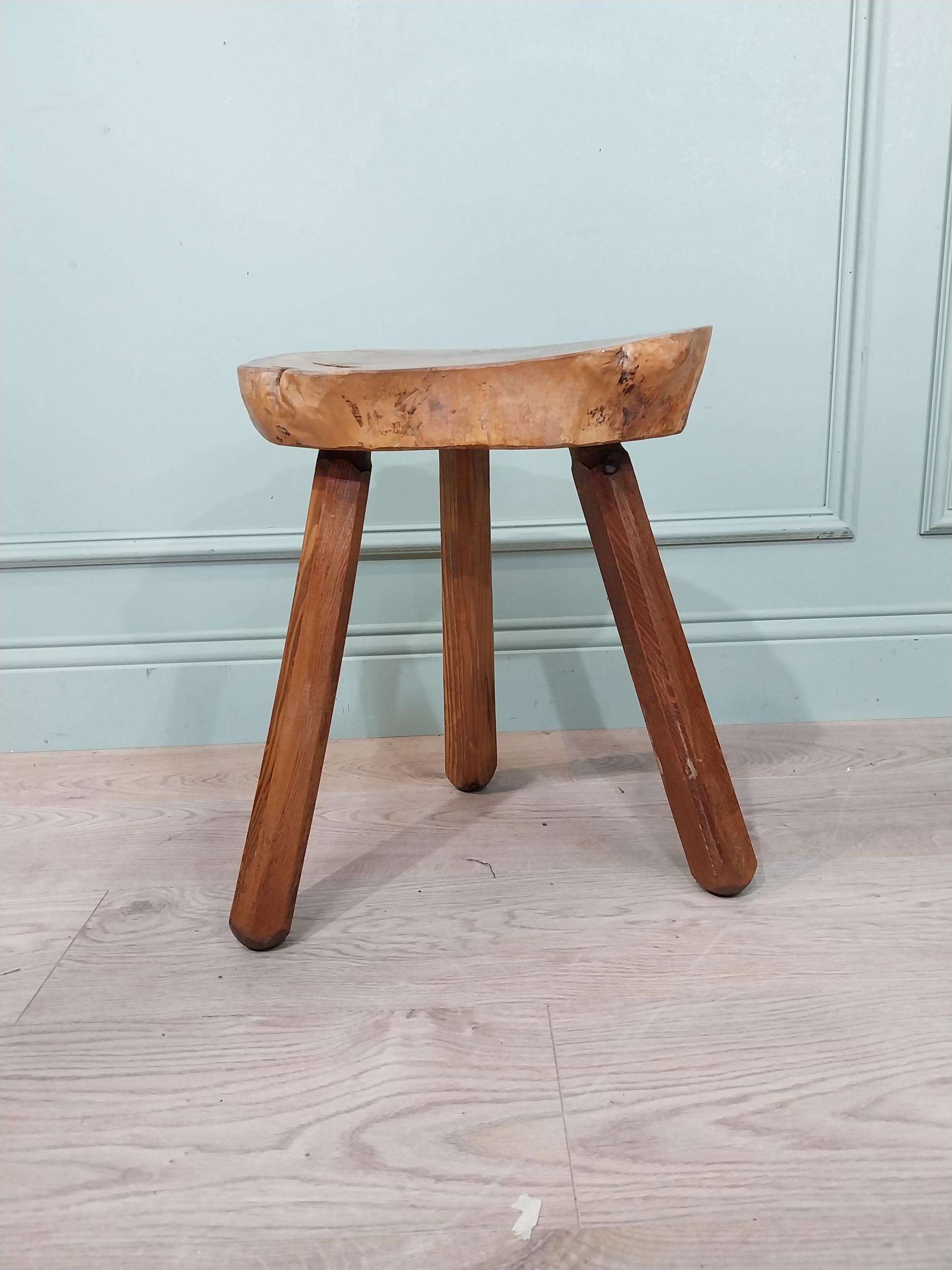 Early 20th C. pine vernacular milking stool. {45 cm H x 35 cm W x 31 cm D}.