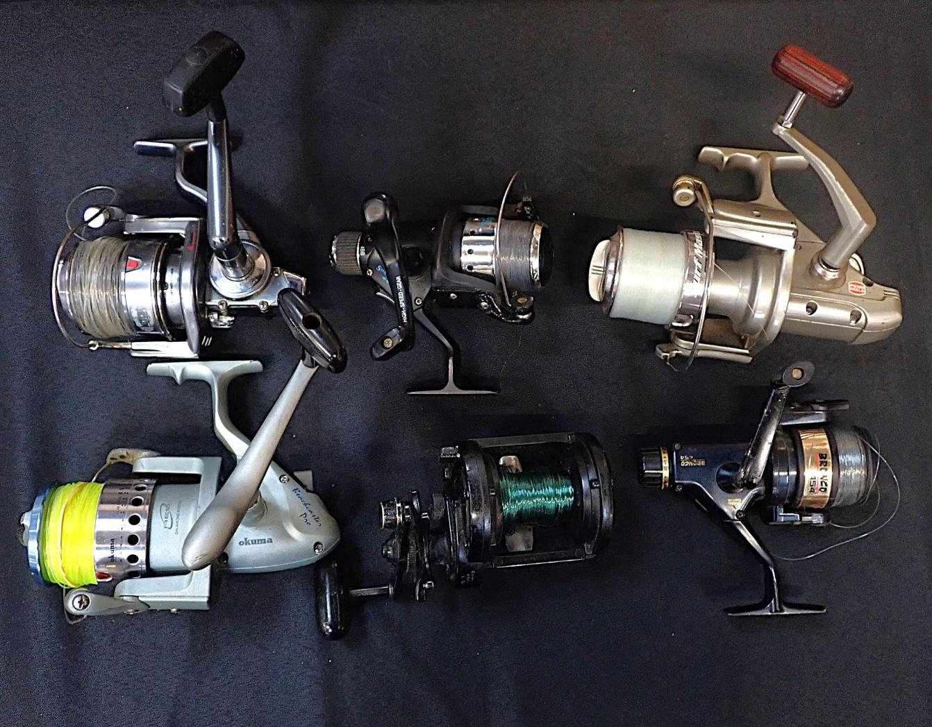 OKUMA: A BACKCASTER PRO SPINNING REELtogether with various other spinning reels, and a Speedmaster multiplier. (6)