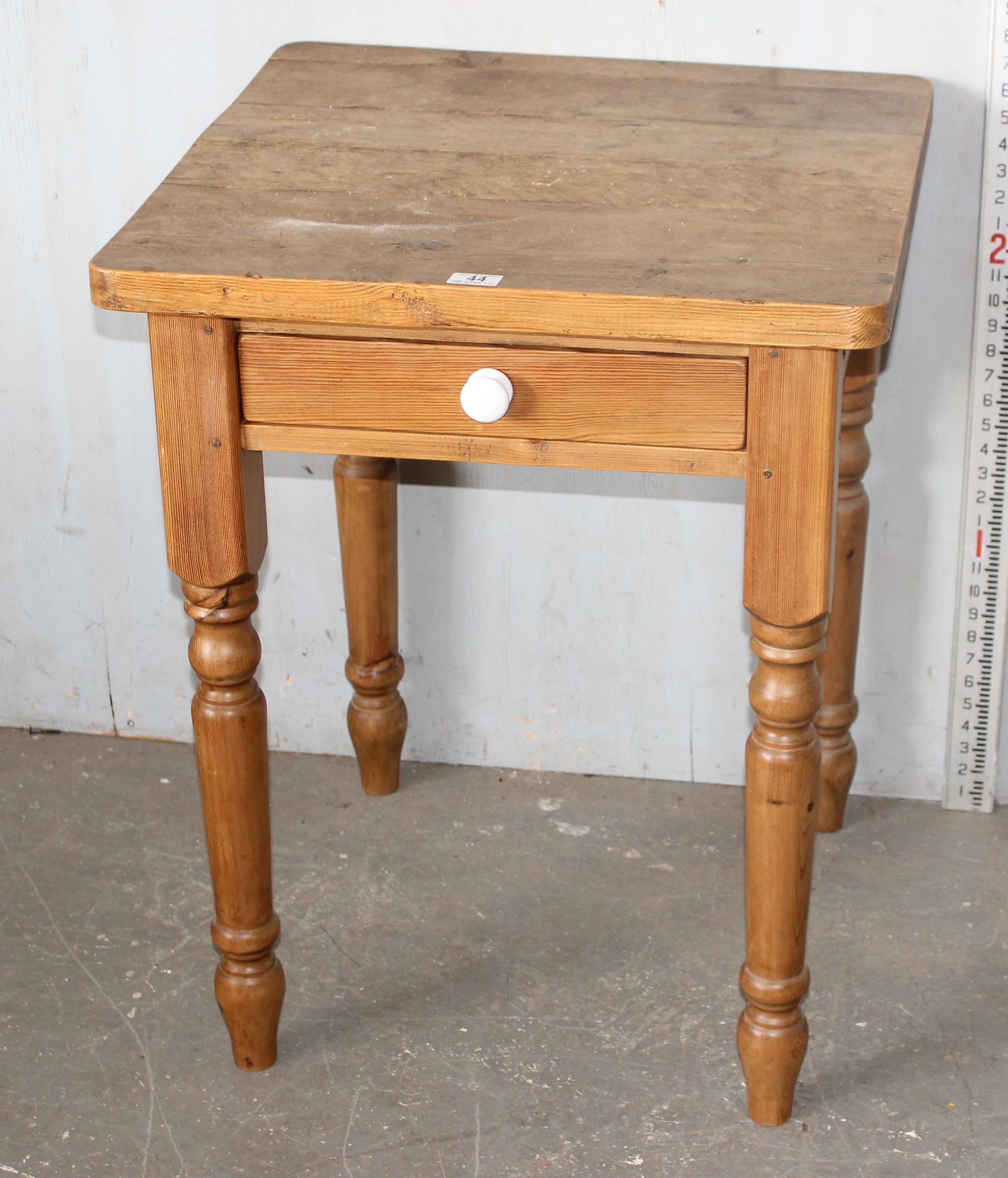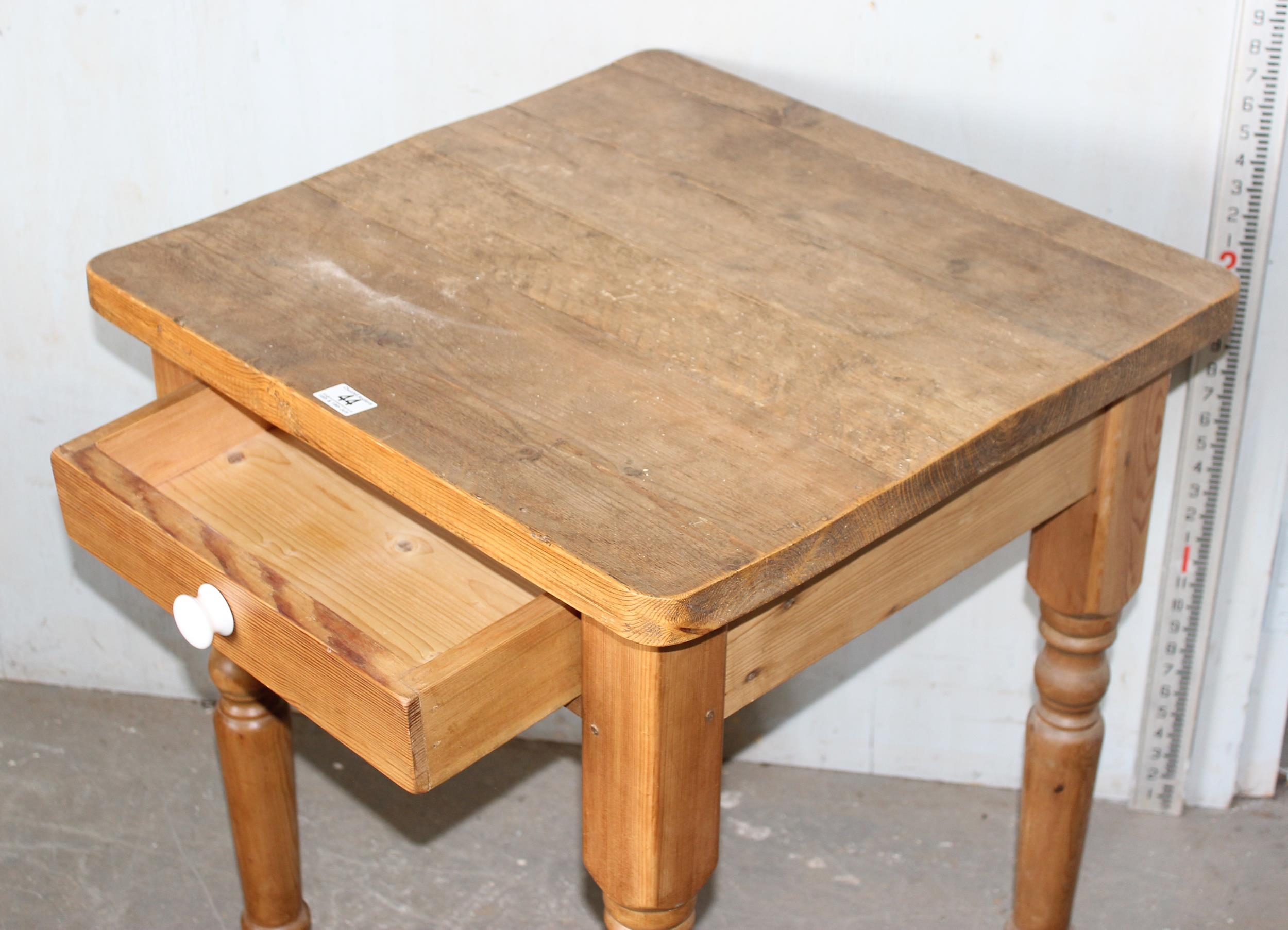 A small square pine kitchen table with drawer