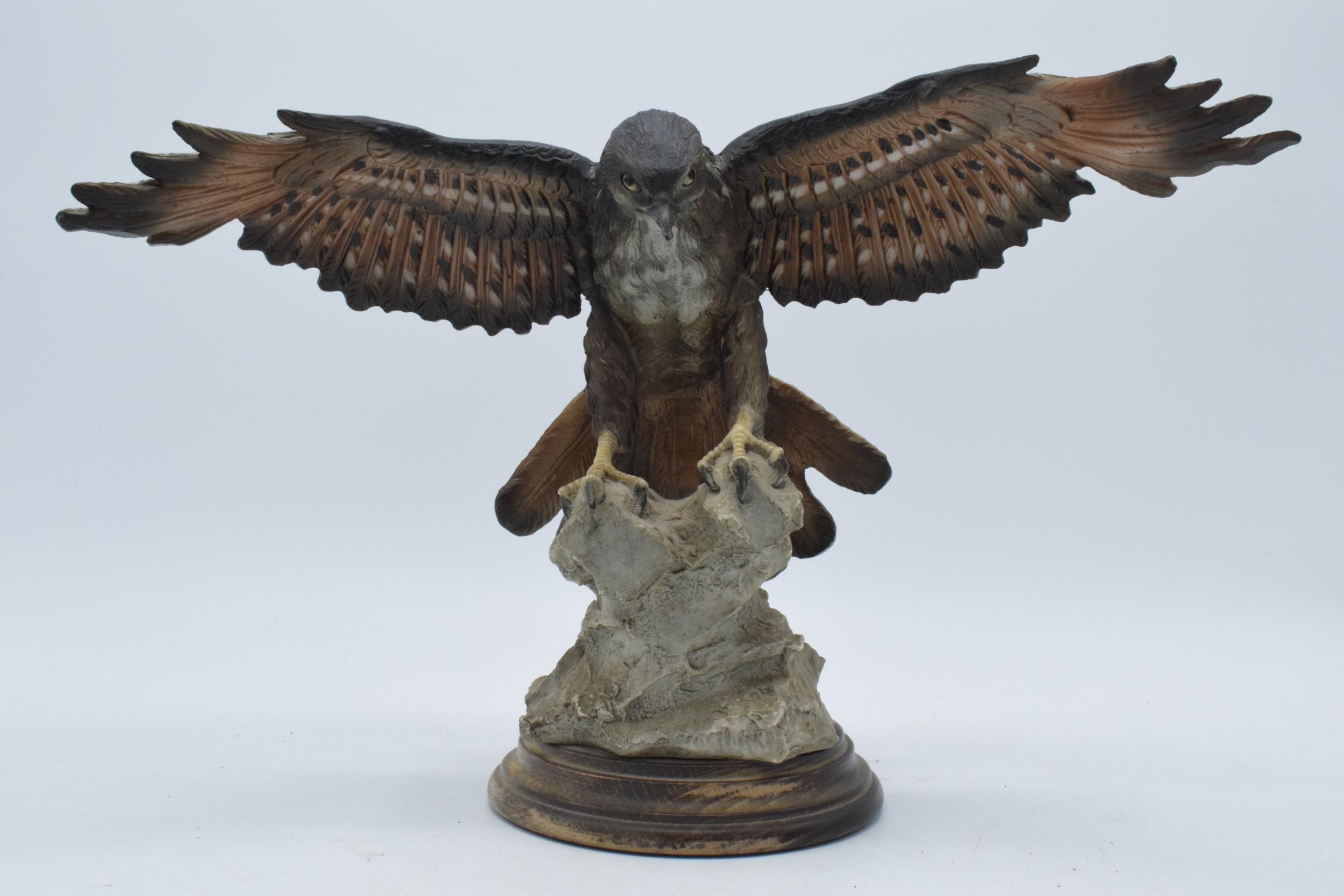 Capo Di Monte realistic model of an Eagle / Bird of Prey landing on a rocky surface, 34cm wide.