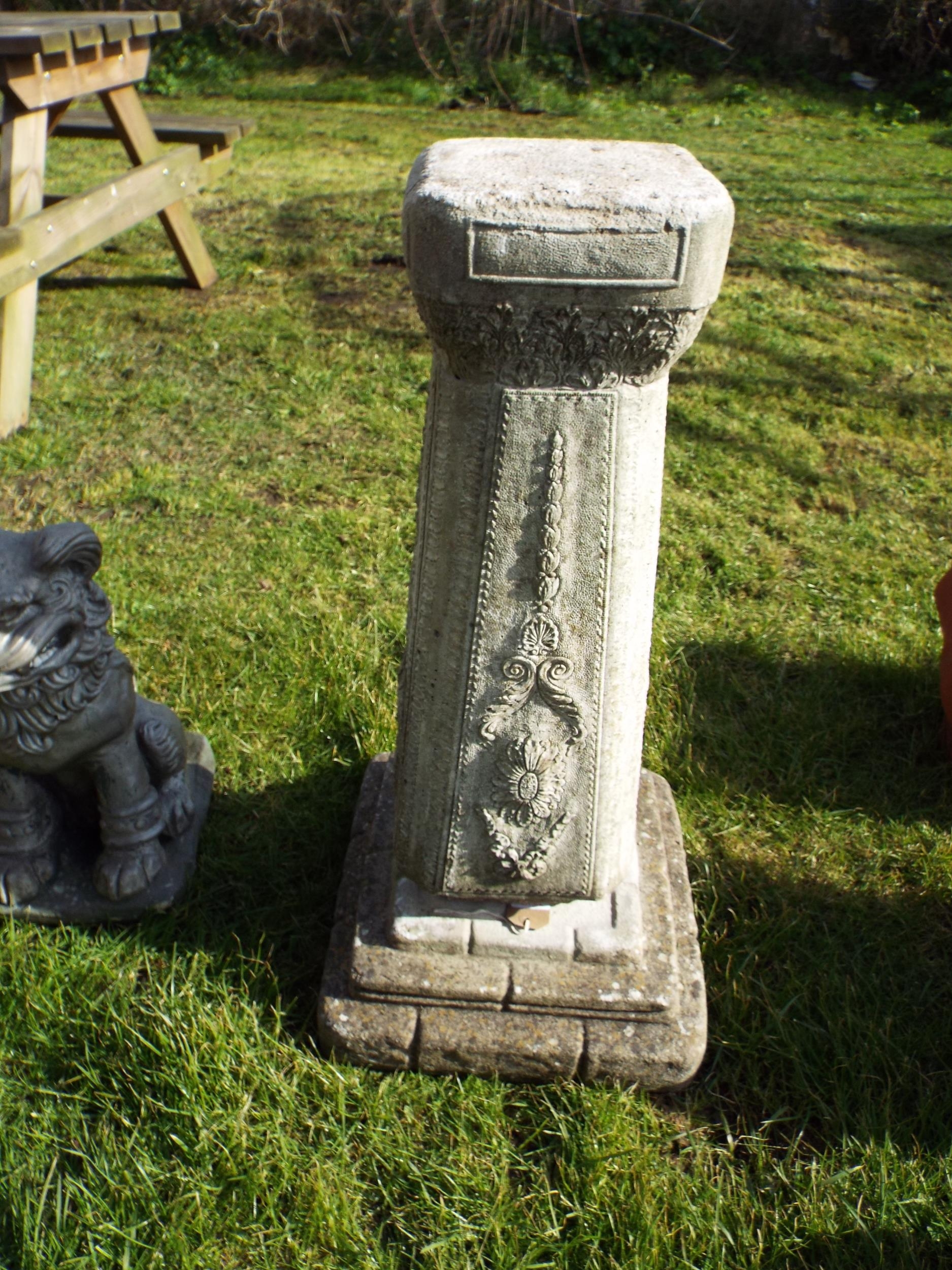 A concrete garden plant pot stand