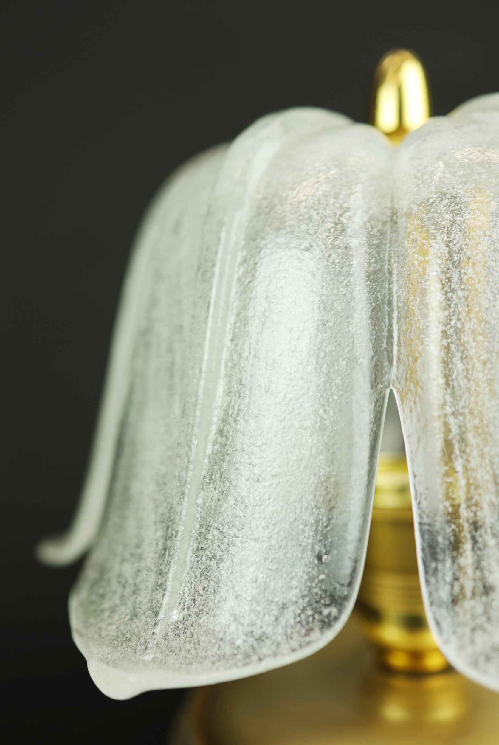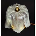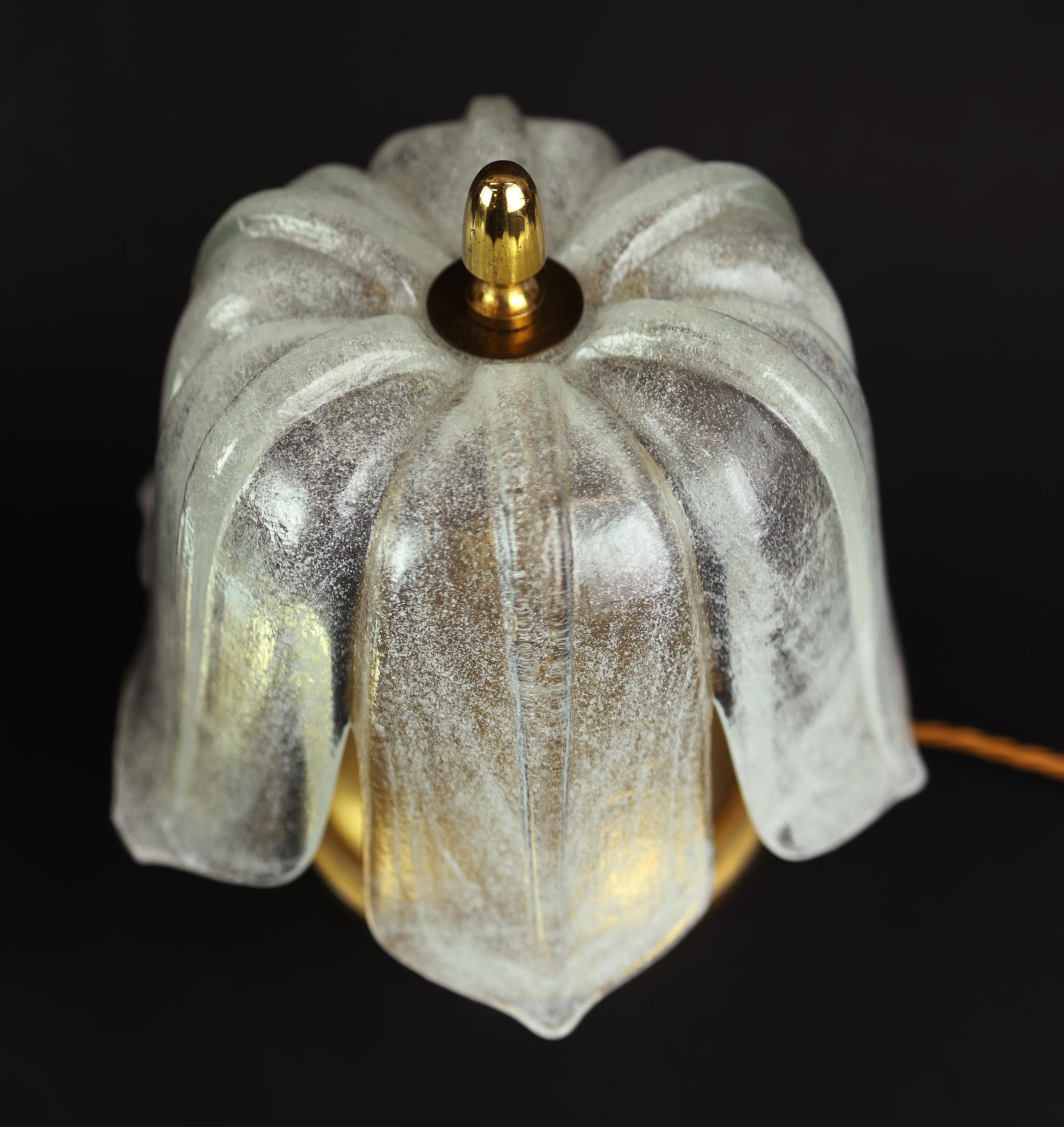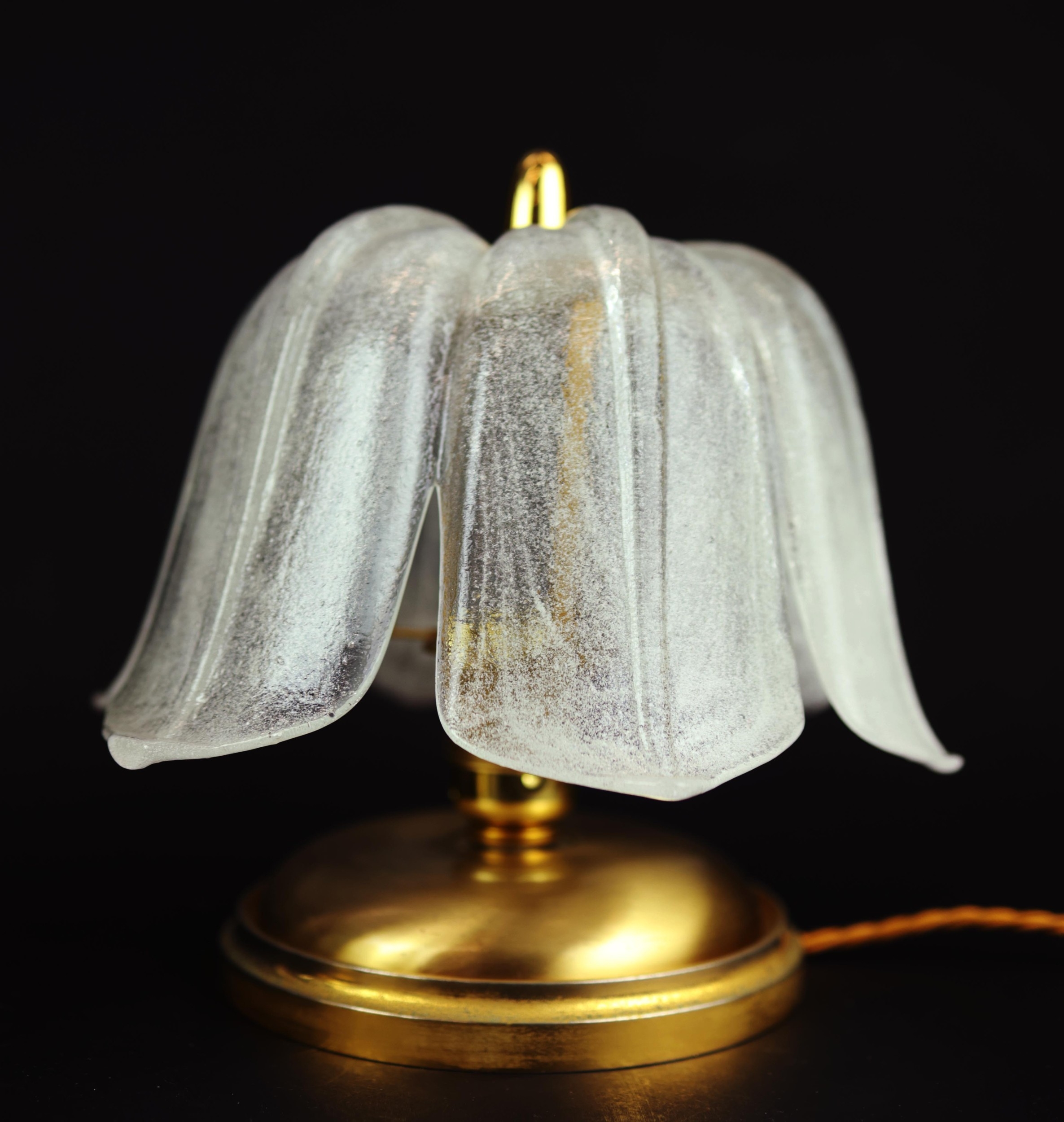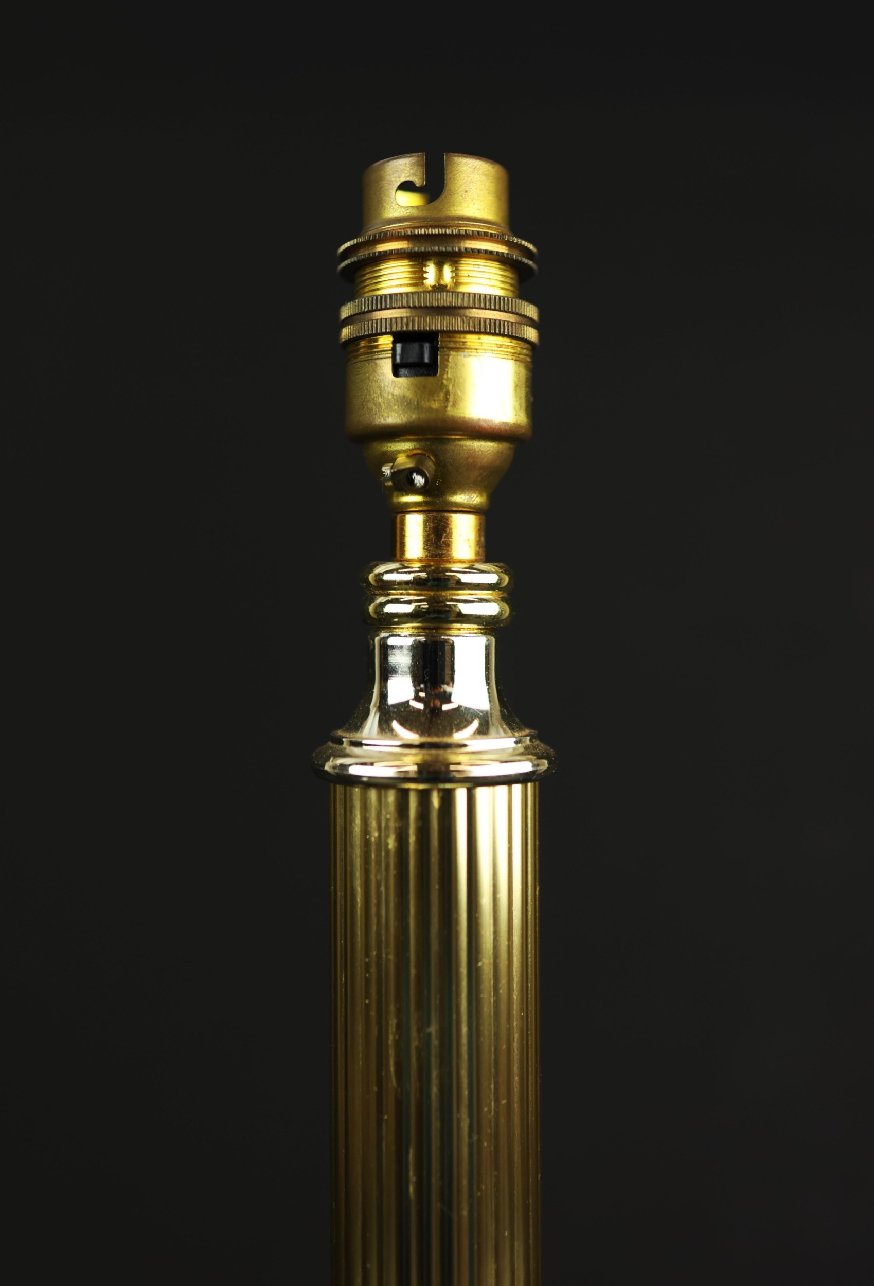 SET OF THREE MID CENTURY CONTINENTAL GLASS AND GILT METAL TABLE LAMPS. Largest 34cm H x 20cm W.