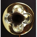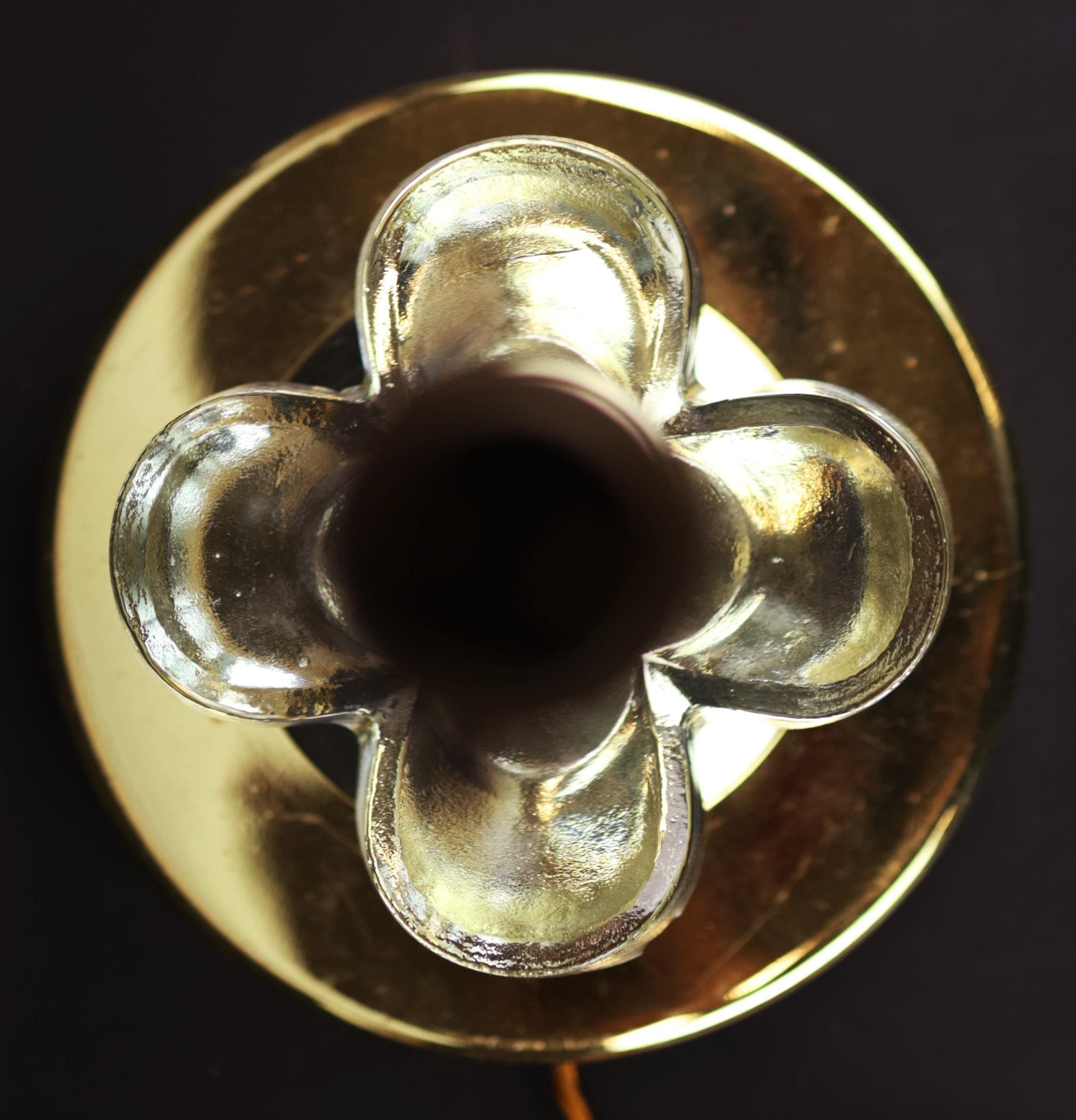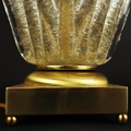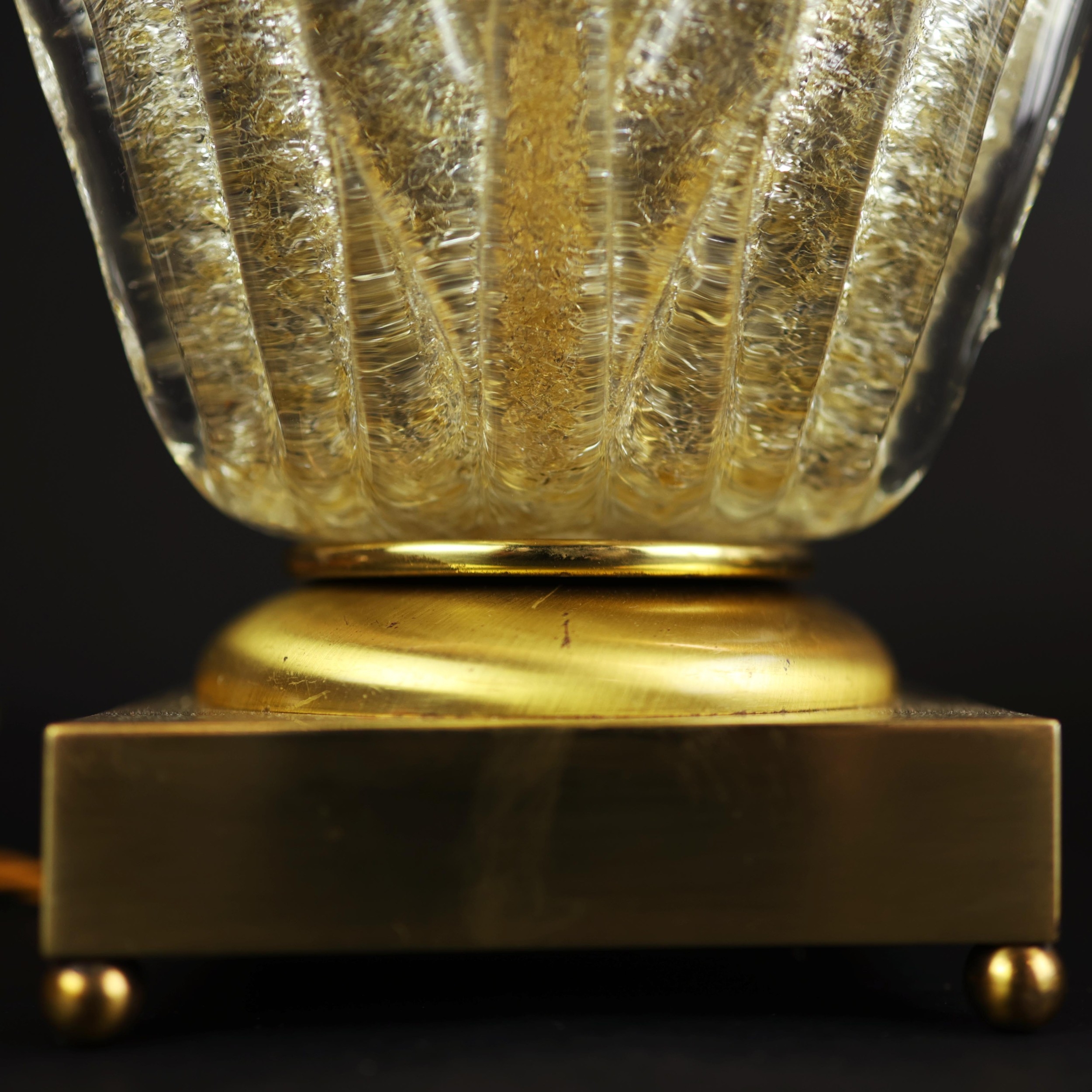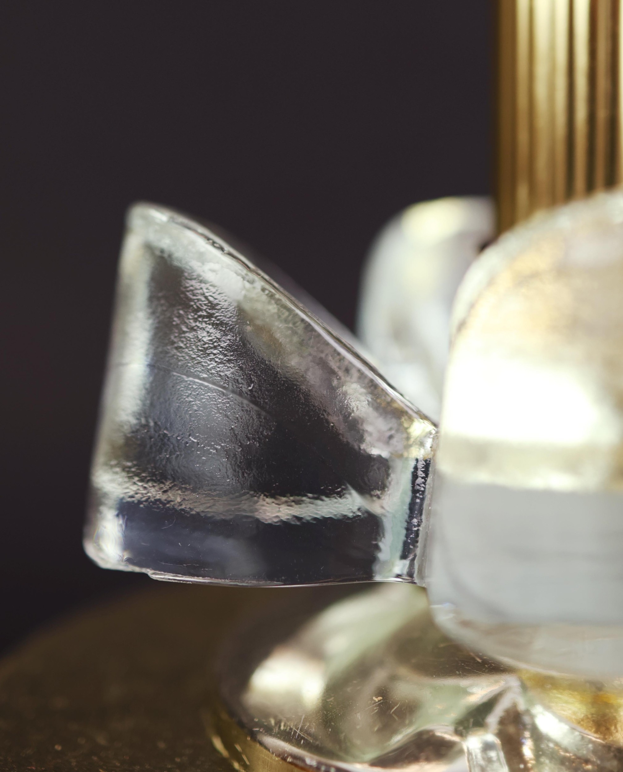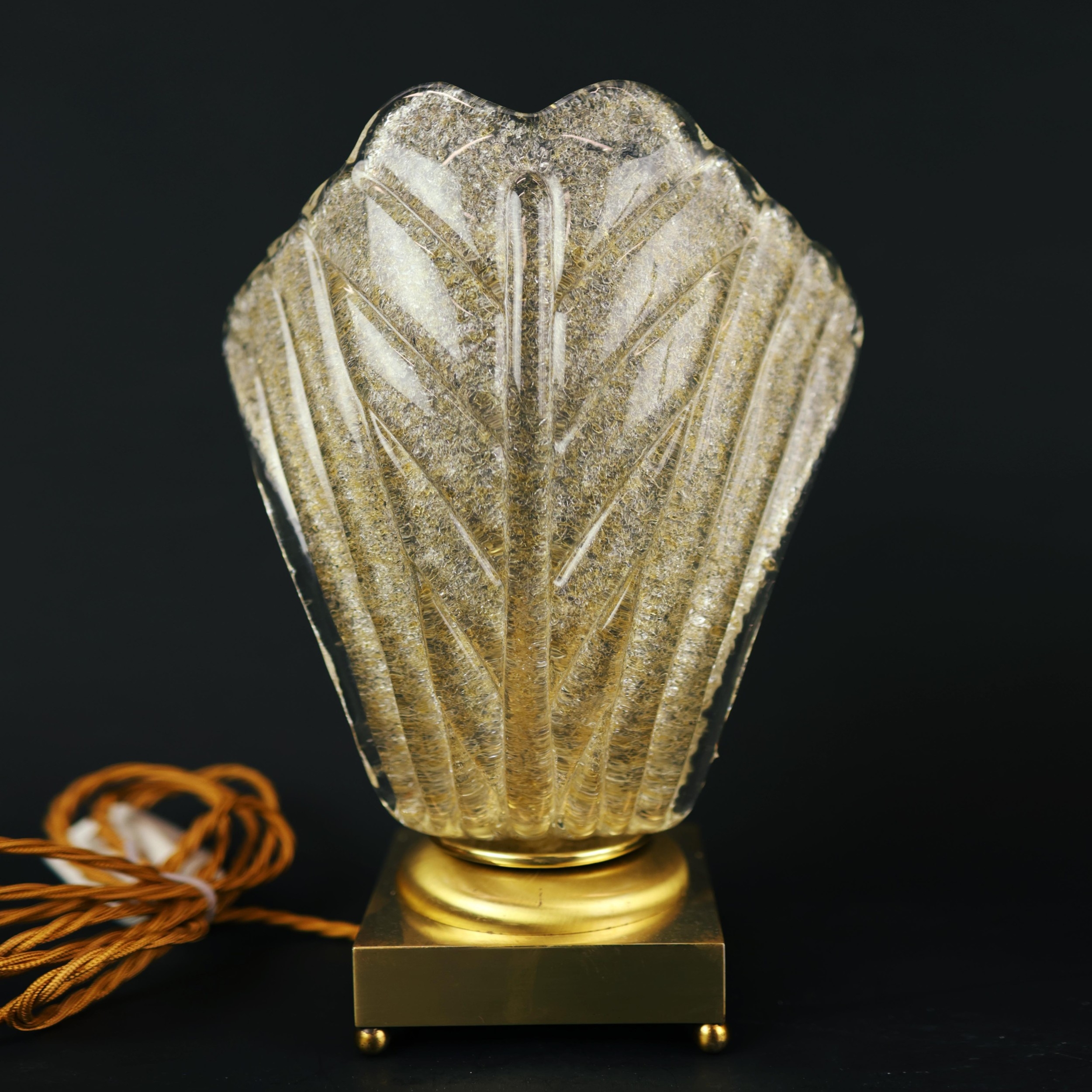 SET OF THREE MID CENTURY CONTINENTAL GLASS AND GILT METAL TABLE LAMPS. Largest 34cm H x 20cm W.