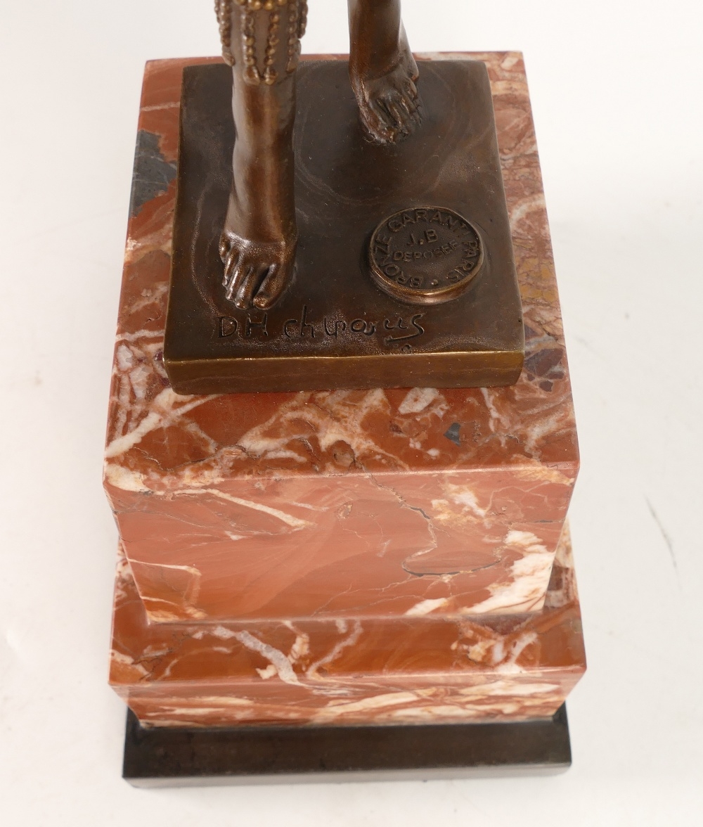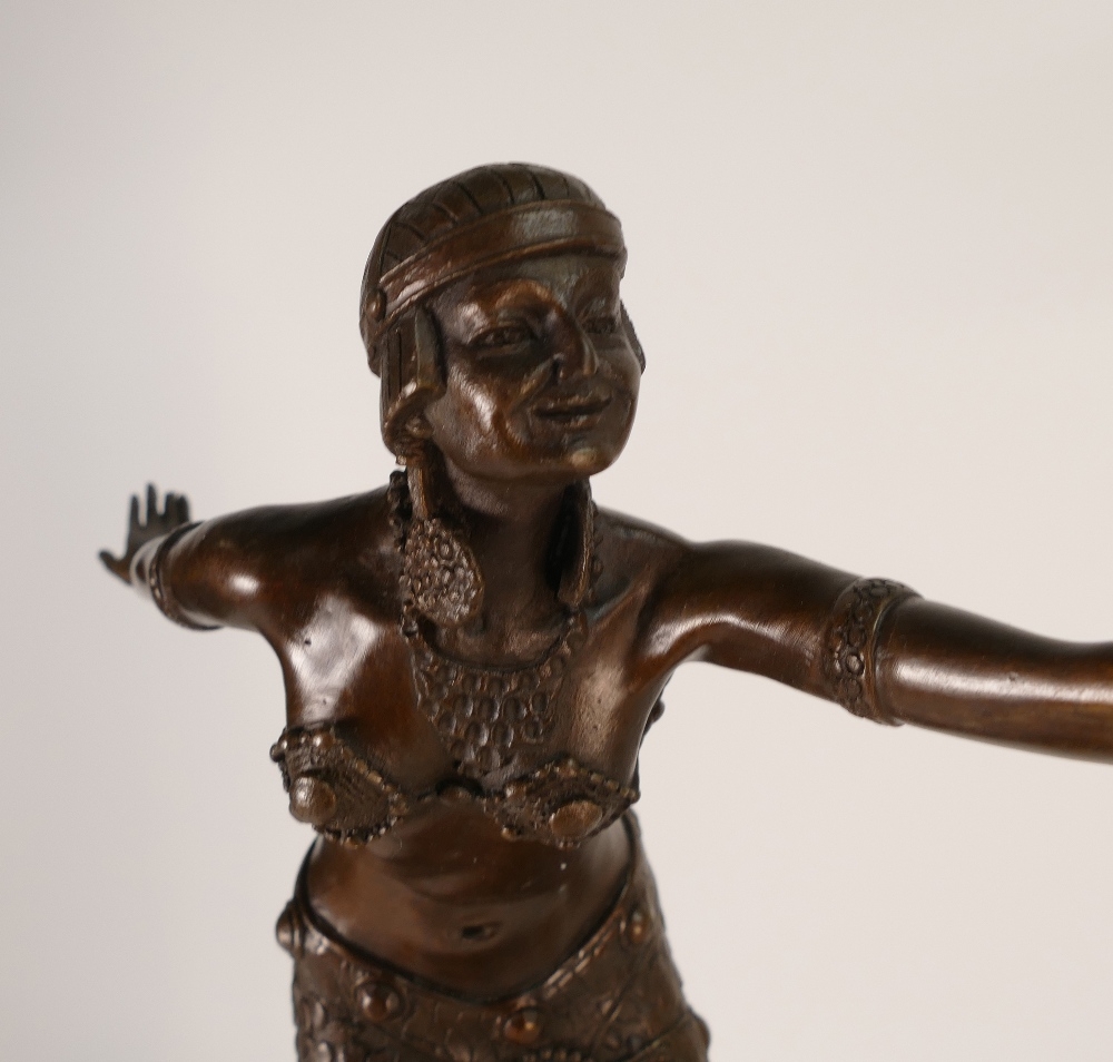 A good bronze Art Deco reproduction figure of a Egyptian dancer "Antinea" after the original by Demetre Chiparus, mounted on a marble base, h.50cm.