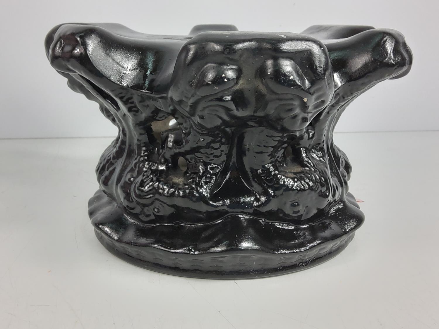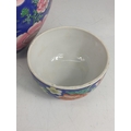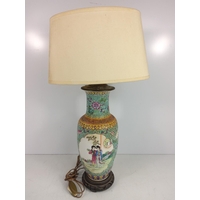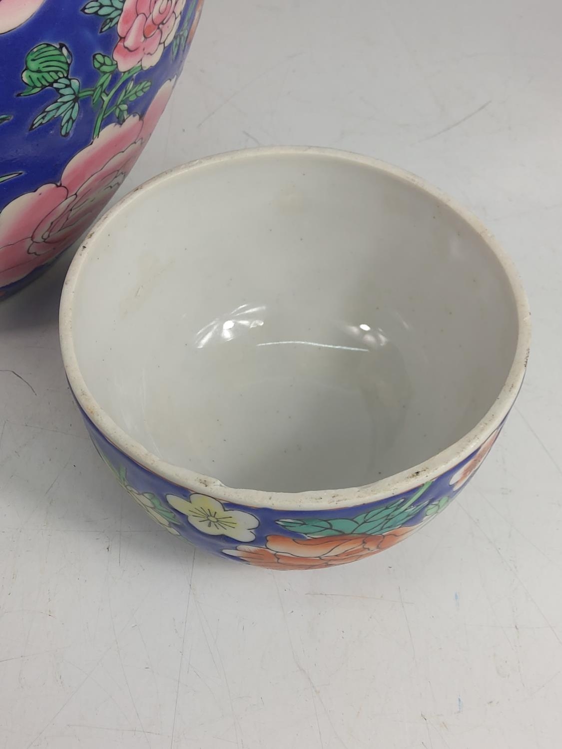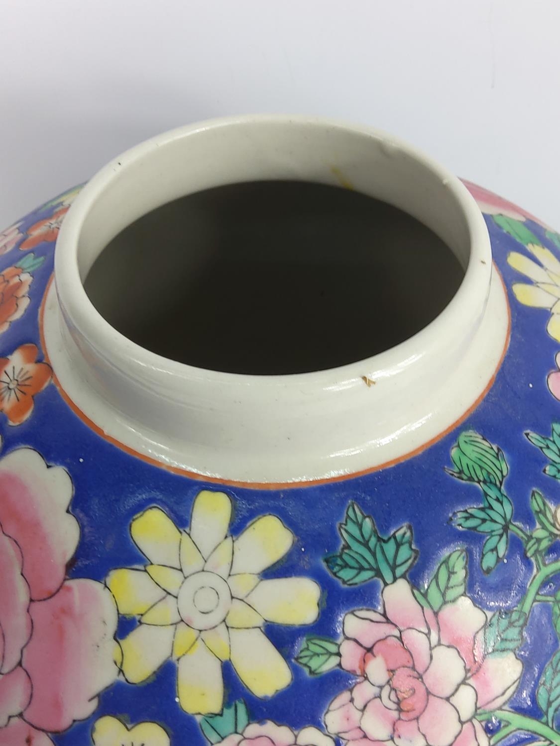 Oriental ginger jar with wooden base, approx 46cms on base, 32cms off base