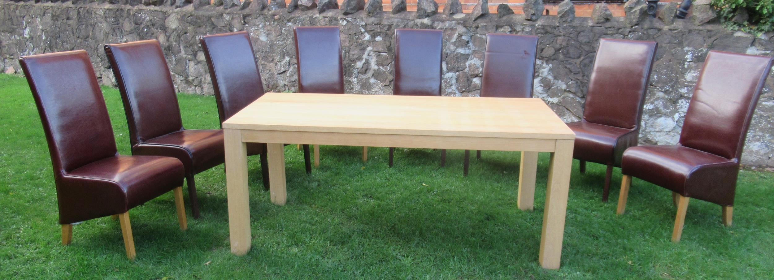 A modern dining table and harlequin set of 8 dining chairs