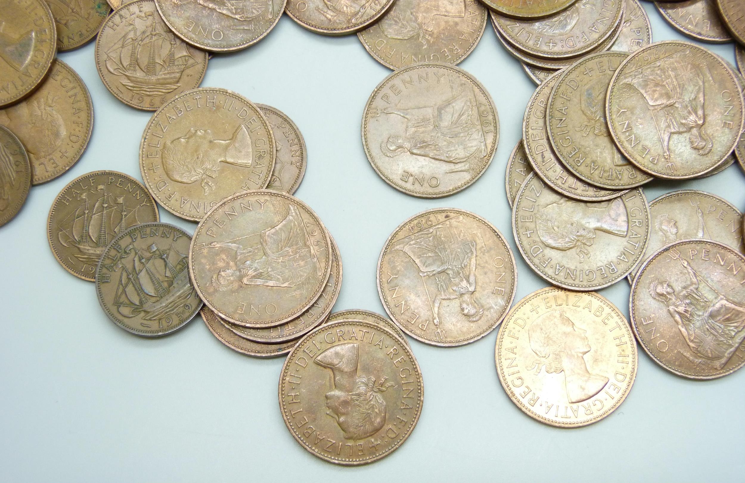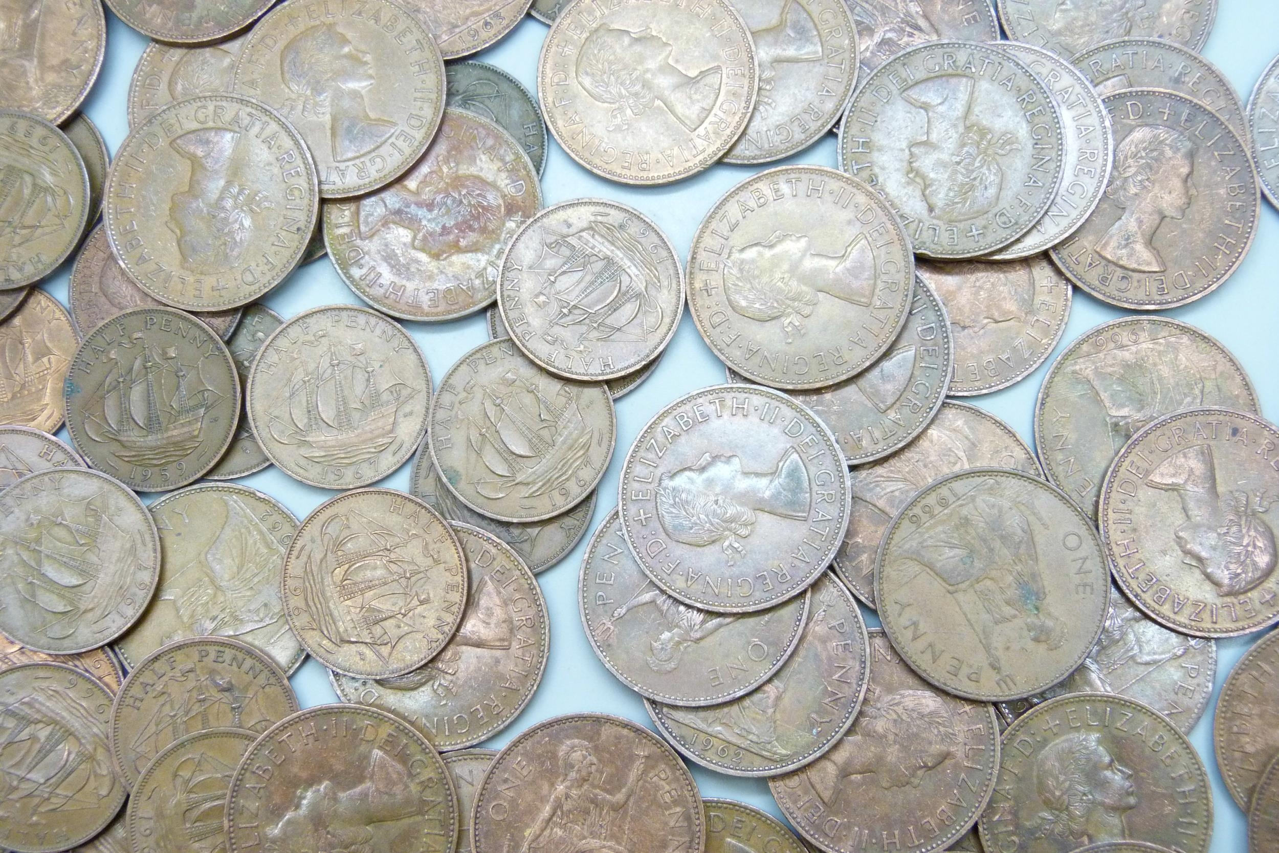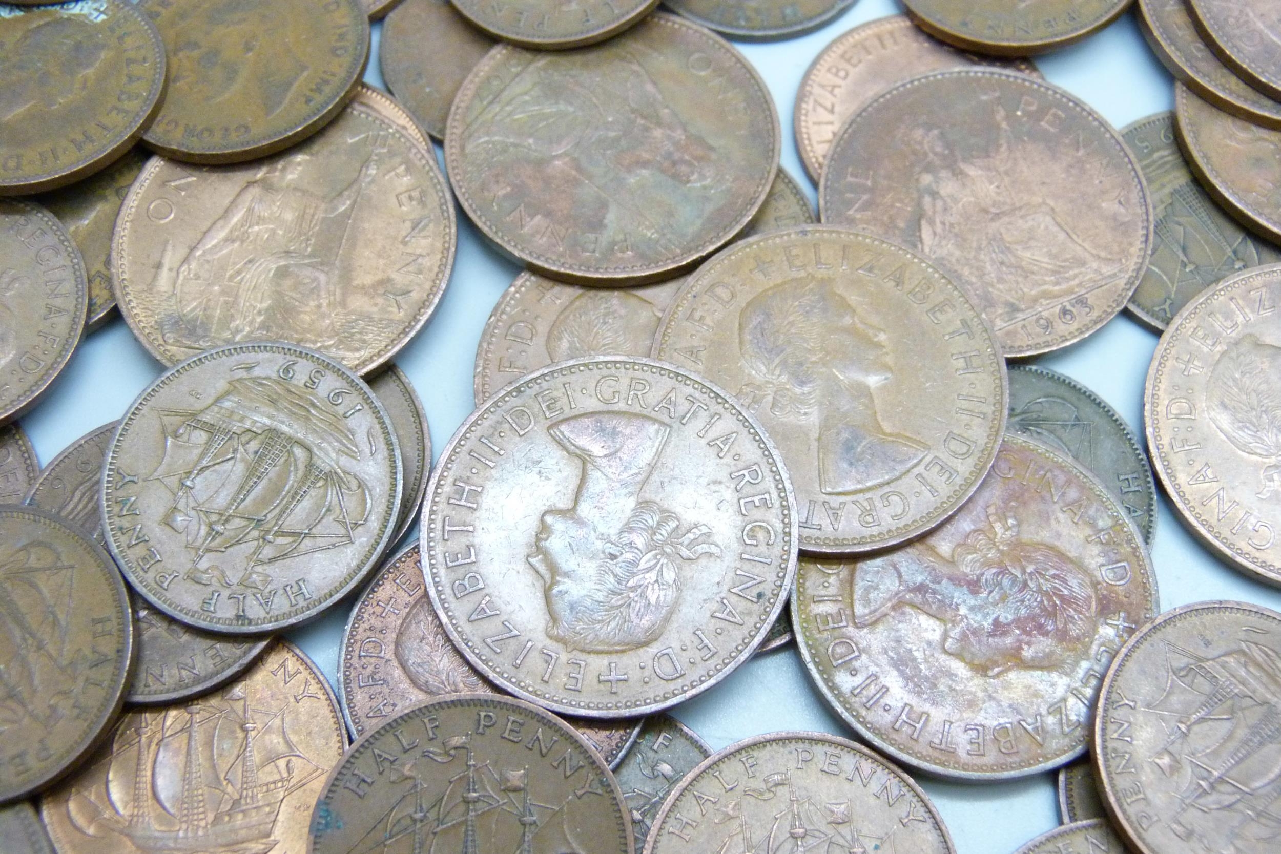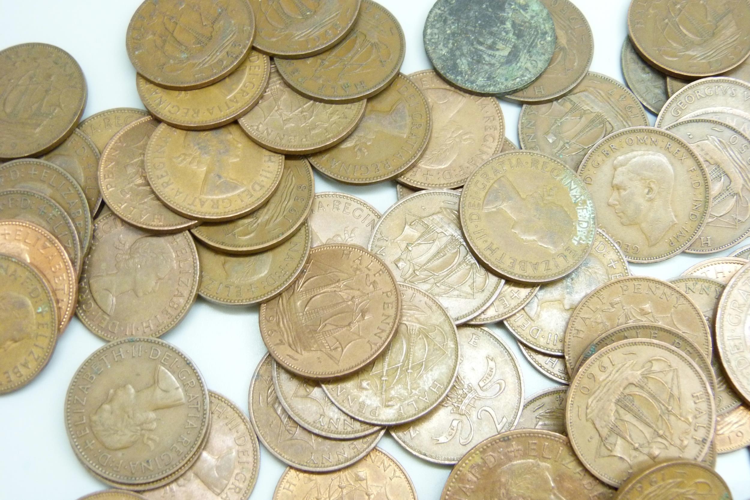 Approximately 60 Elizabeth II half pennies, together with approximately 50 George V half pennies