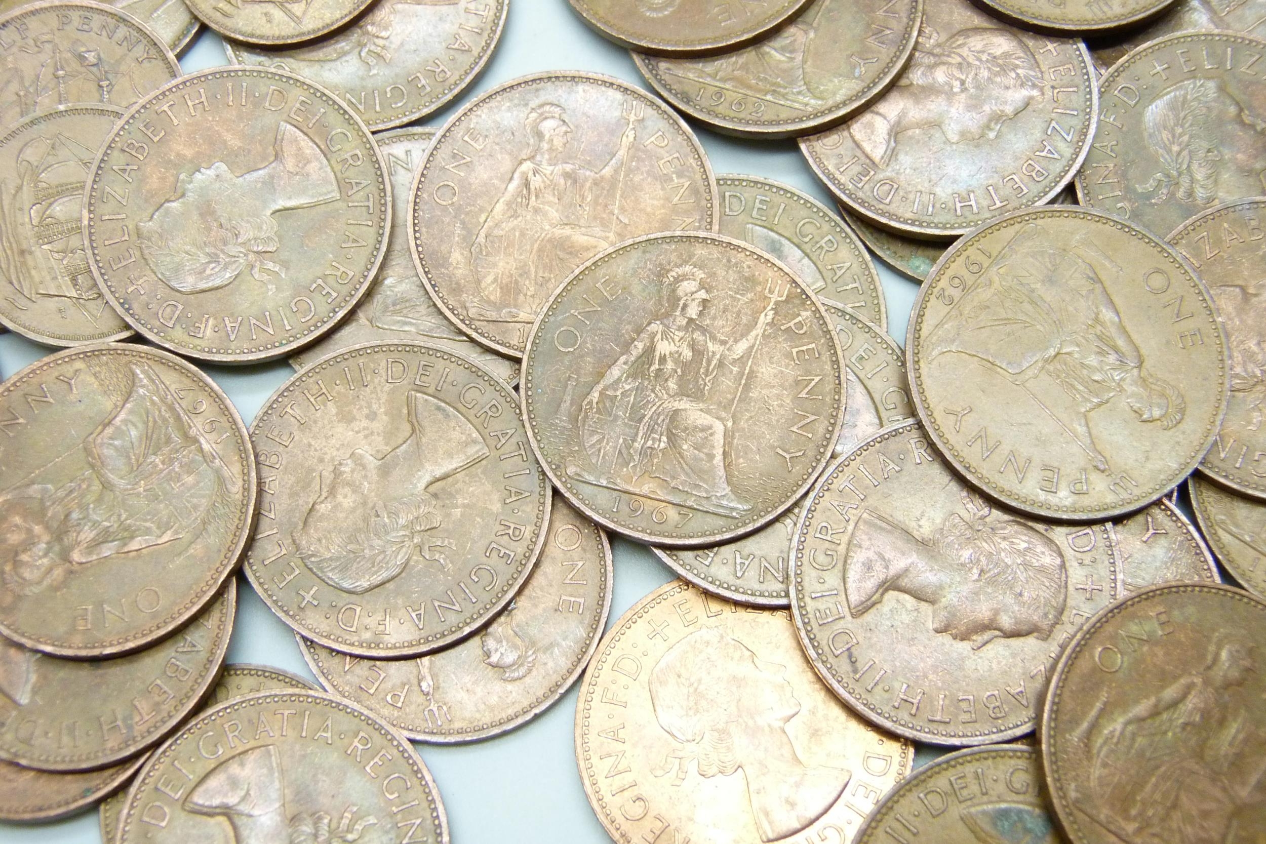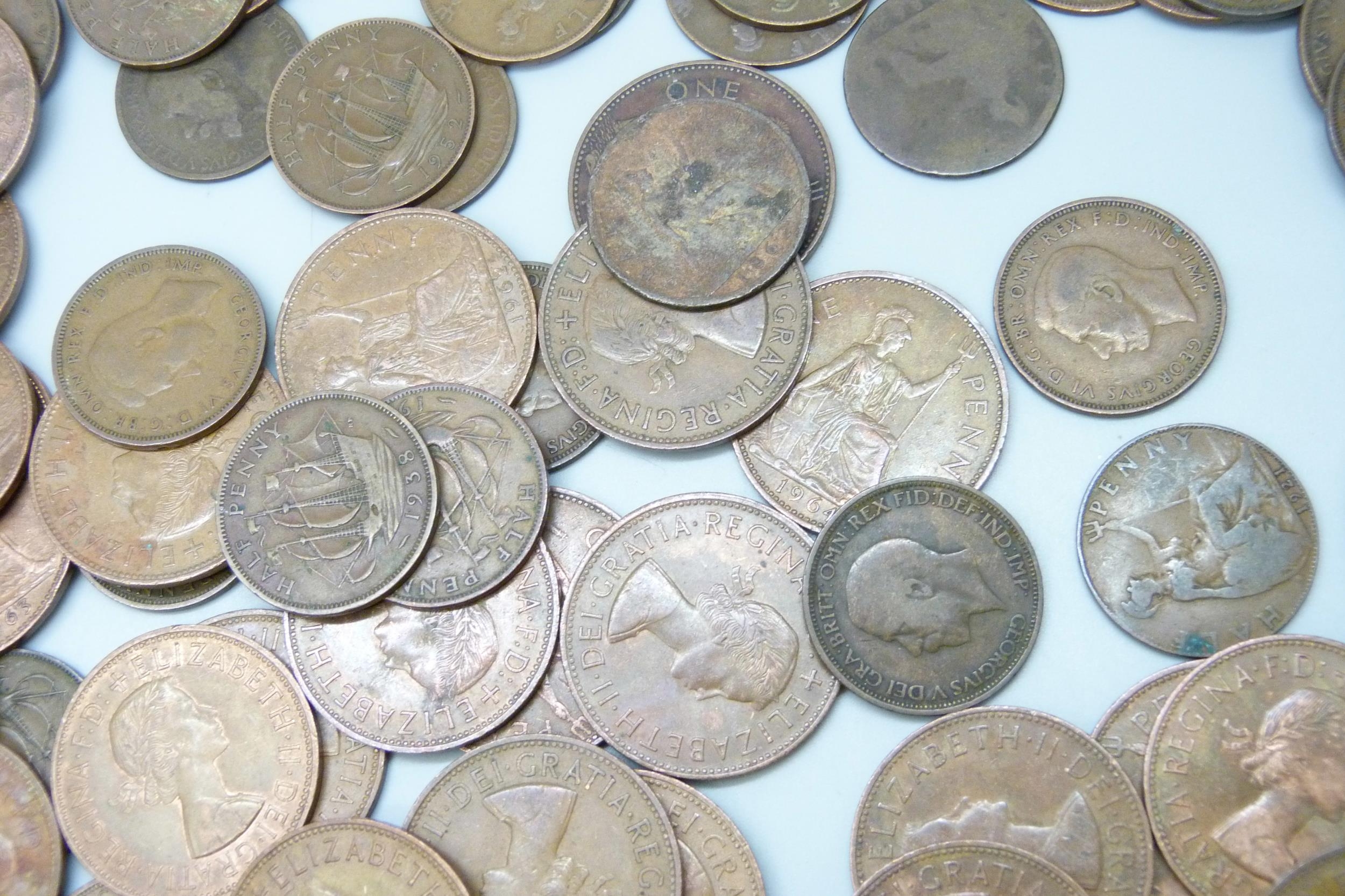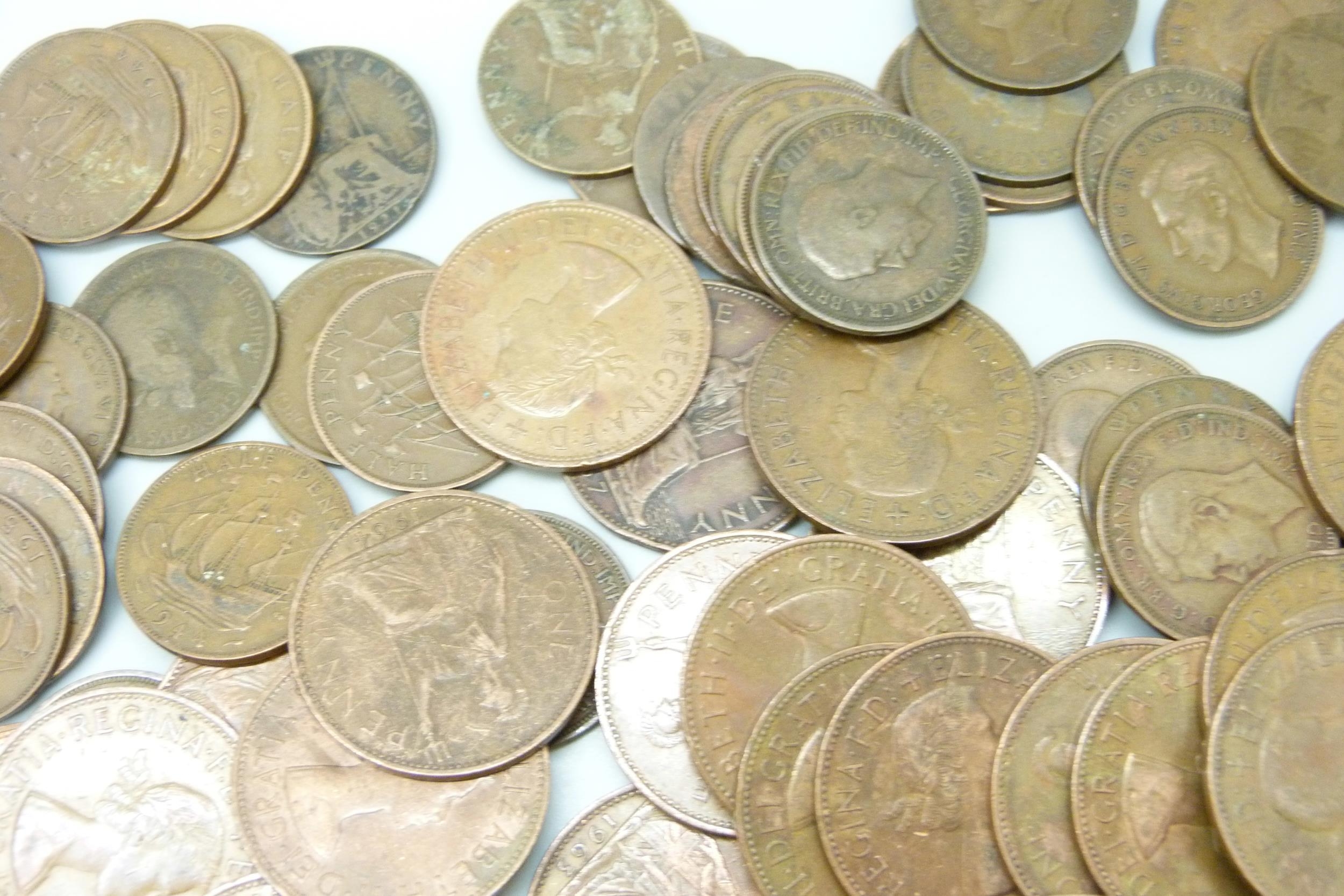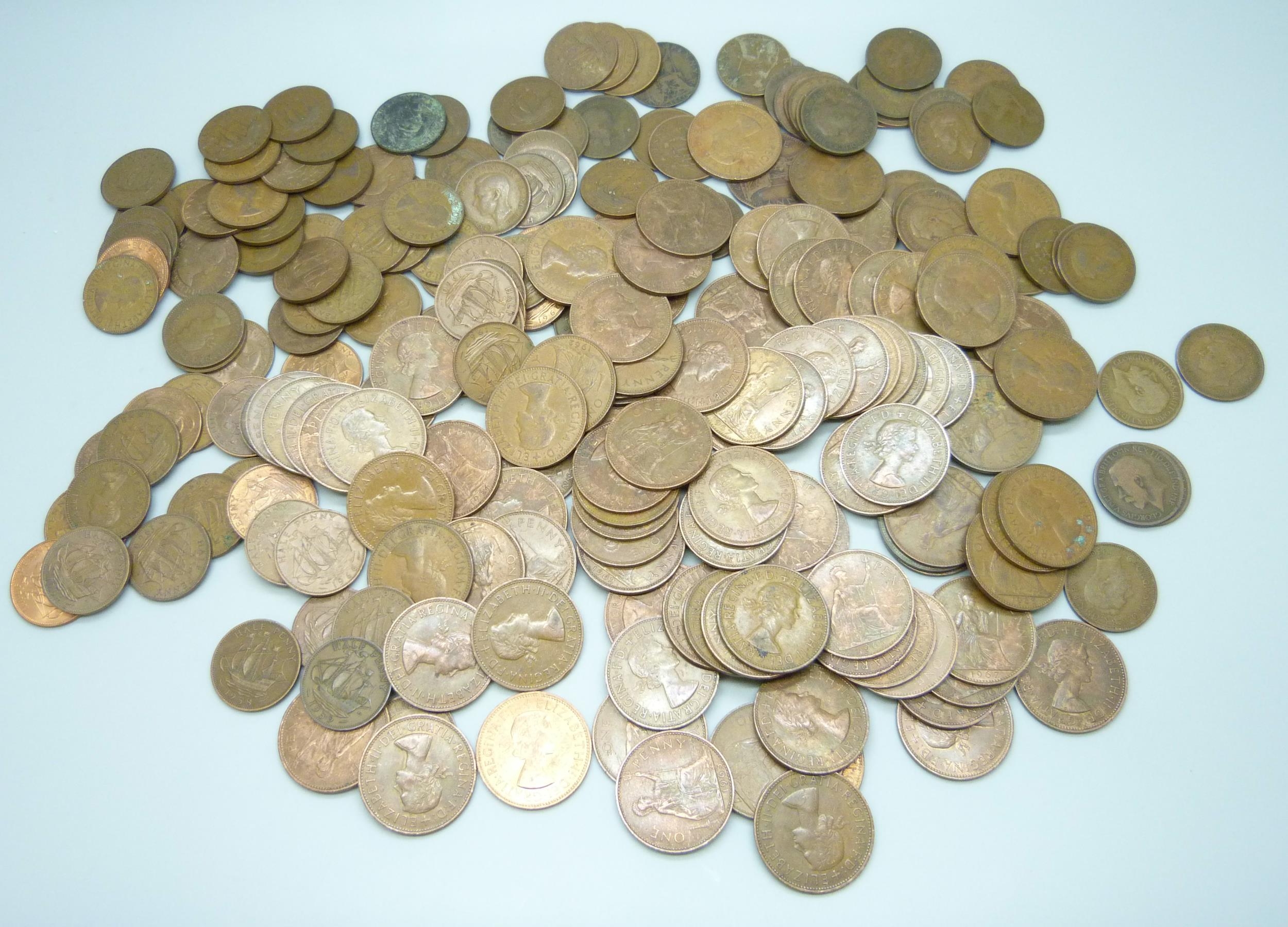 Approximately 60 Elizabeth II half pennies, together with approximately 50 George V half pennies