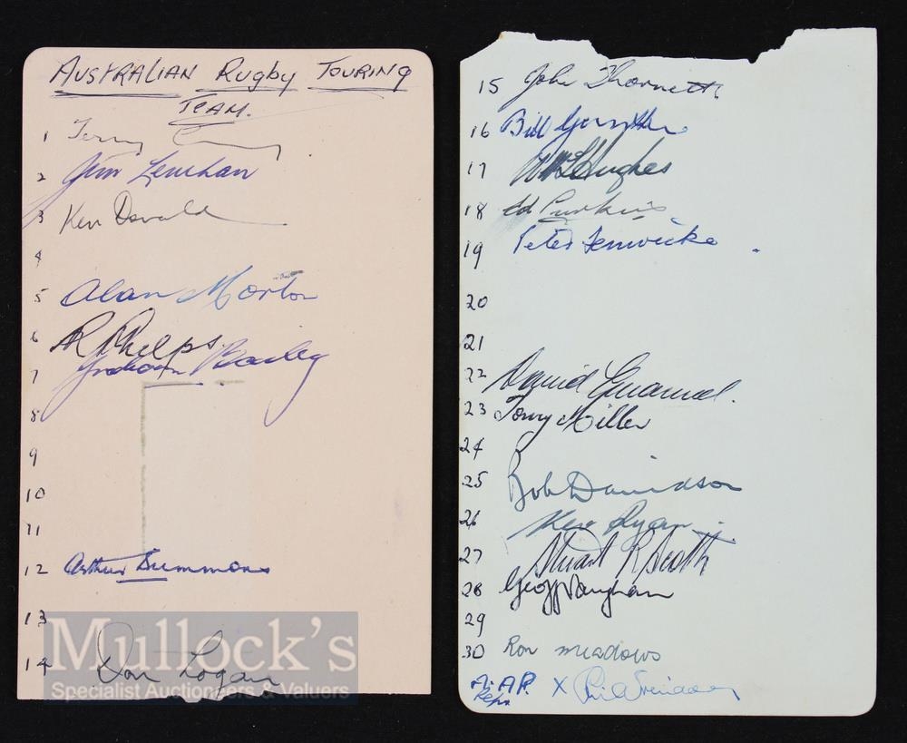 Autographs, 1957-8 Australian Wallabies Rugby Squad (21): Neatly collected on pages, 21 of the touring Wallaby party inc Lenehan, Morton, Thornett, Curley and Miller. VG